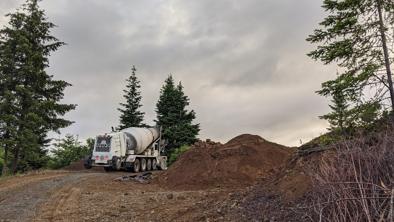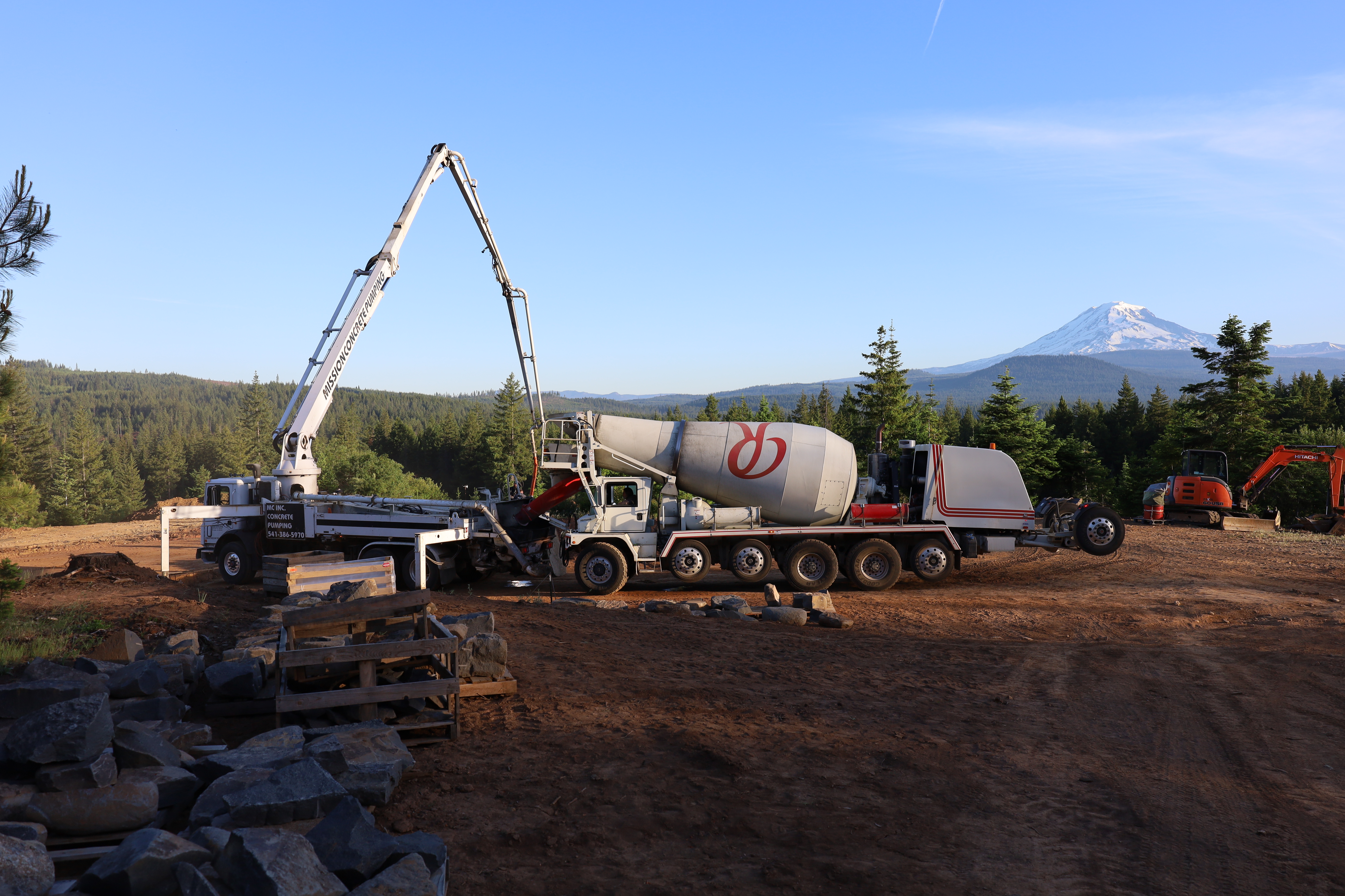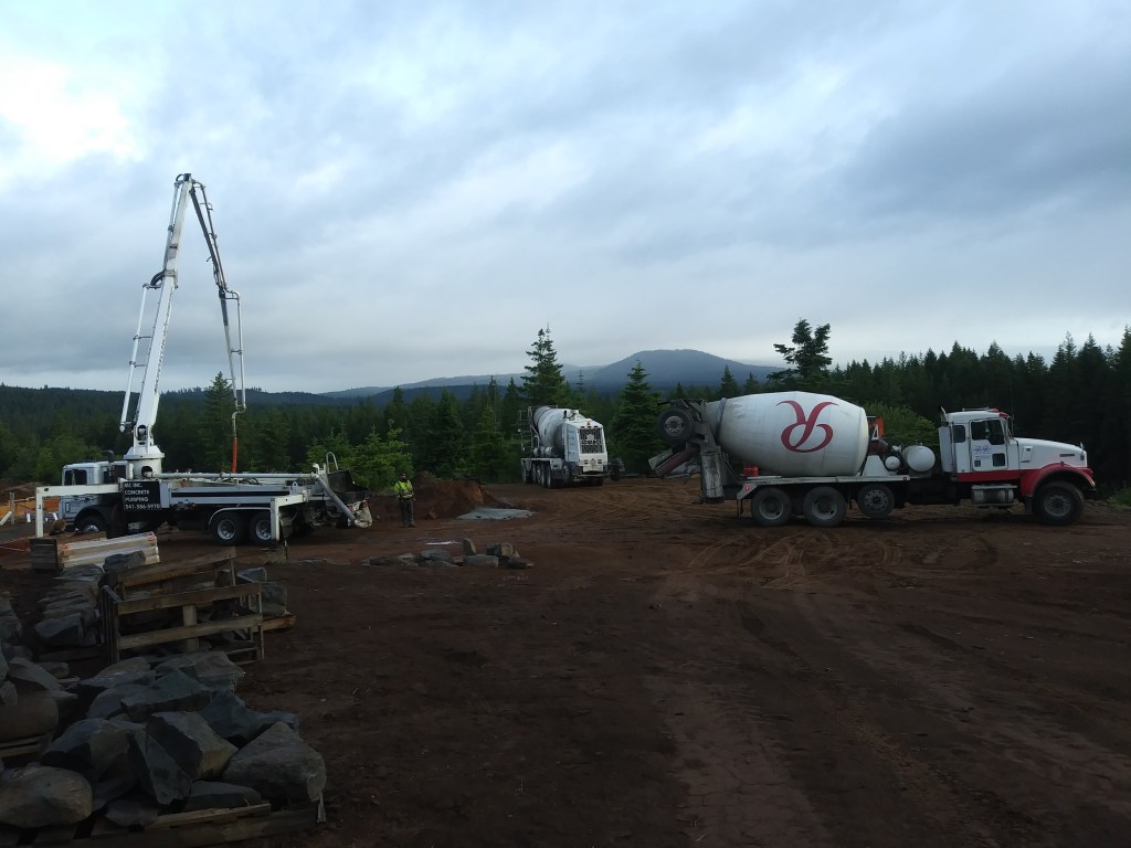 Then, at 5:00 am on June 1st, Matt and his crew returned. The first concrete truck showed up at 6:00 am, and shortly after that, Sam and I arrived for the show. There were two trucks on the job. The second truck arrived just before the first truck ran out of material. Then, truck #1 went back to the plant in Bingen for another load (about an hour round trip) and arrived just before truck #2 was out of material. It seemed like perfect choreography between the two trucks, and it all happened so fast!