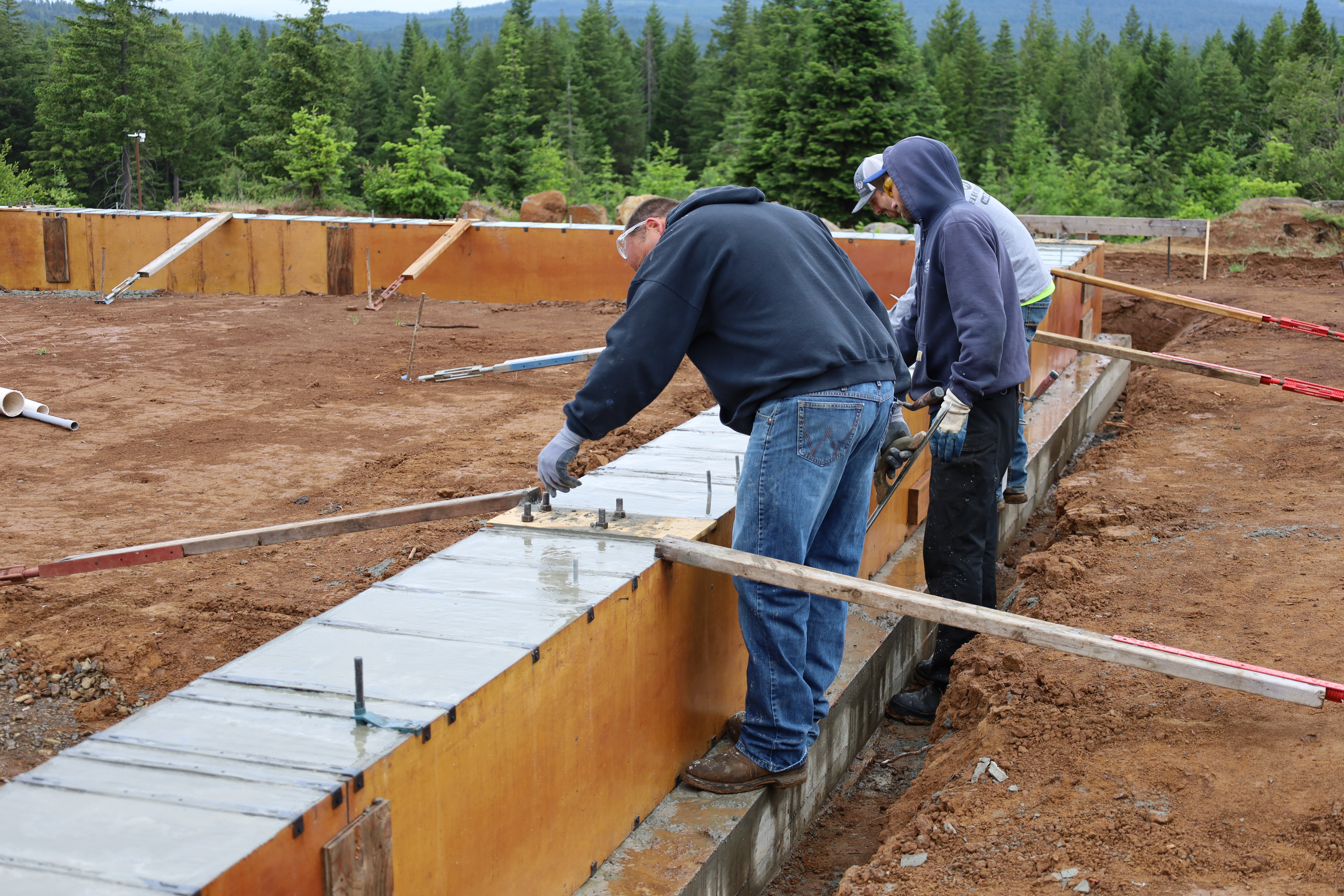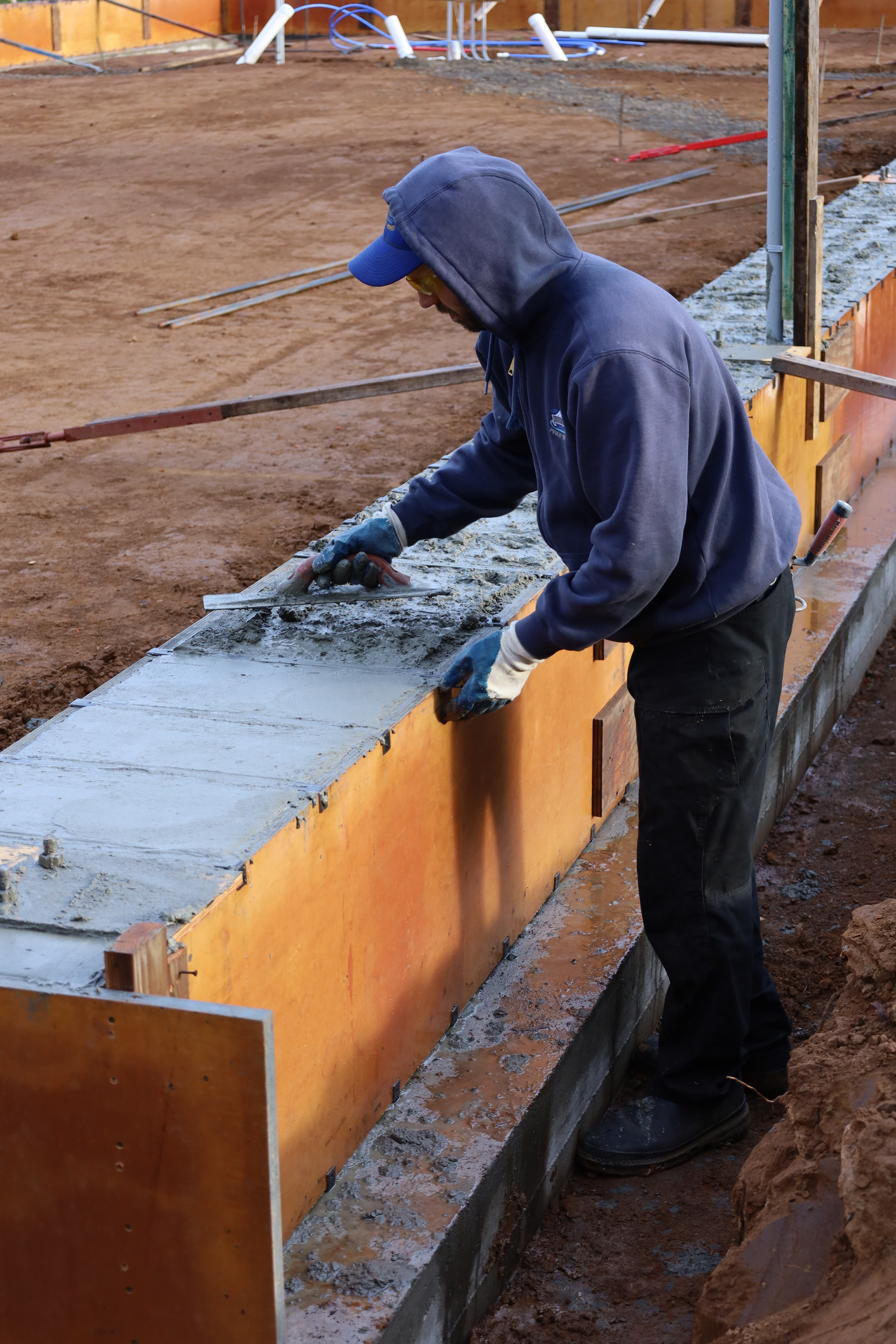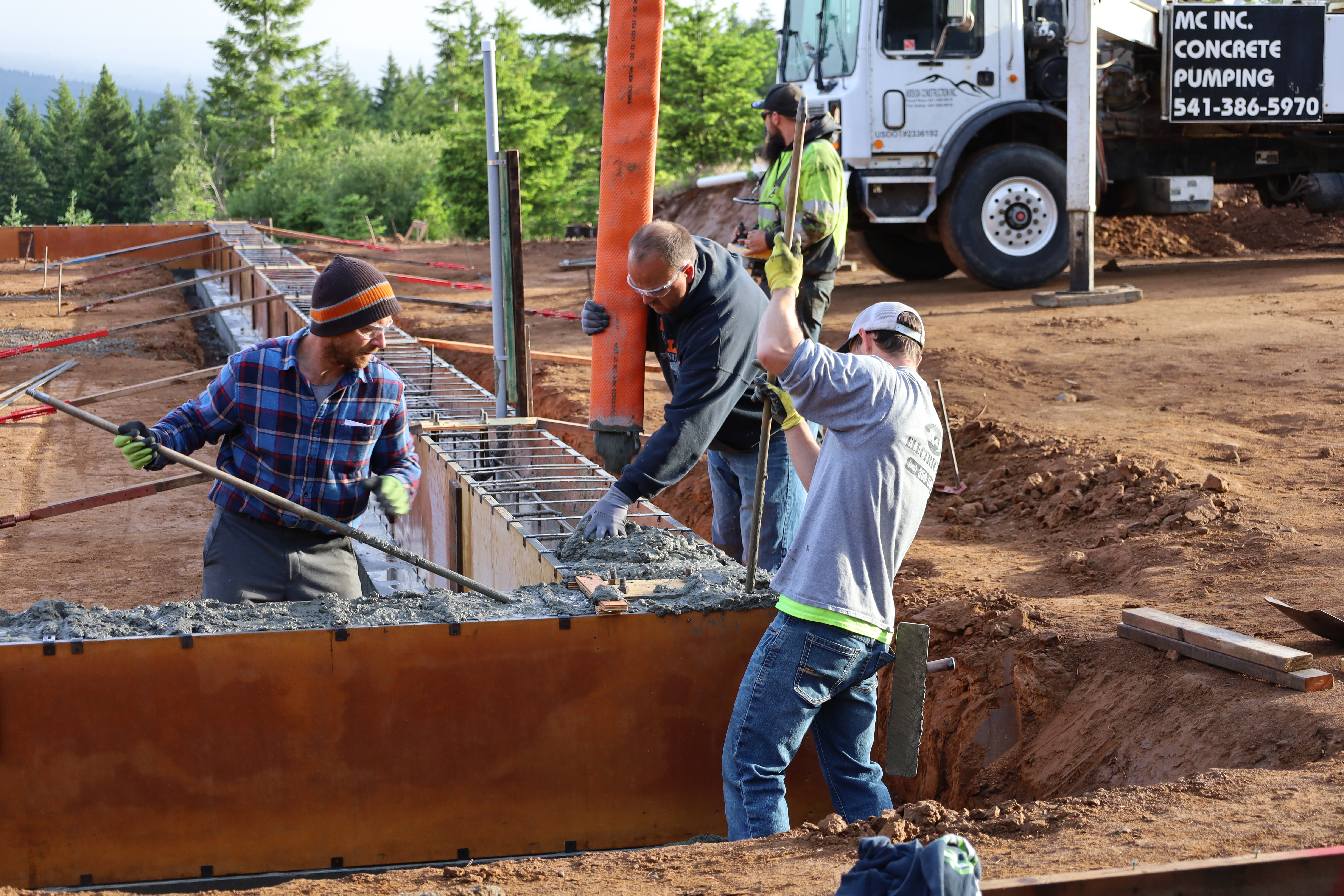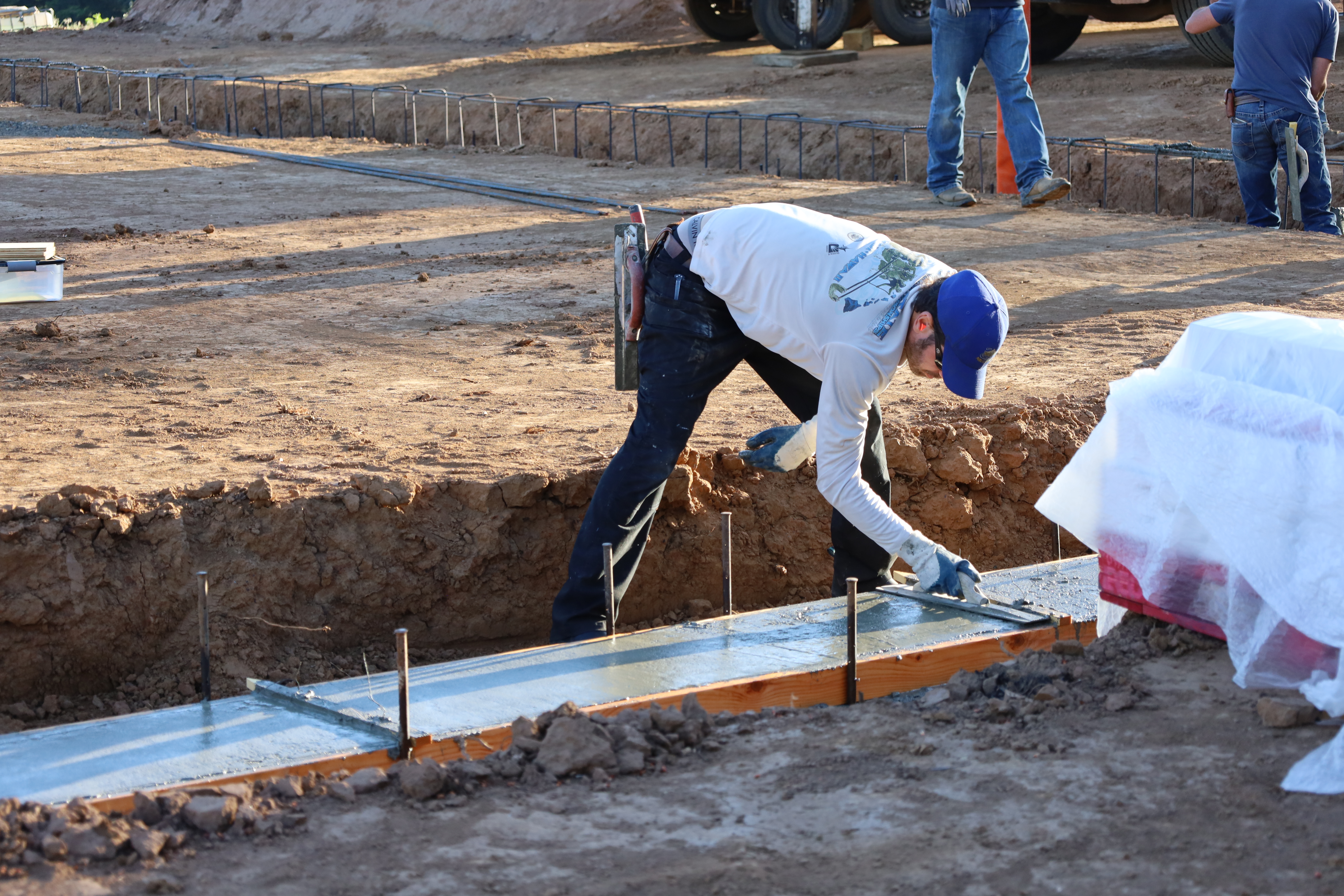 They went around the perimeter twice, filling the forms only halfway up the first time.