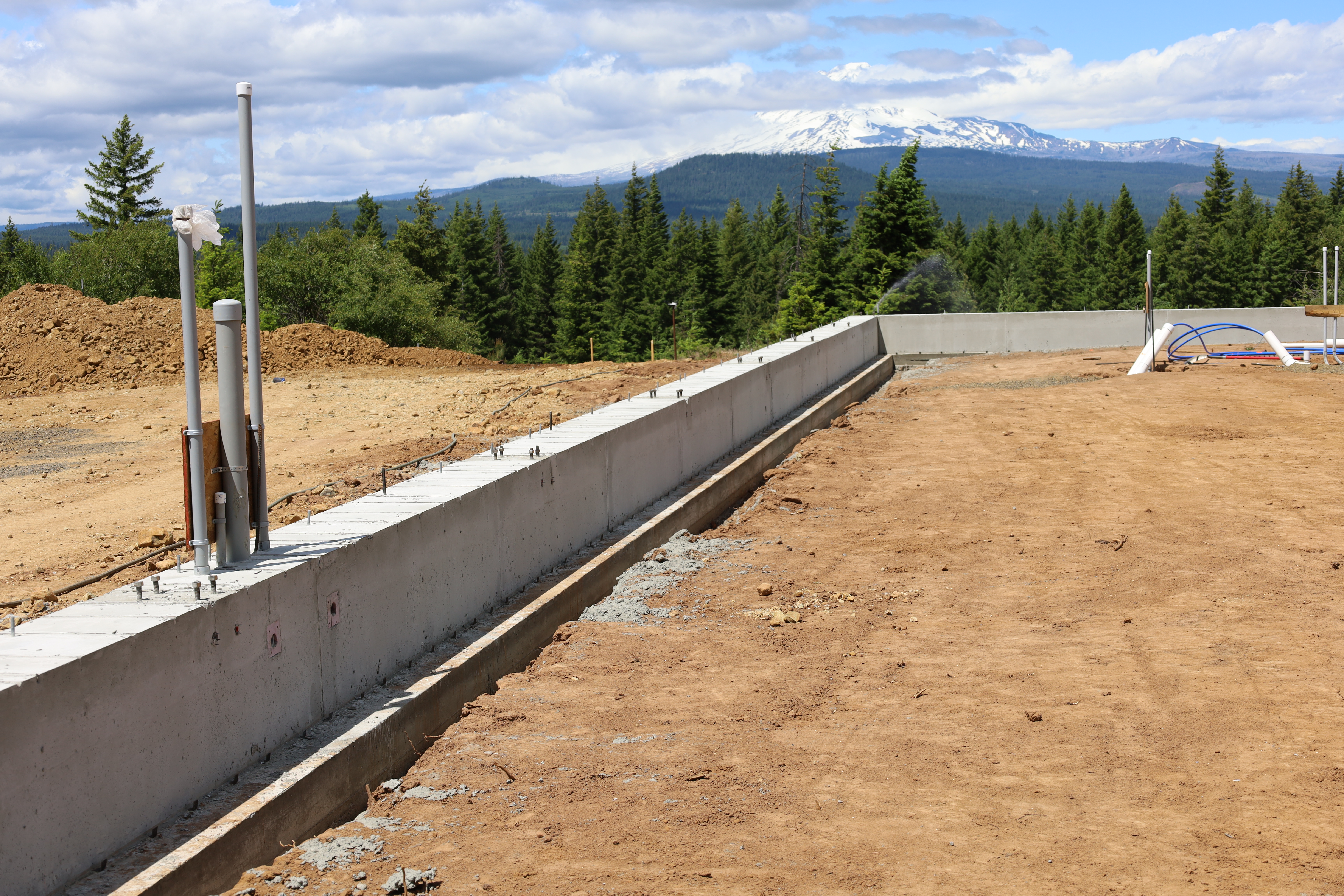 Because the long sides are so long and tall, additional supports with turnbuckles were set up to help shape the walls. The turnbuckles can also be adjusted to straighten out the walls while they are pouring concrete, as the pressure tends to push the walls outwards.