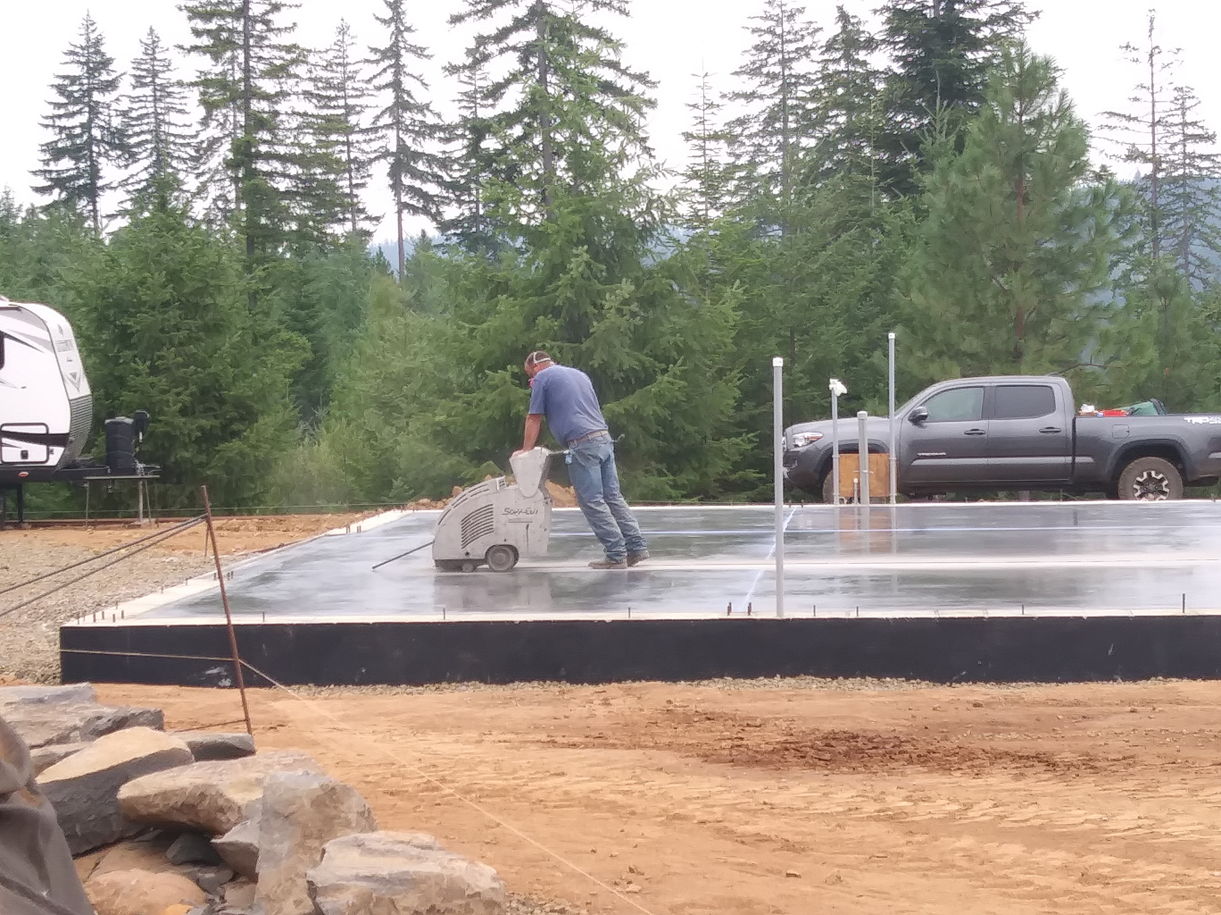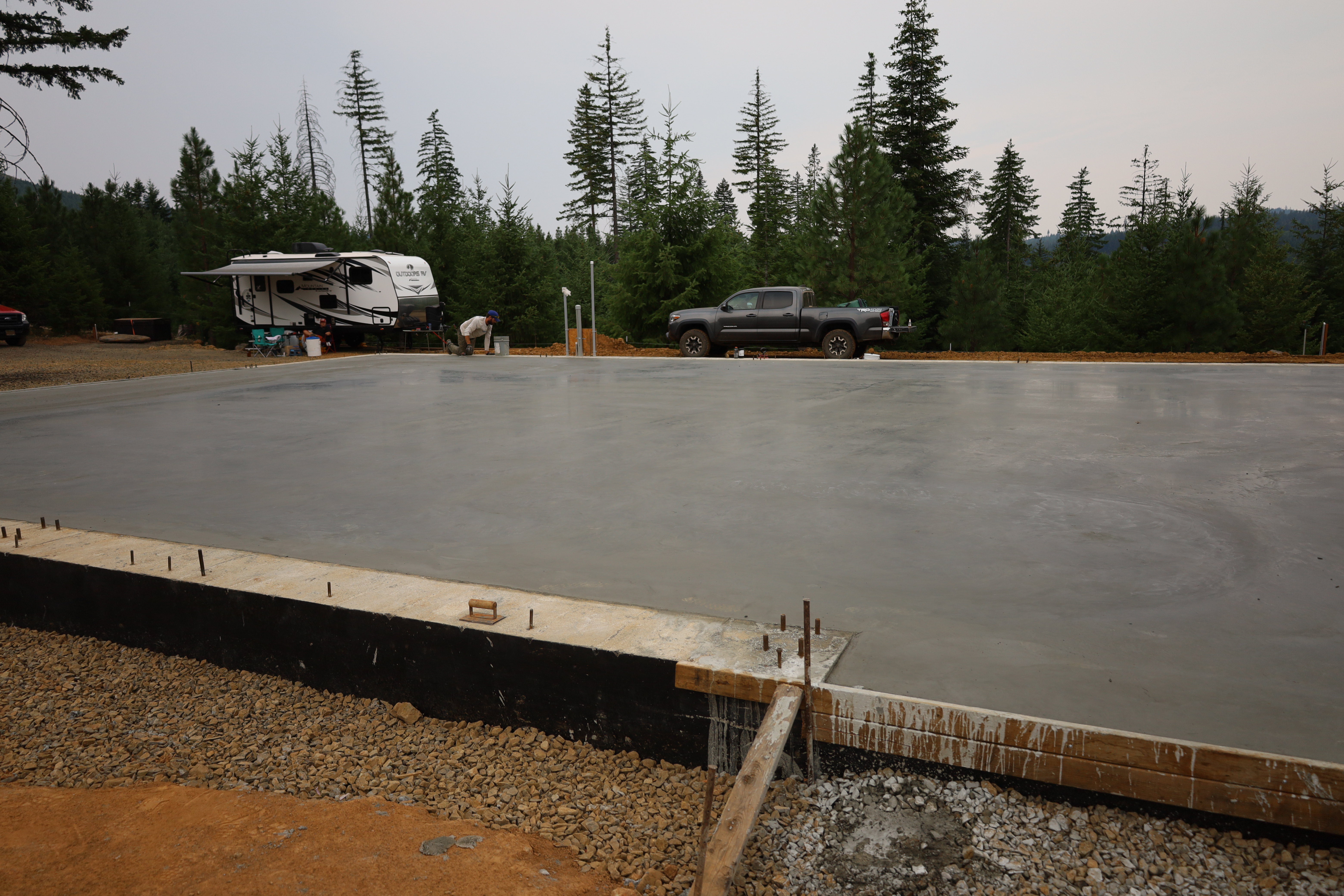 We reached another big milestone- pouring the slab! Since we have radiant heat and most of the building is a workshop, we decided to leave all of the floors as exposed concrete. Cracking, texture, sheen, color, and the general appearance were all concerns, especially in the living area. Luckily, Matt and his crew were up to the challenge of pouring us a big beautiful slab!