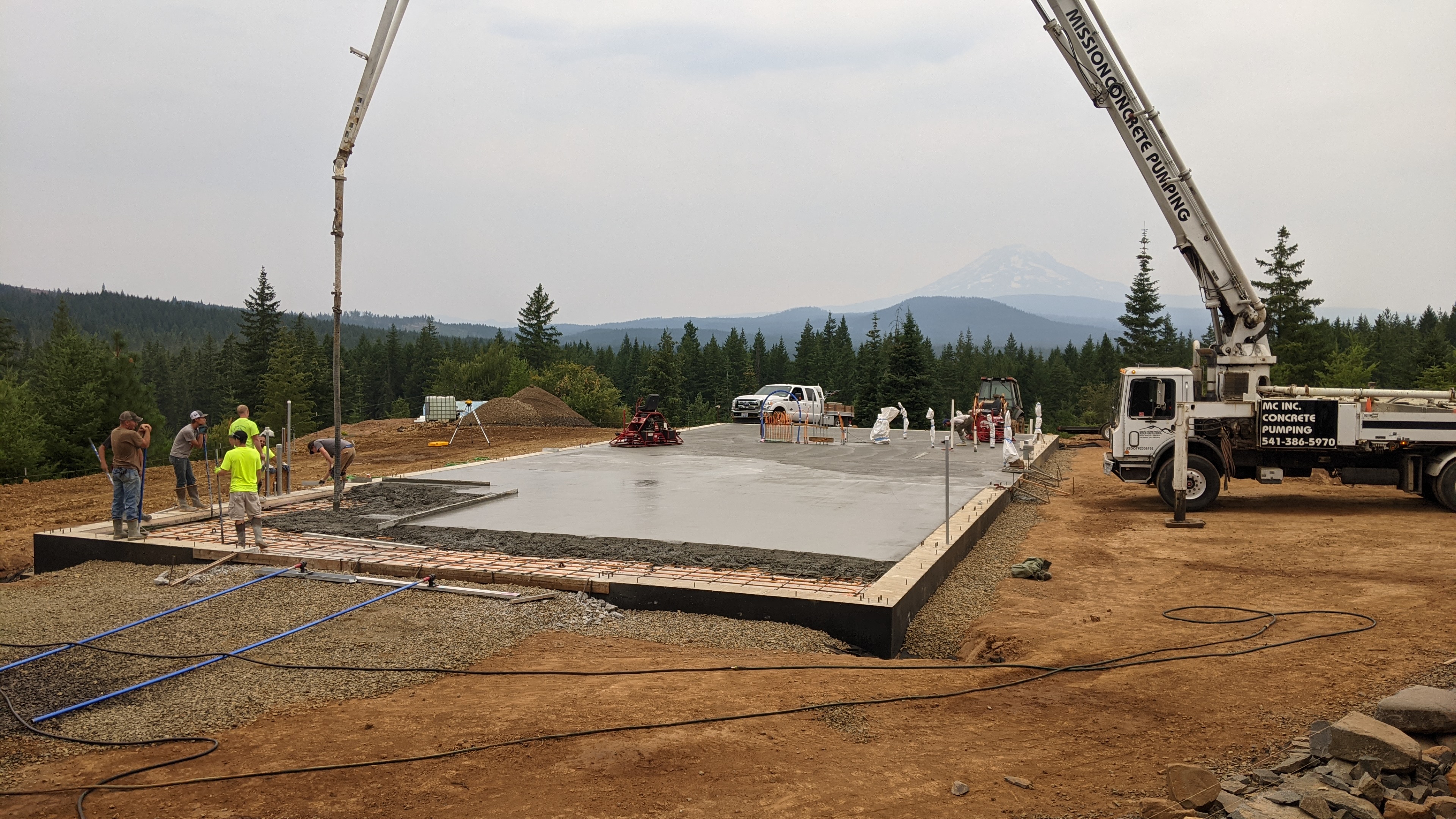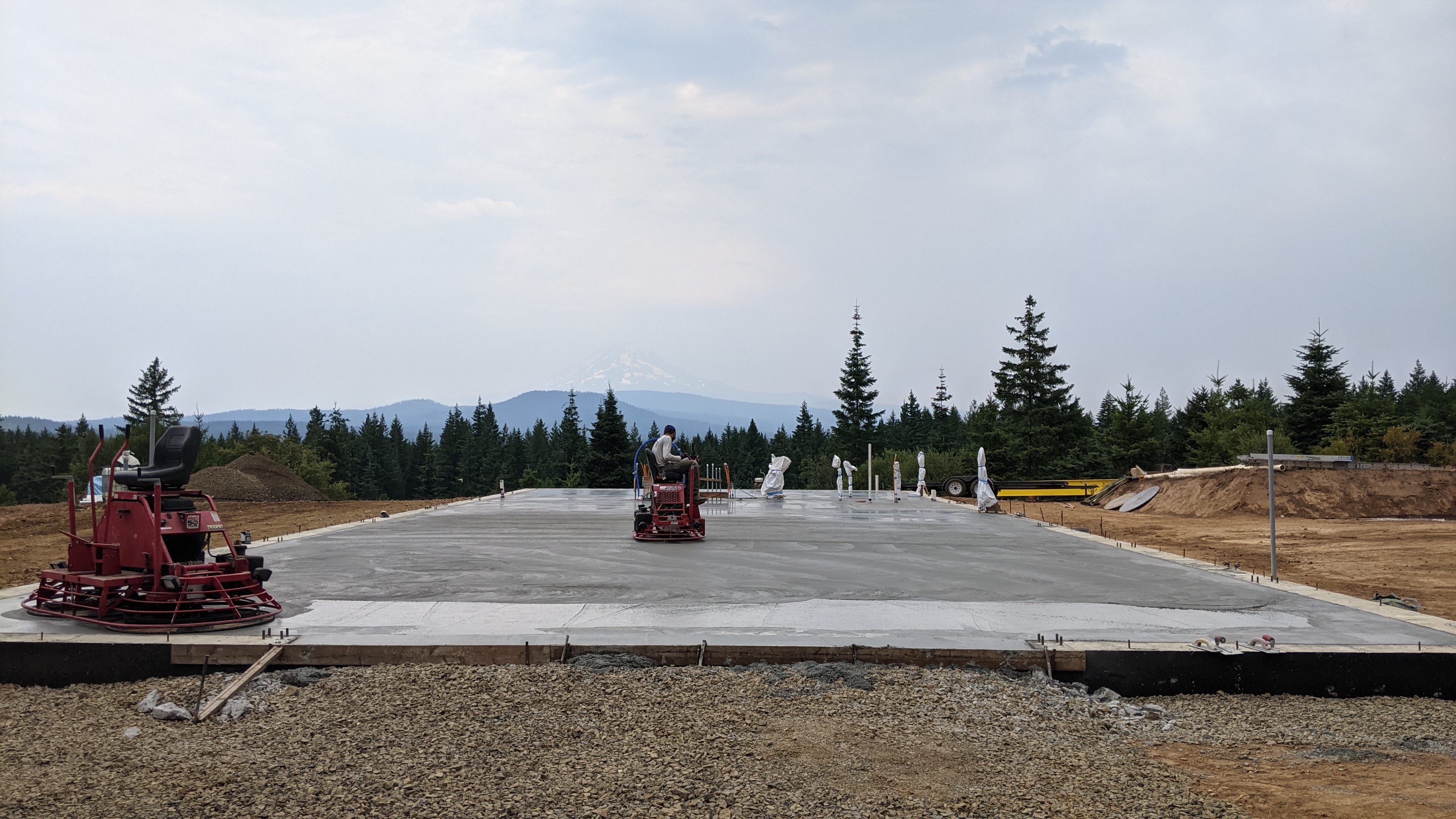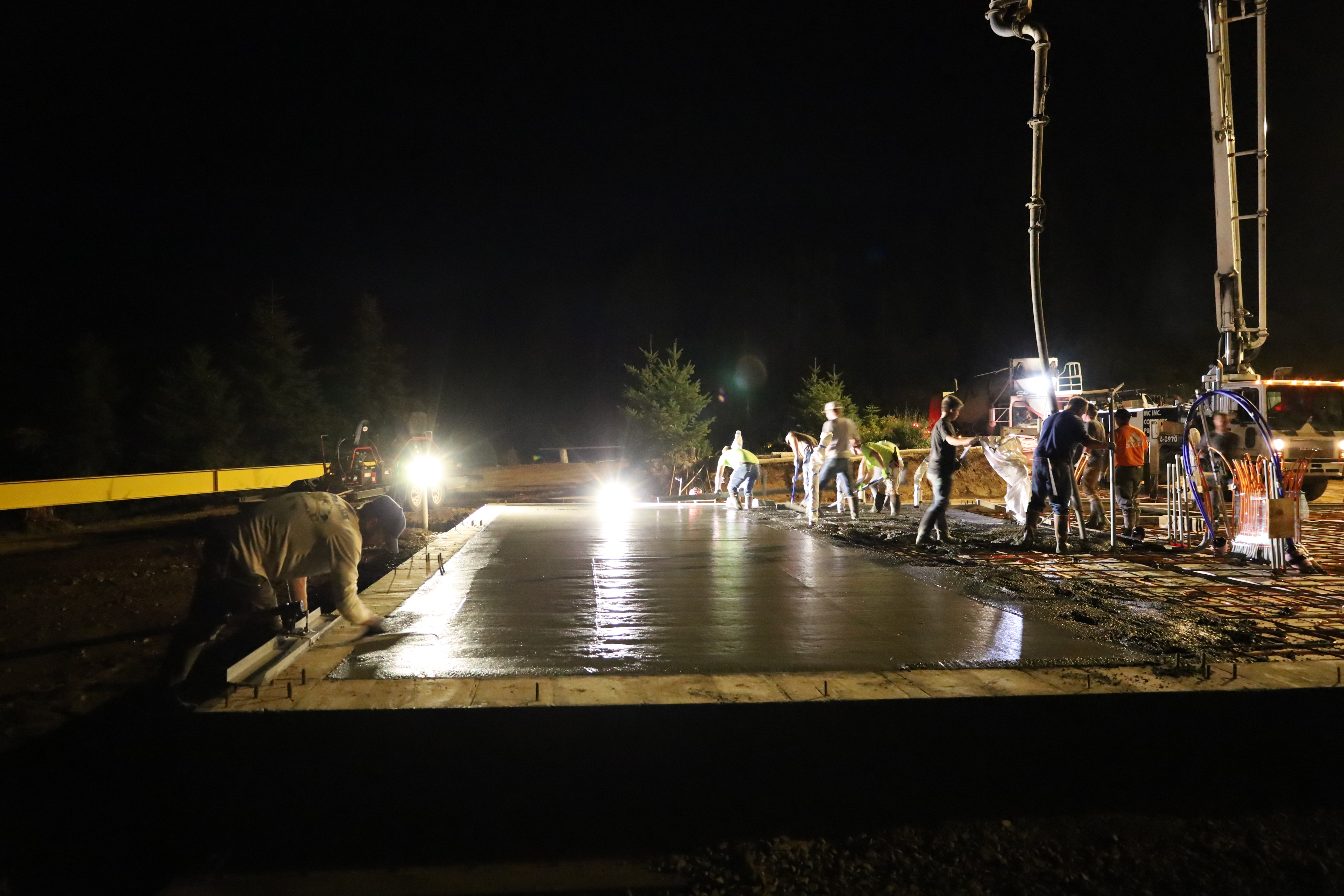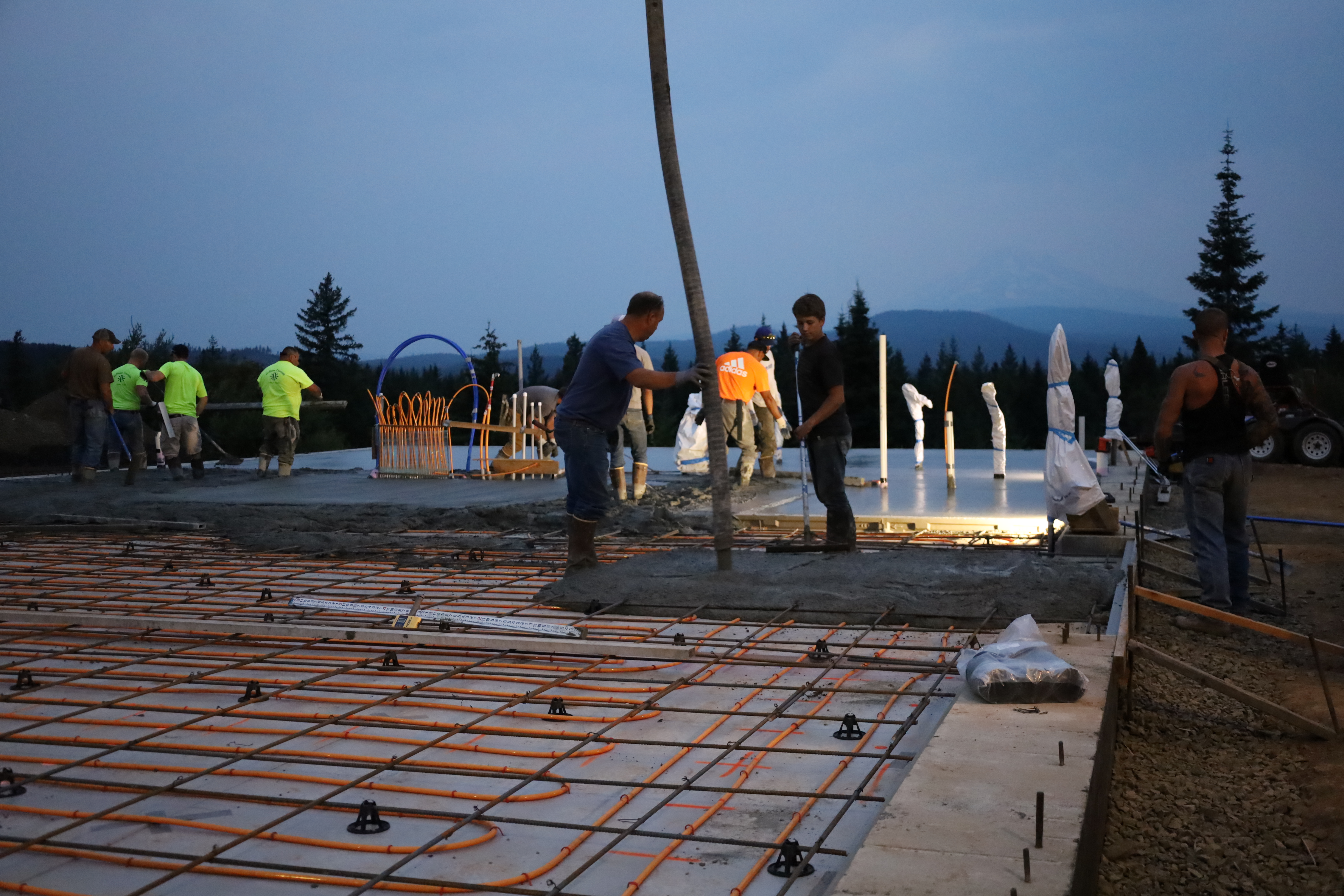 The slab required over 70 cubic yards of concrete! It wasn’t until lunchtime when the last concrete truck was emptied. Fortunately, the clouds hung around all day. We still couldn’t believe it! The unexpected weather made the long day slightly less stressful.