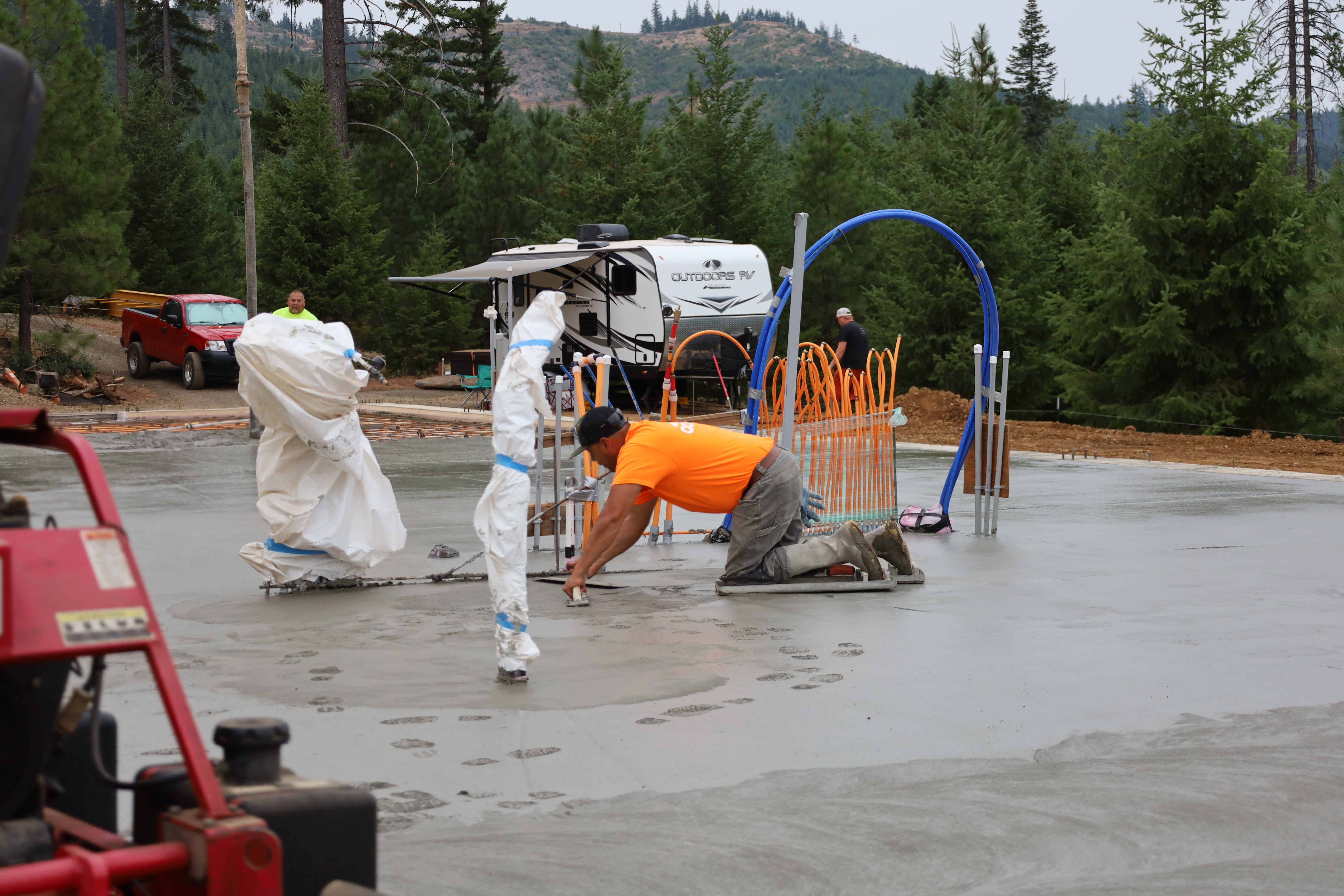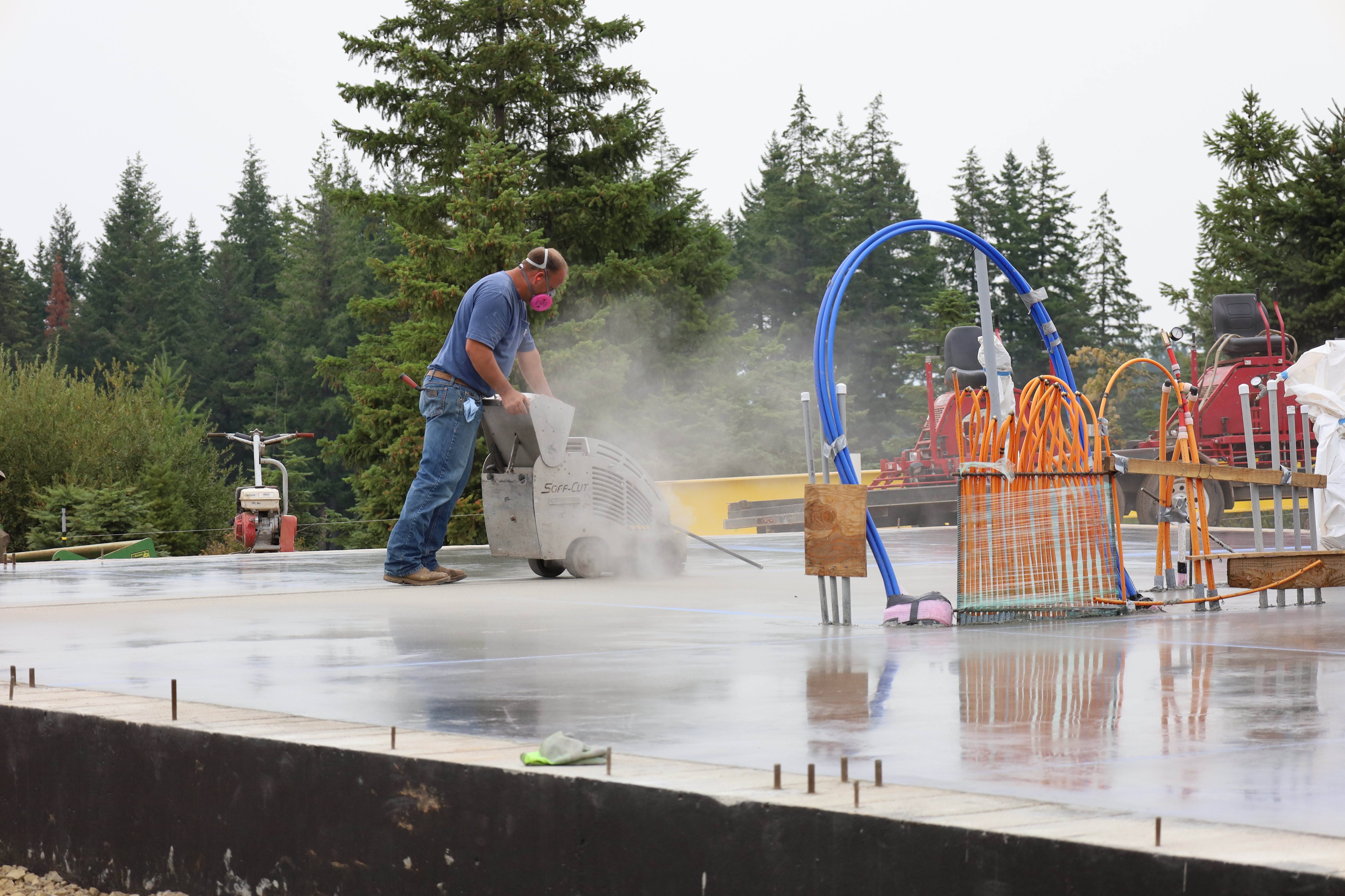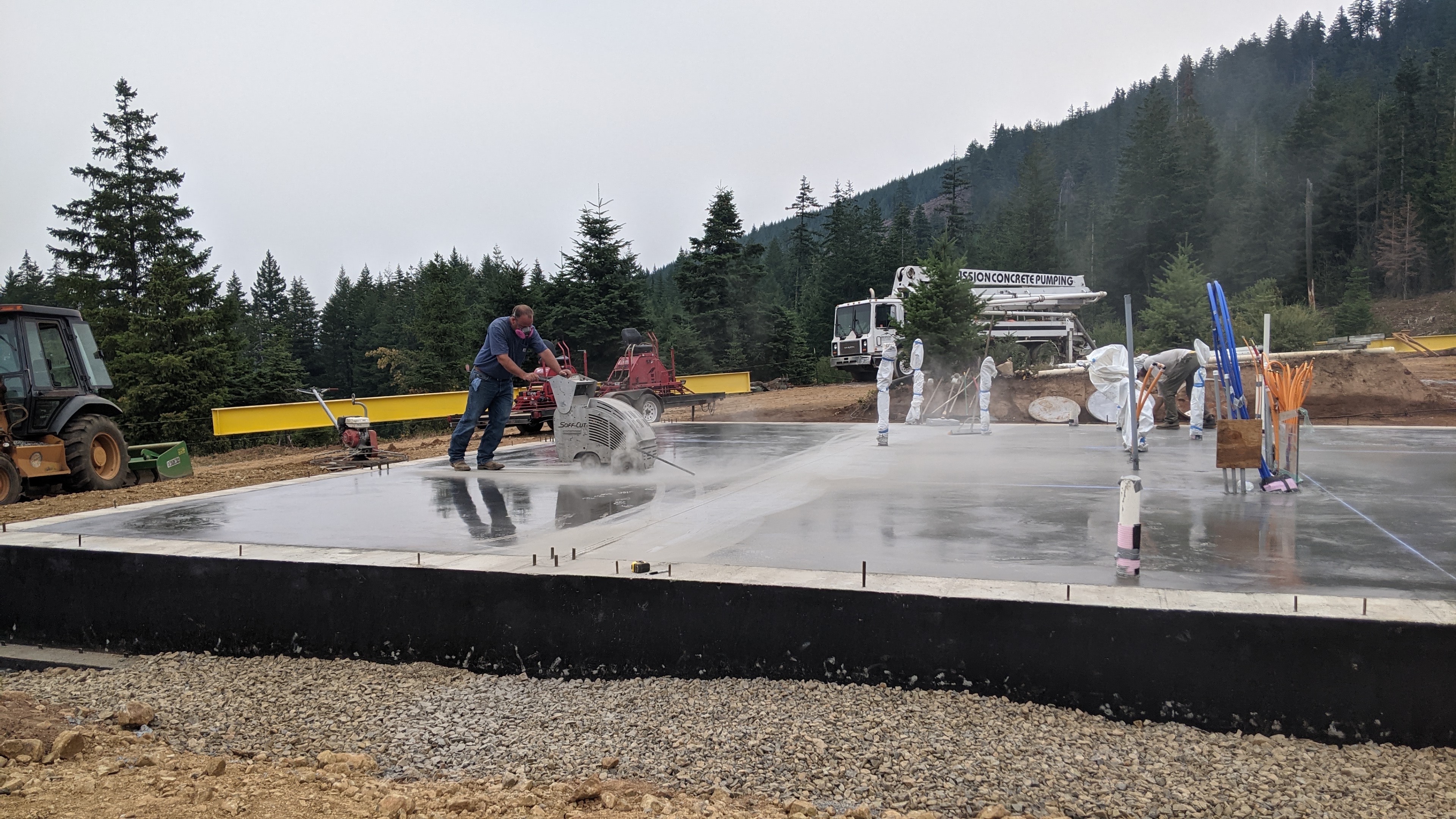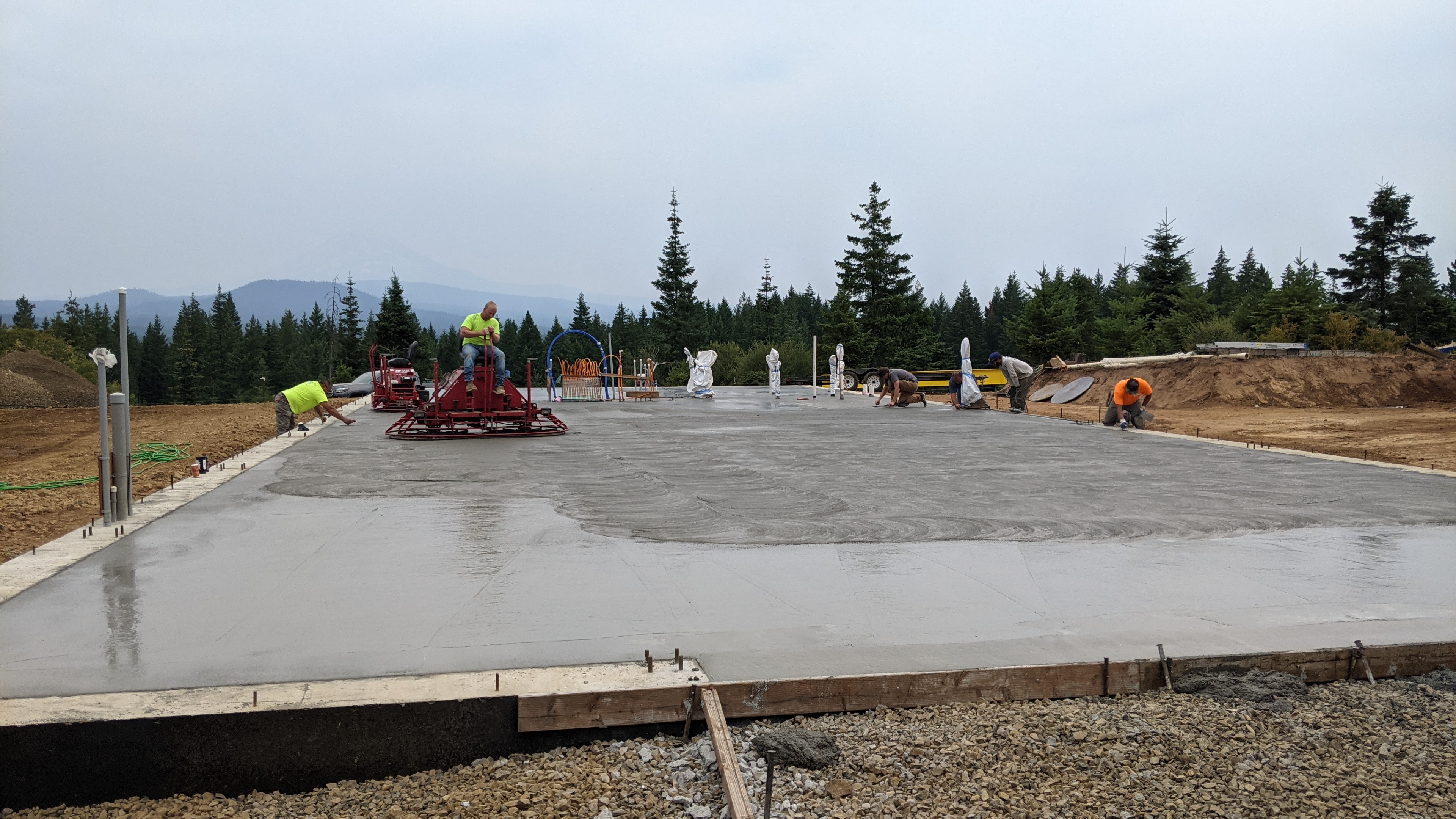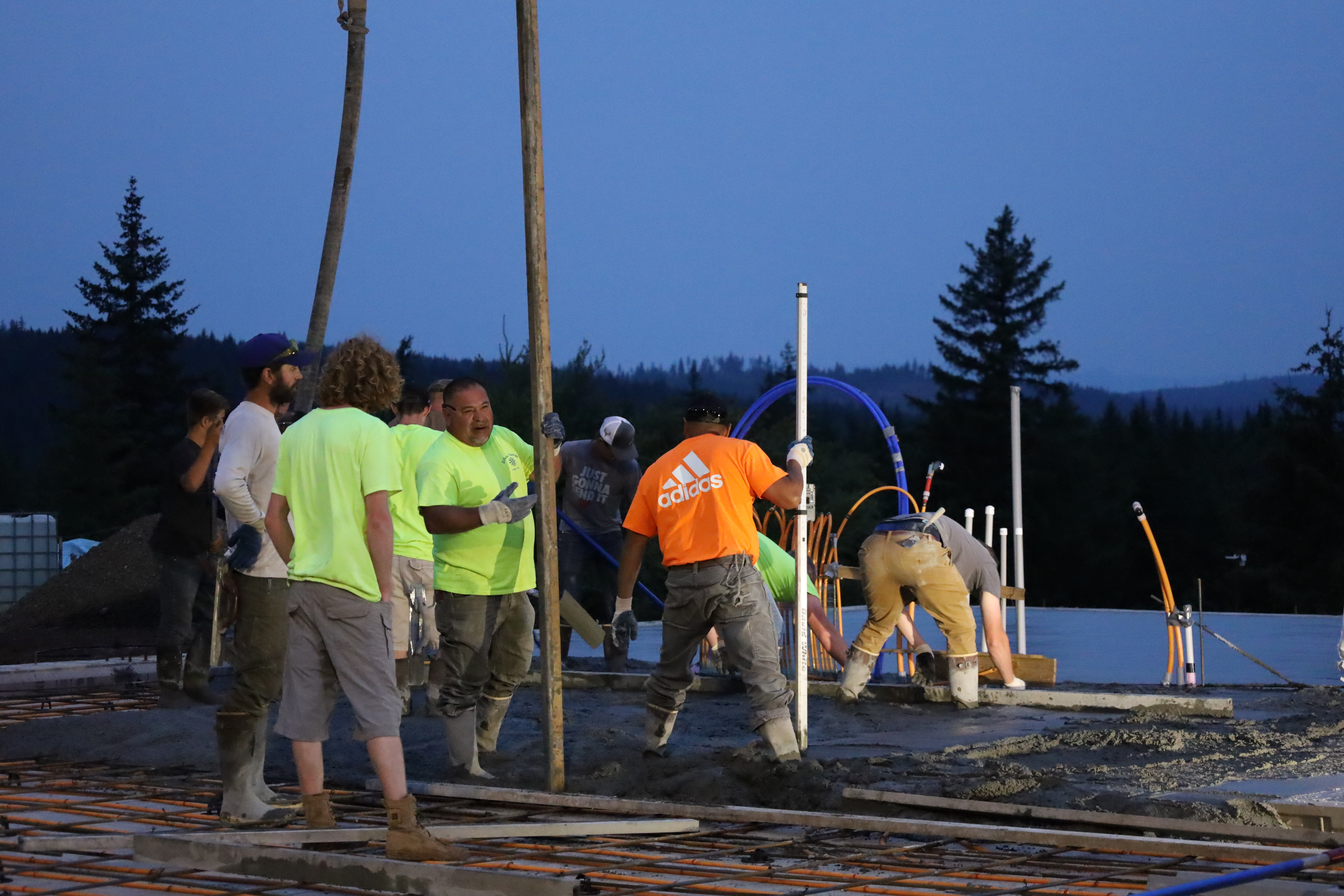 The slab required over 70 cubic yards of concrete! It wasn’t until lunchtime when the last concrete truck was emptied. Fortunately, the clouds hung around all day. We still couldn’t believe it! The unexpected weather made the long day slightly less stressful.