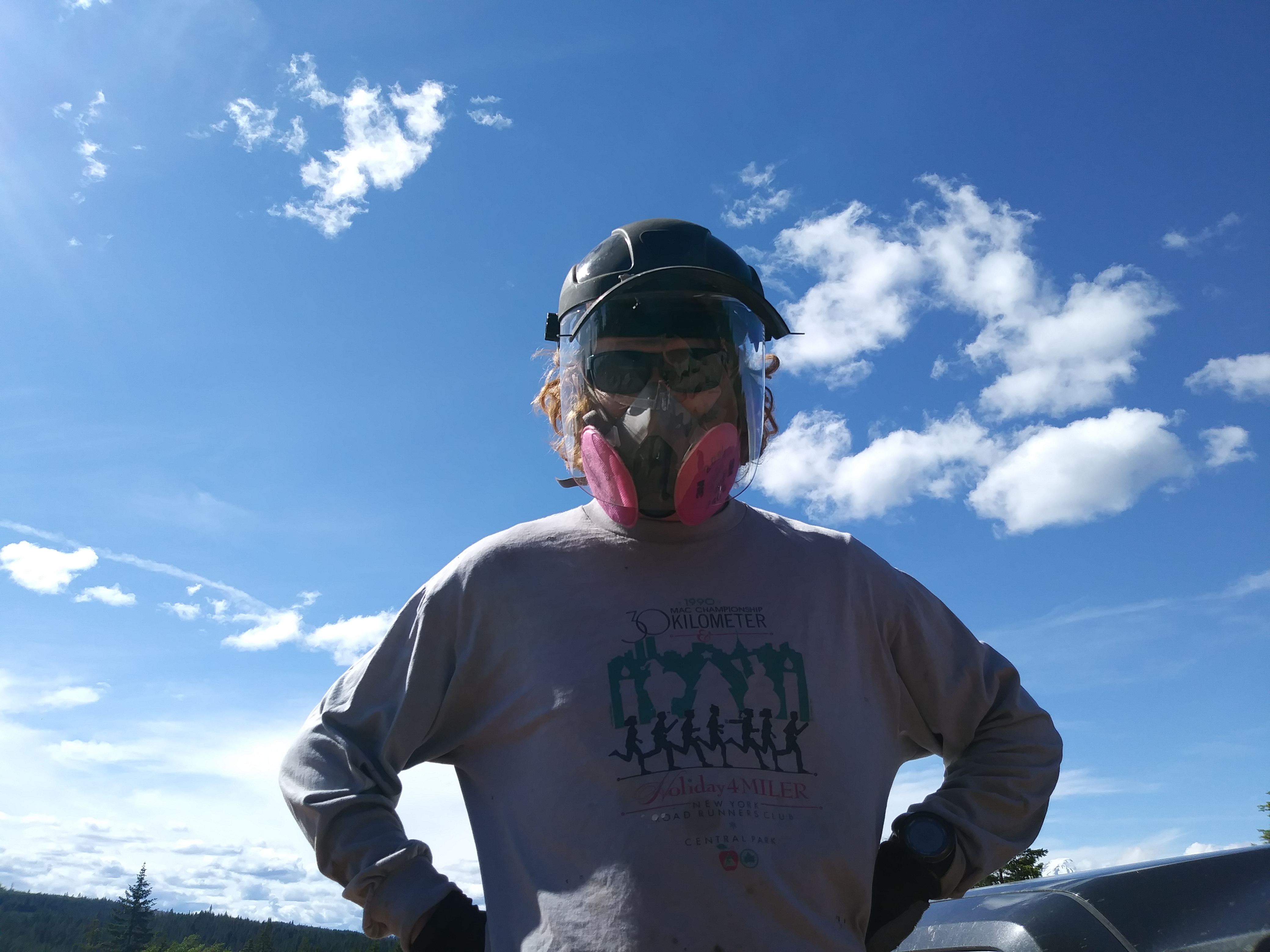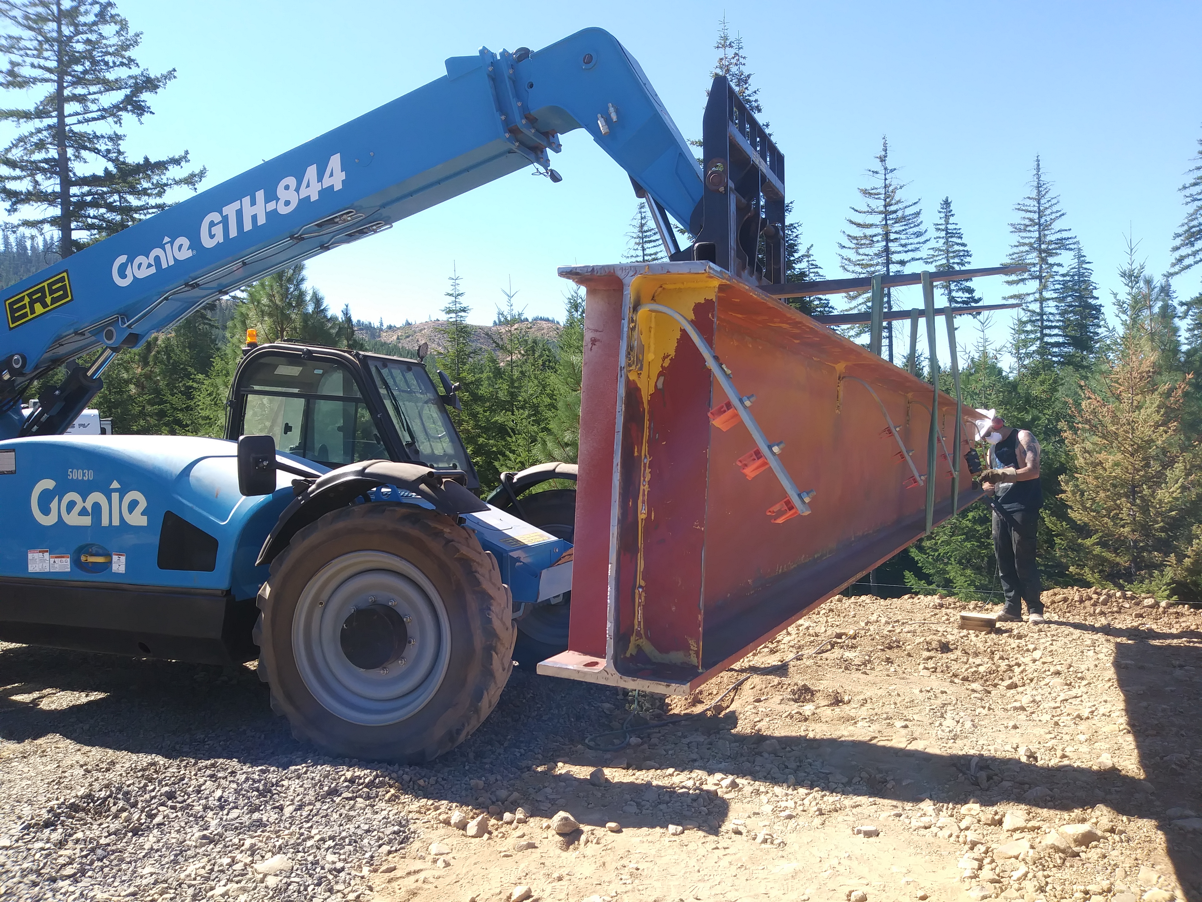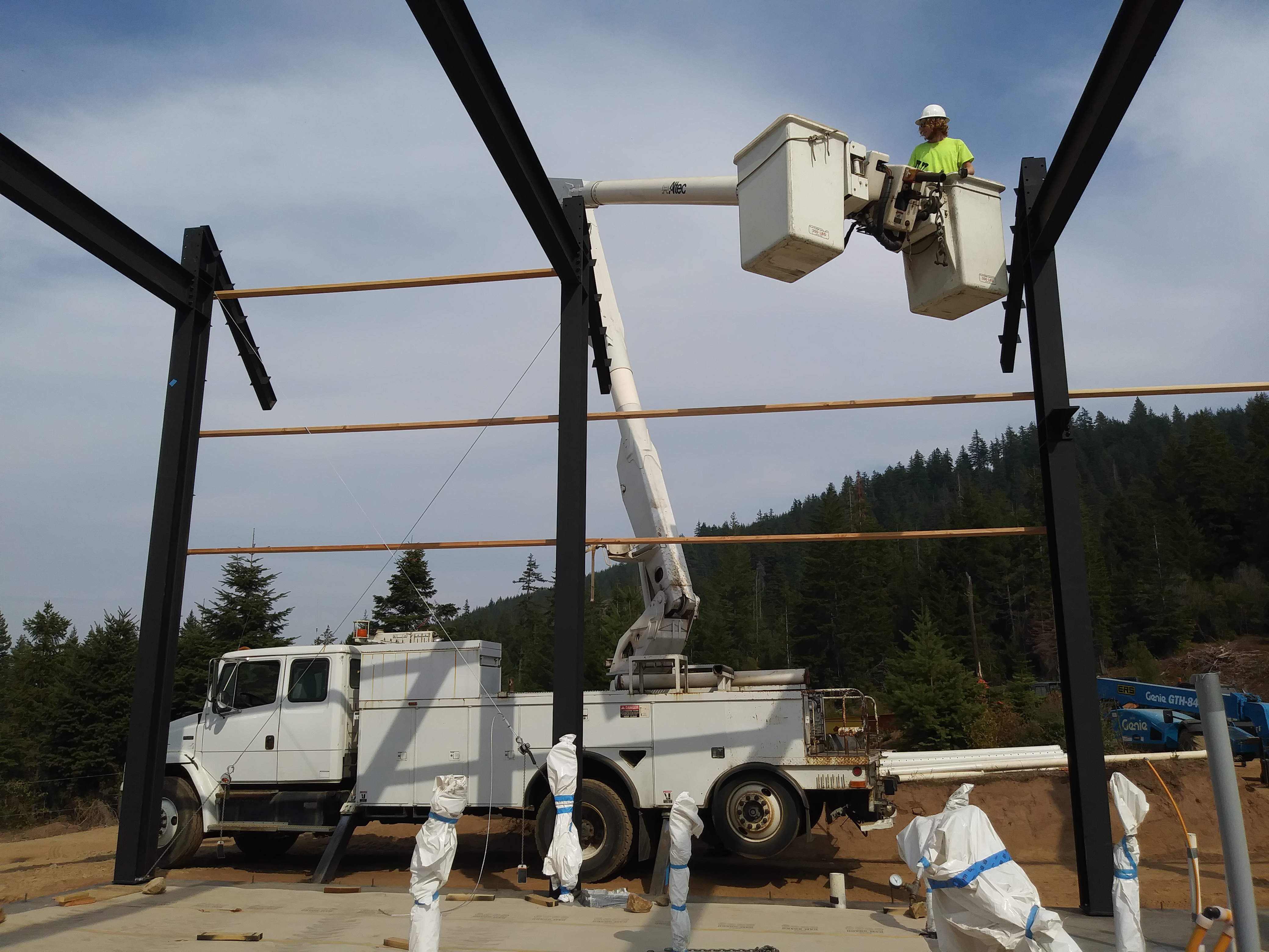 Sam was so excited about the tuck and practiced operating it while we waited for the steel. He looked like a kid on Christmas morning. Do the power company employees look that happy?