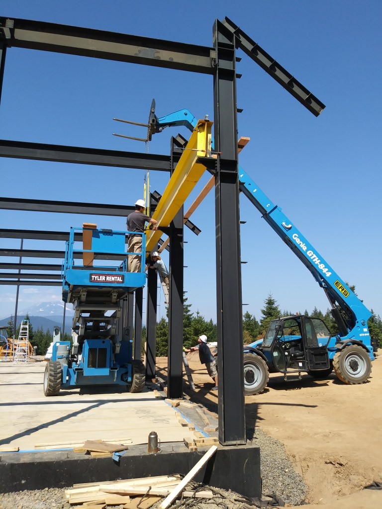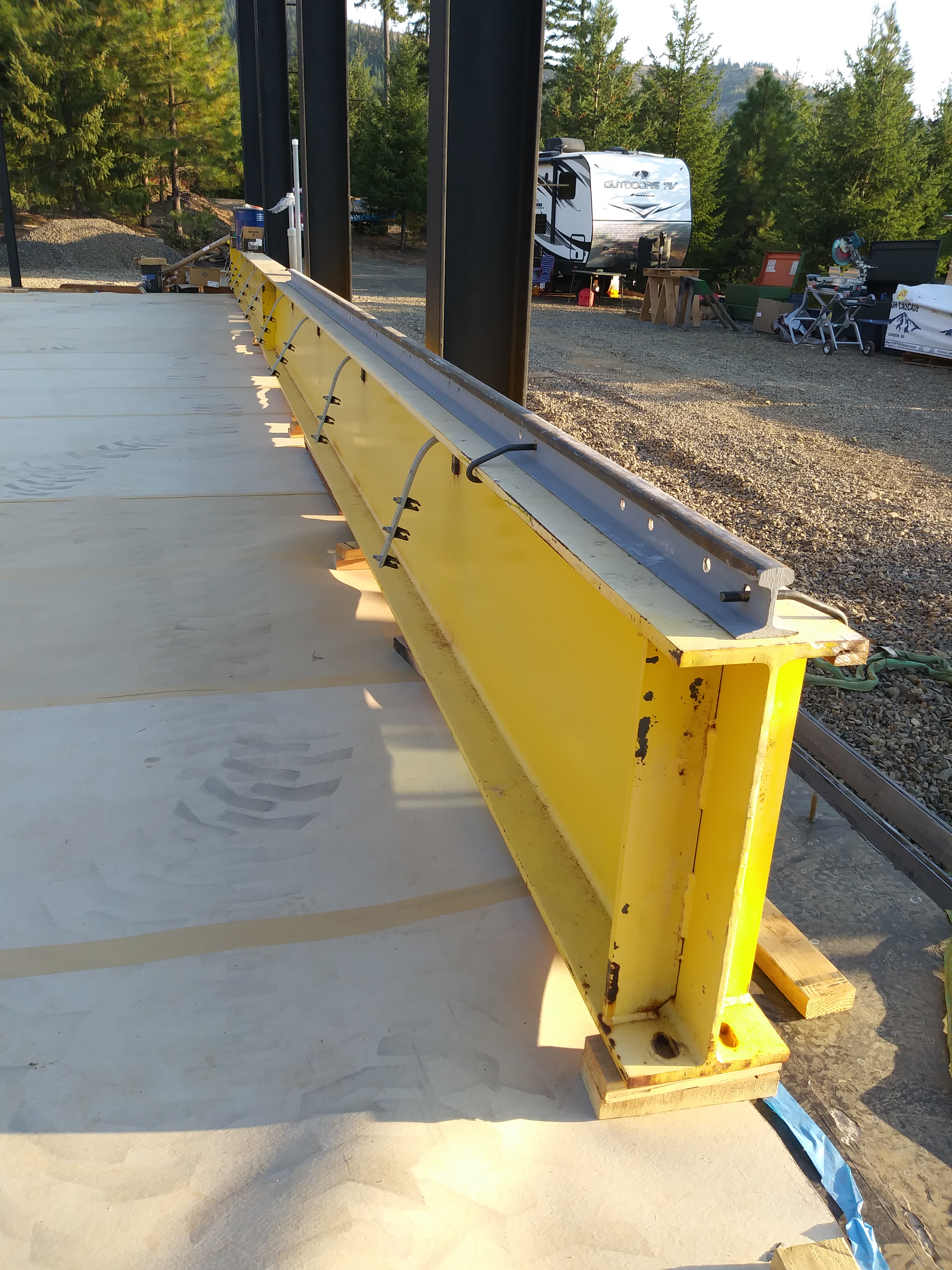 We placed two of the crane beams inside the shop to see how they would fit.