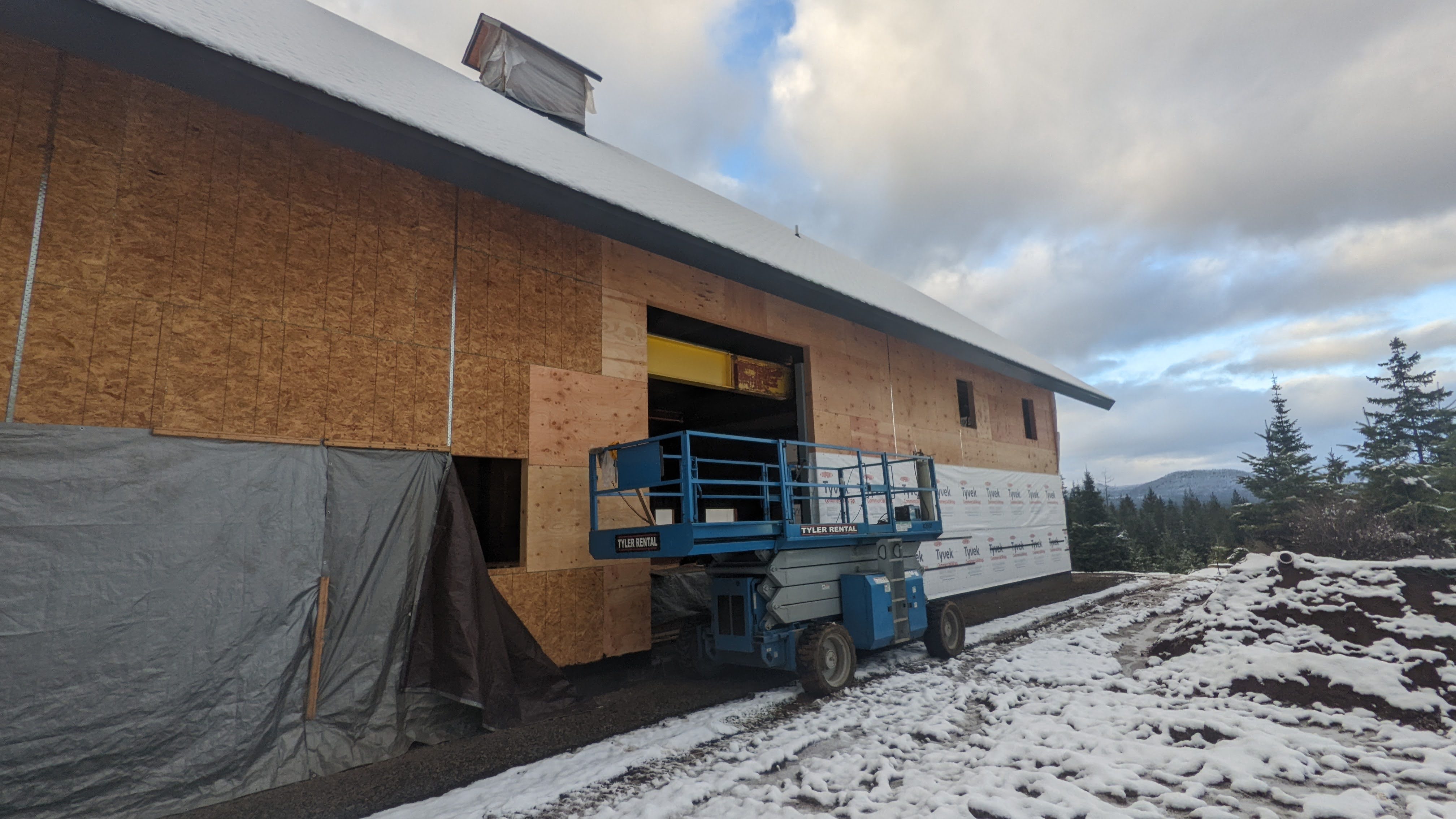 I was hoping to end this post by saying “it’s a wrap!”, but the building isn’t completely wrapped up yet. We want to get all the Tyvek up before it snows much more. If anyone wants to come help us with construction, we’re offering warm baked goods and “days off” to go skiing.