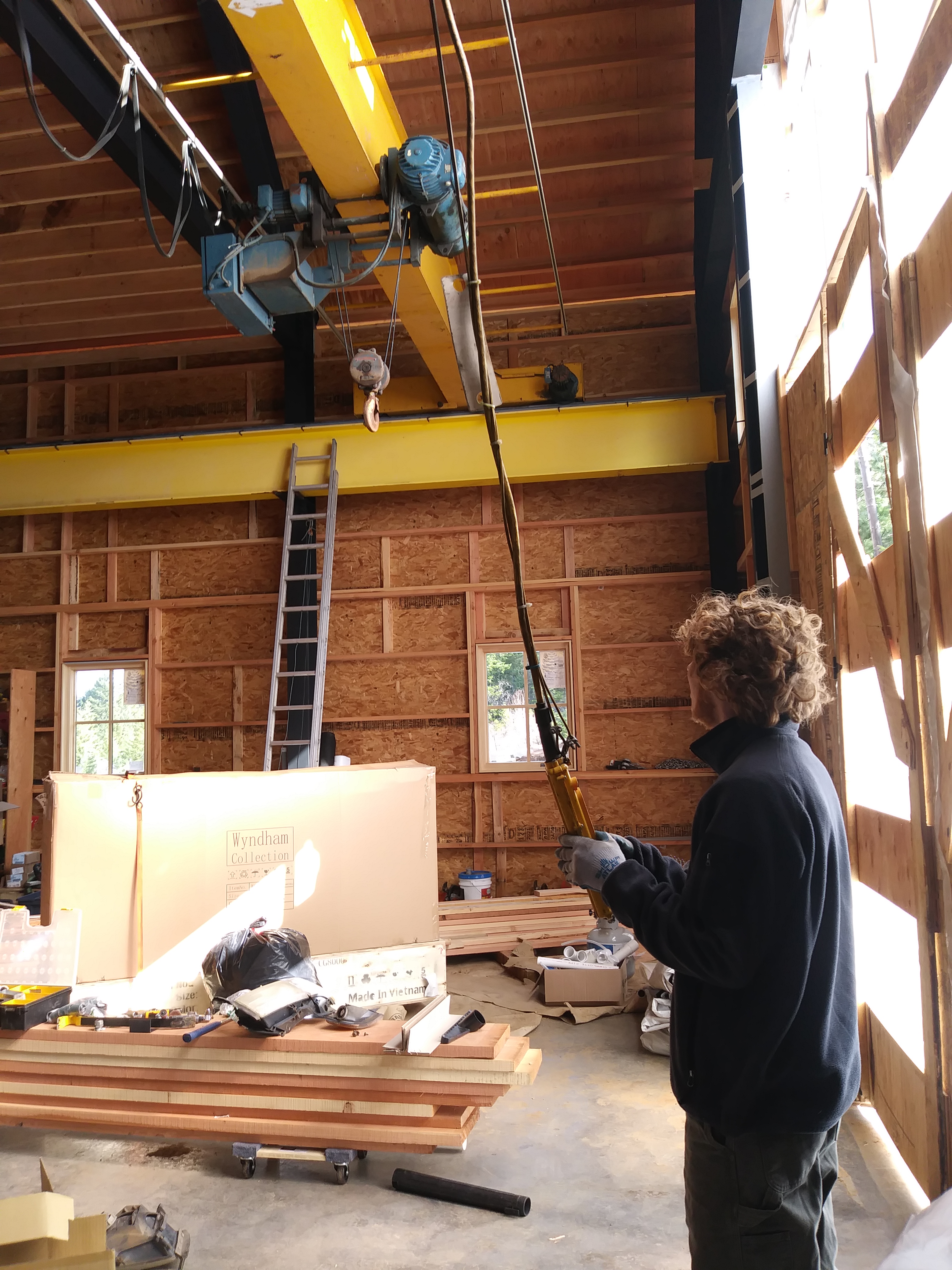 The moment we’ve all been waiting for has come! We designed our whole building around this 5 ton Demag bridge crane we purchased two years ago.