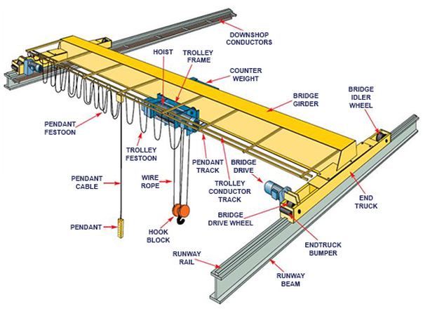 They set up an electrical box on the crane beam and ran wires up to the conductor rails.