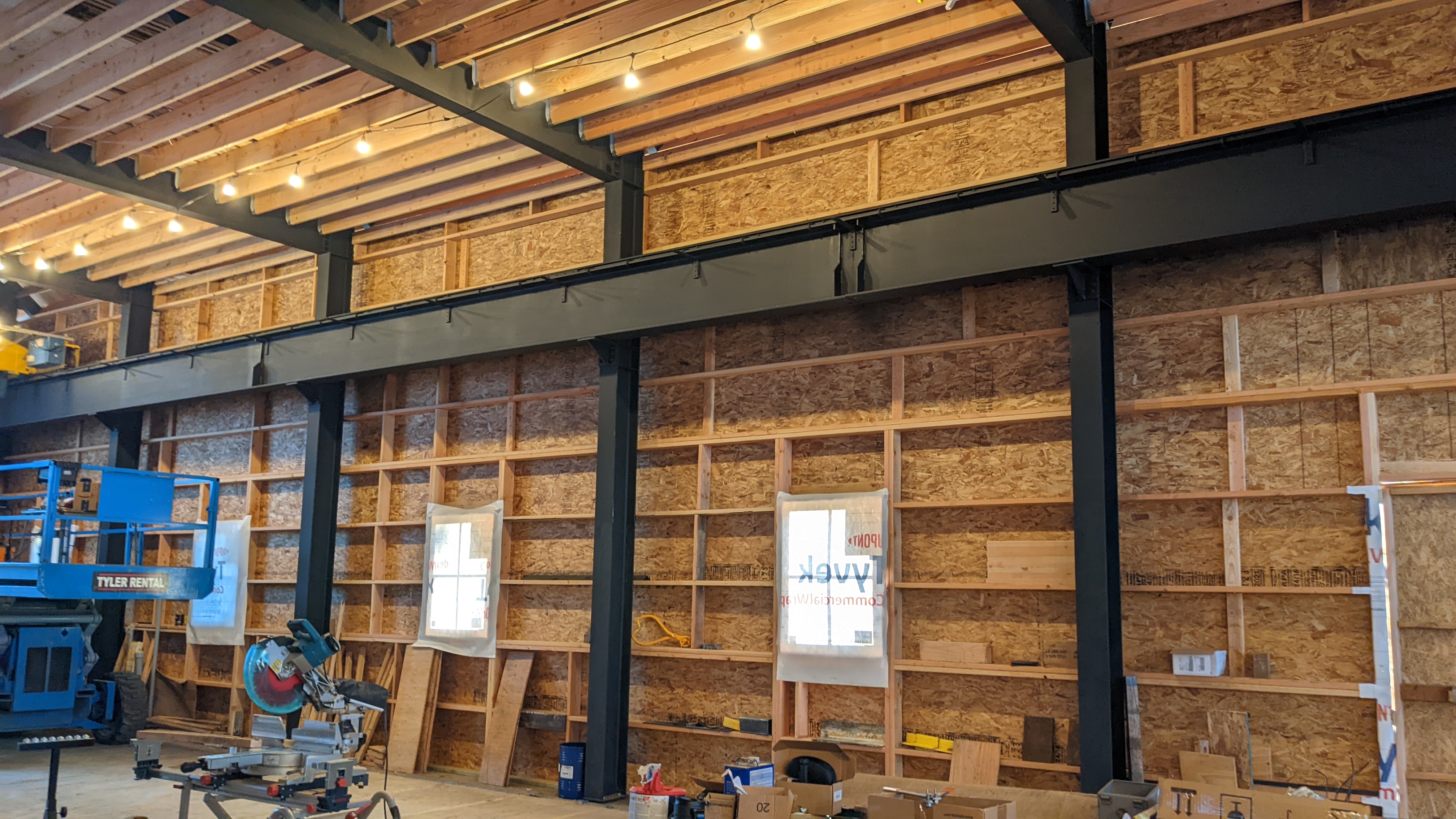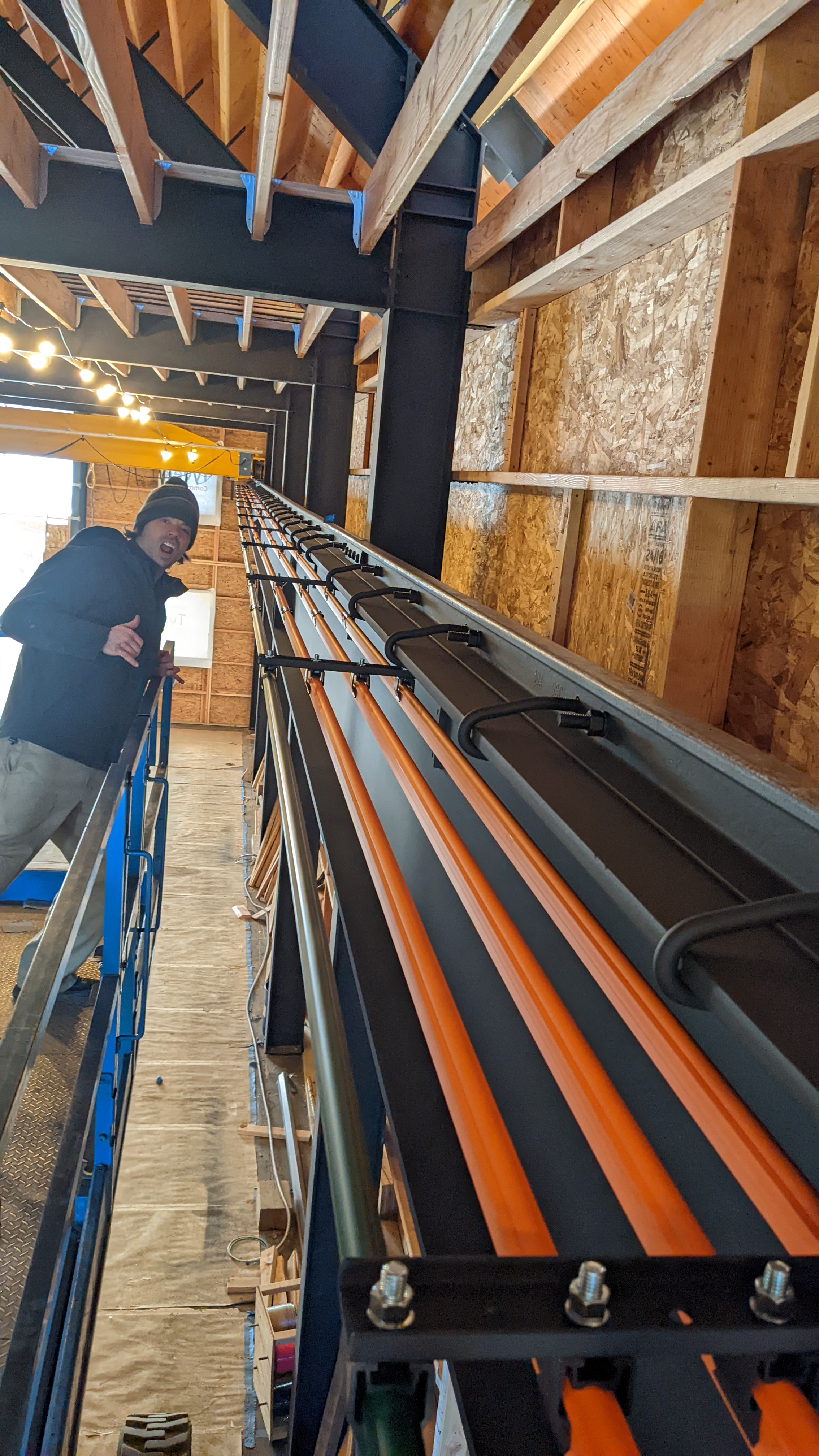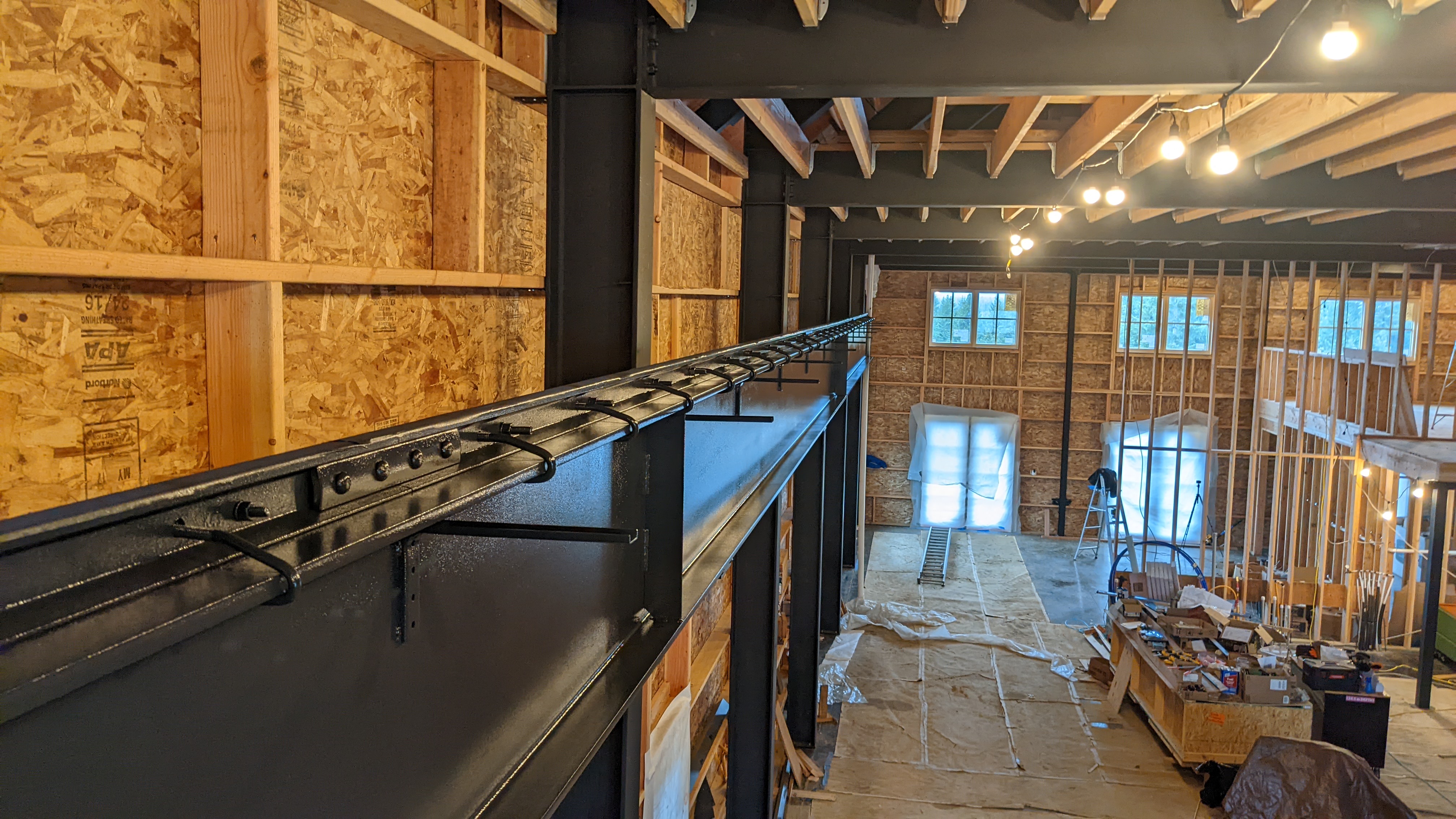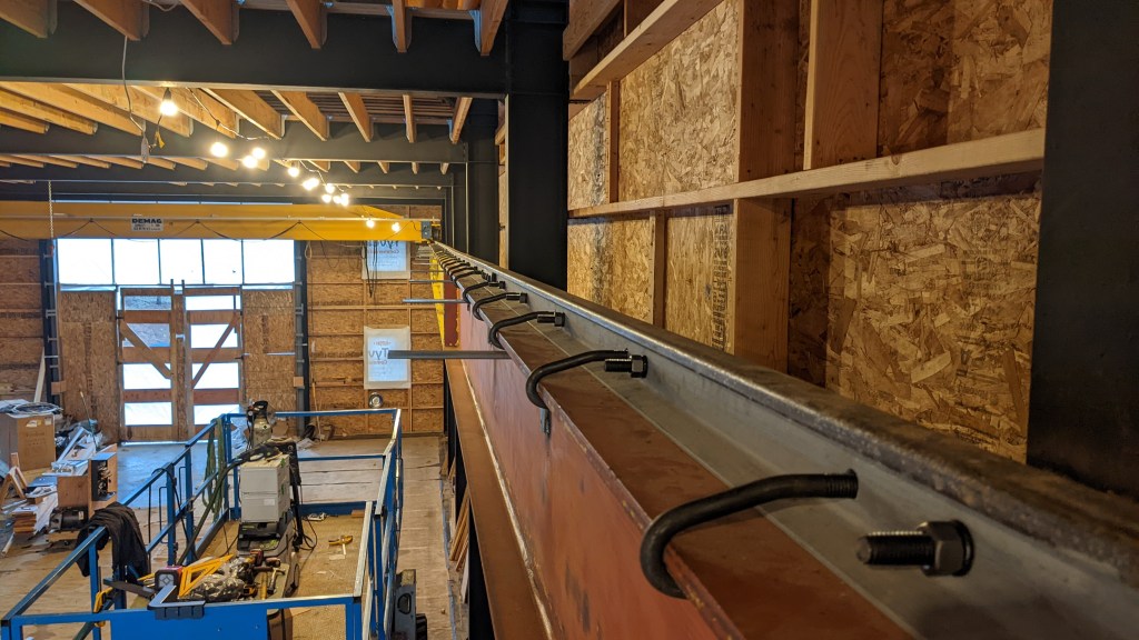 We finished bolting the rails to the top of the beams.