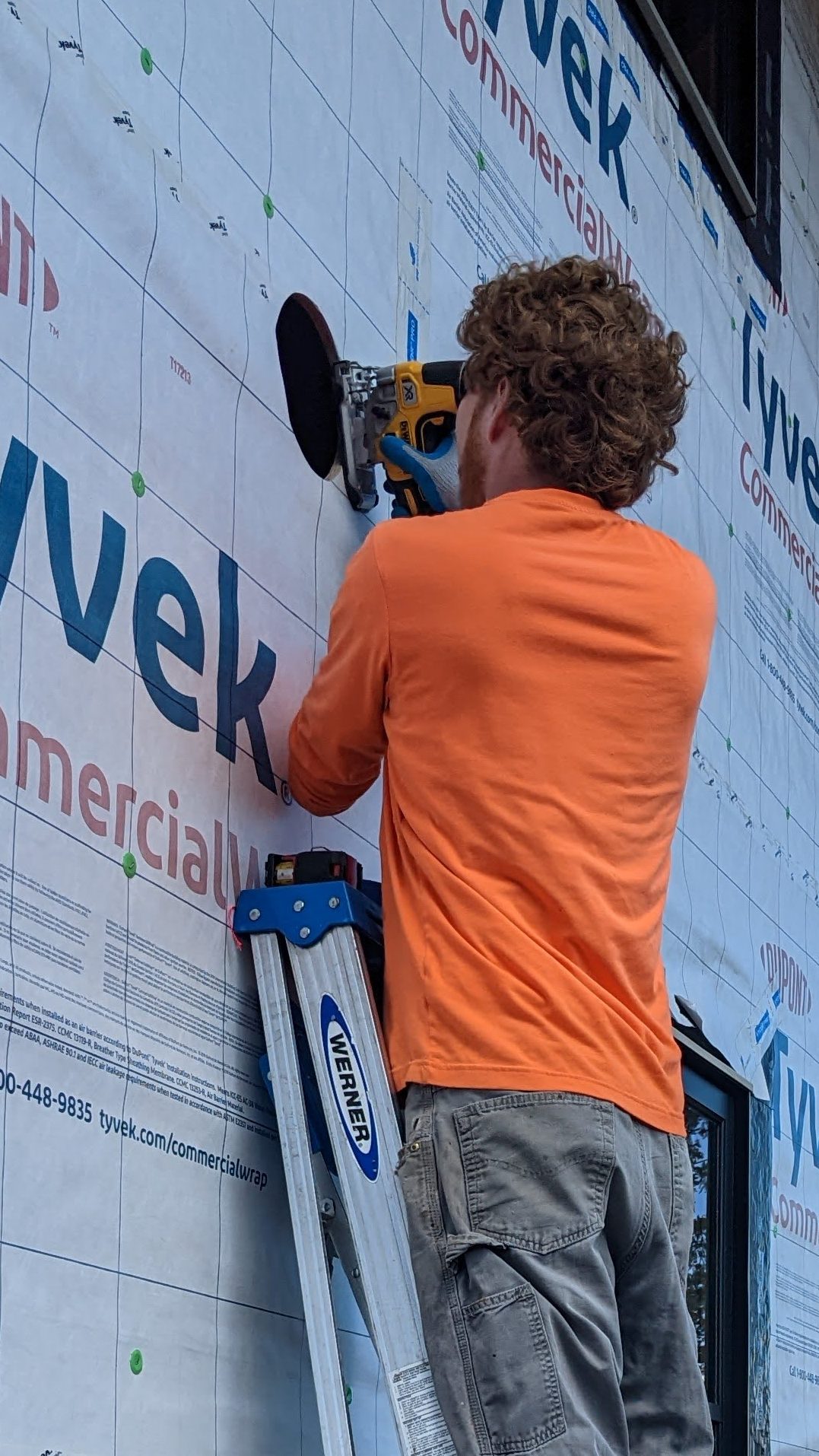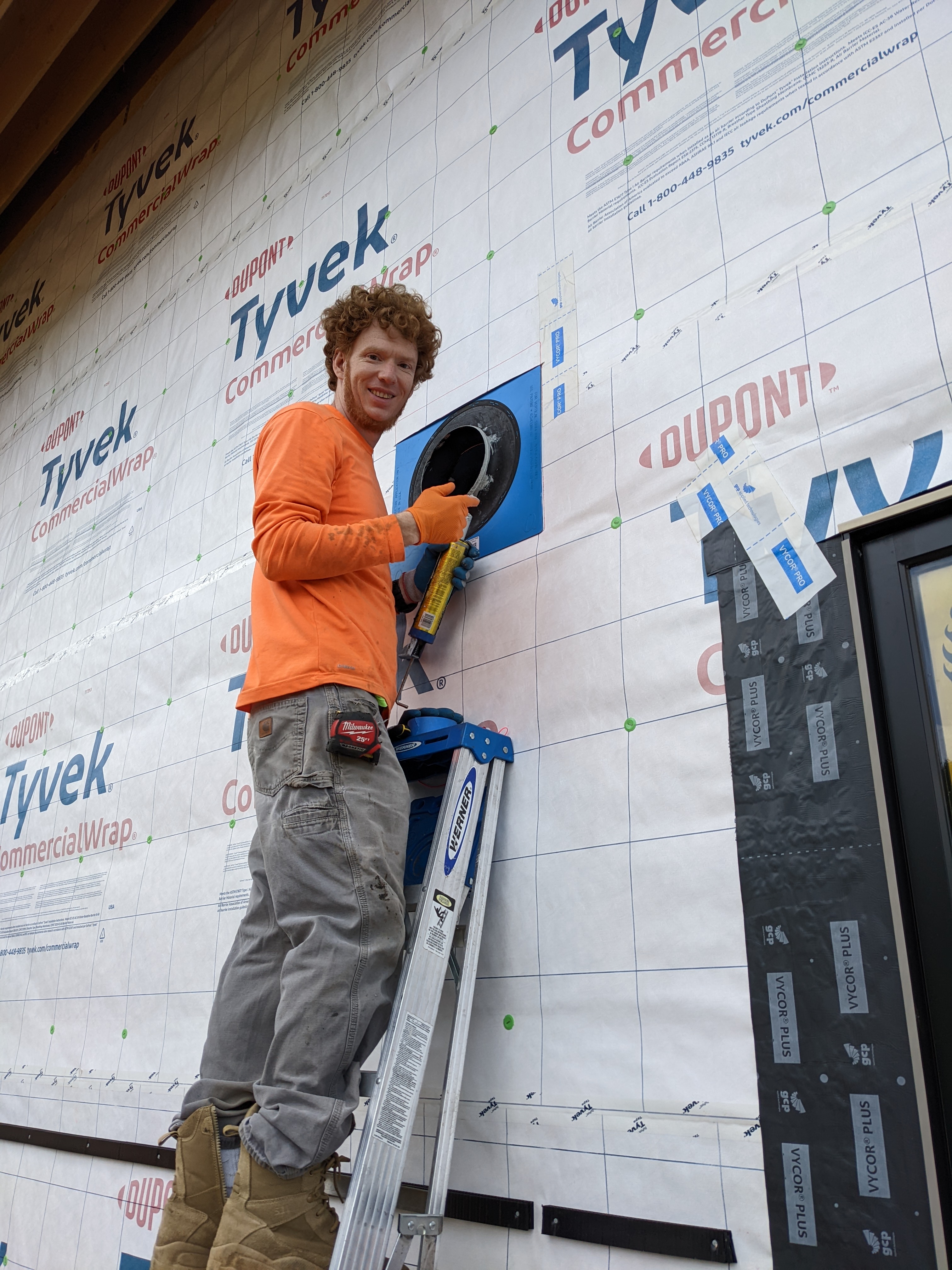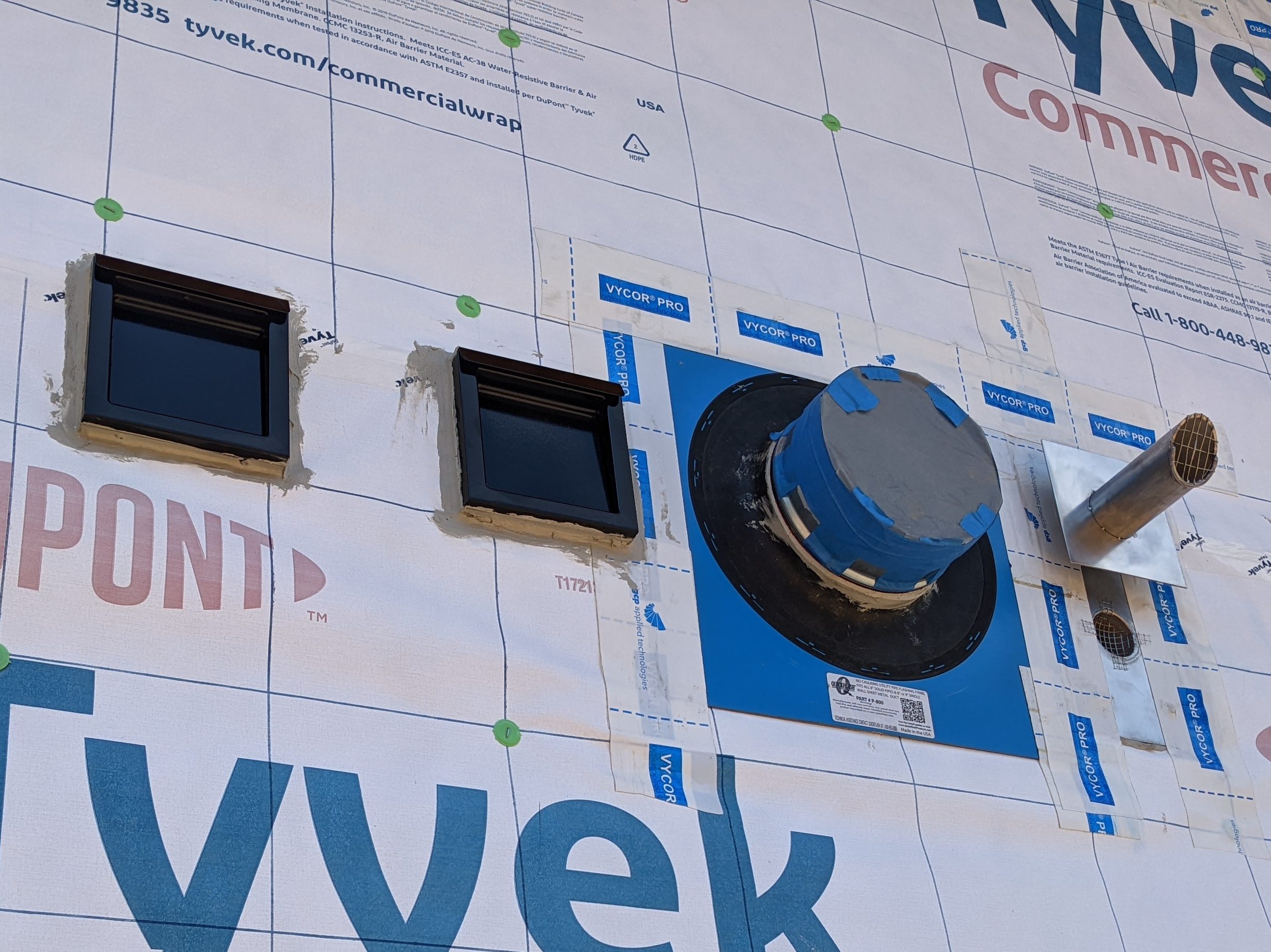 To seal around the larger ducts we used “quick flash”, which acts like a silicone turtleneck when a pipe gets pushed through.