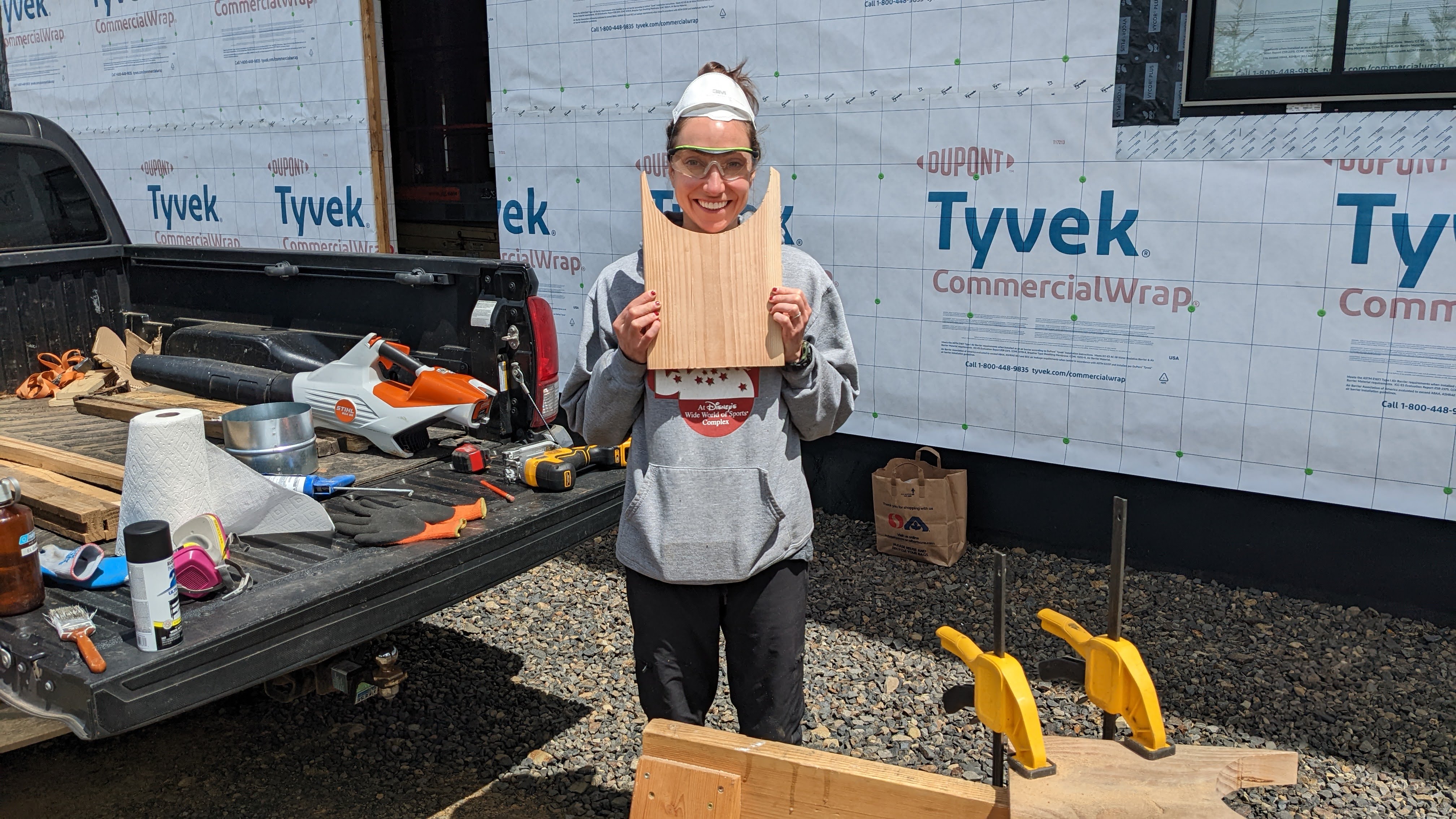 At this point you might be wondering if the outside of the building looks like swiss cheese. It doesn’t. I hid the chainsaws, so Sam had to use the small jigsaw. He cut perfectly round holes.