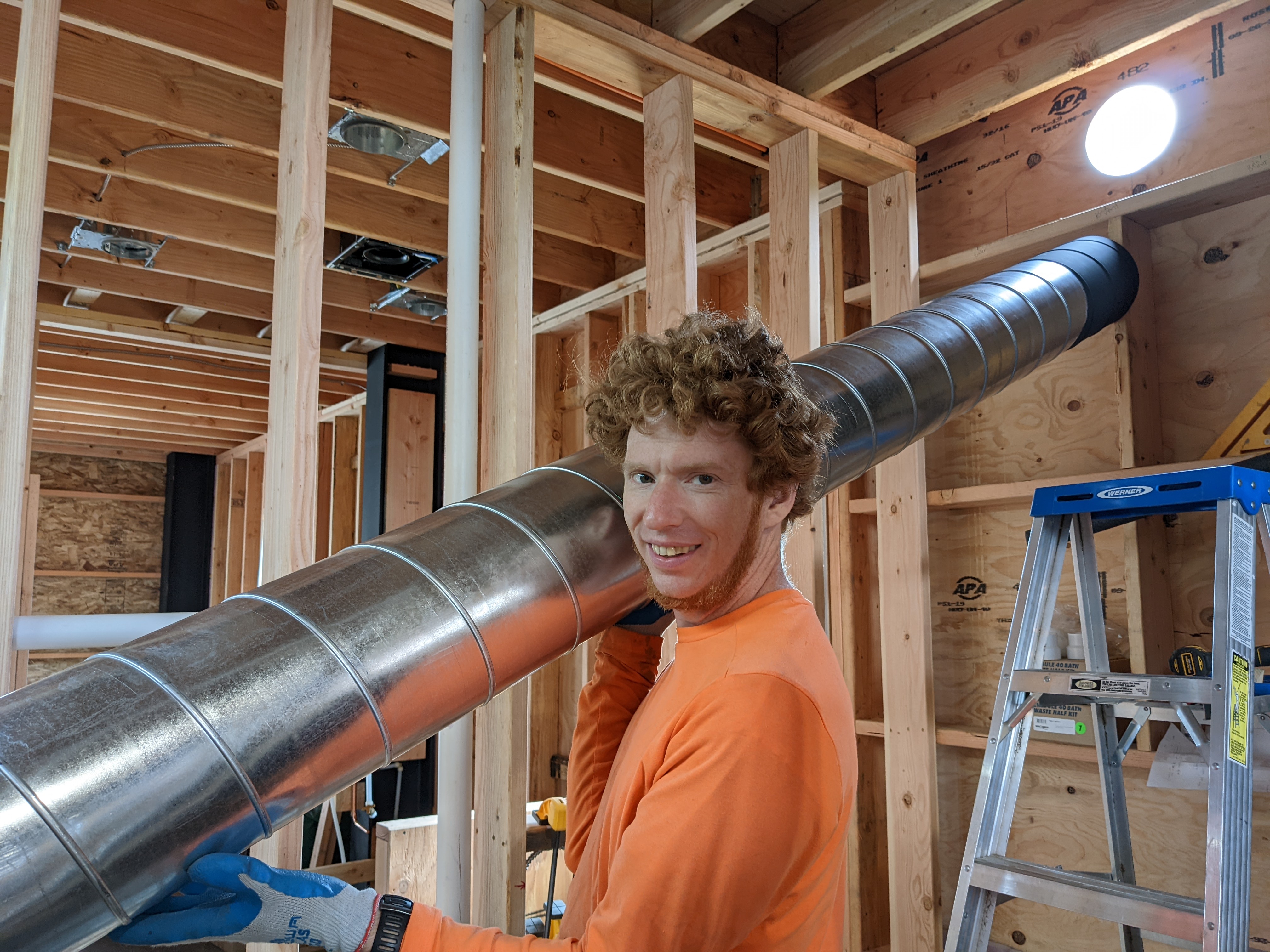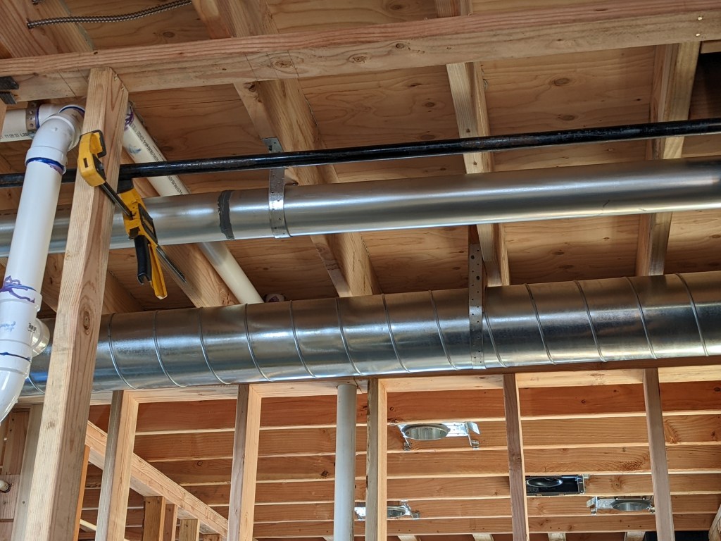 The largest duct is the exhaust duct for the range hood in the kitchen. It was also a little more complicated since it had to travel through more walls and make more turns to get outside.