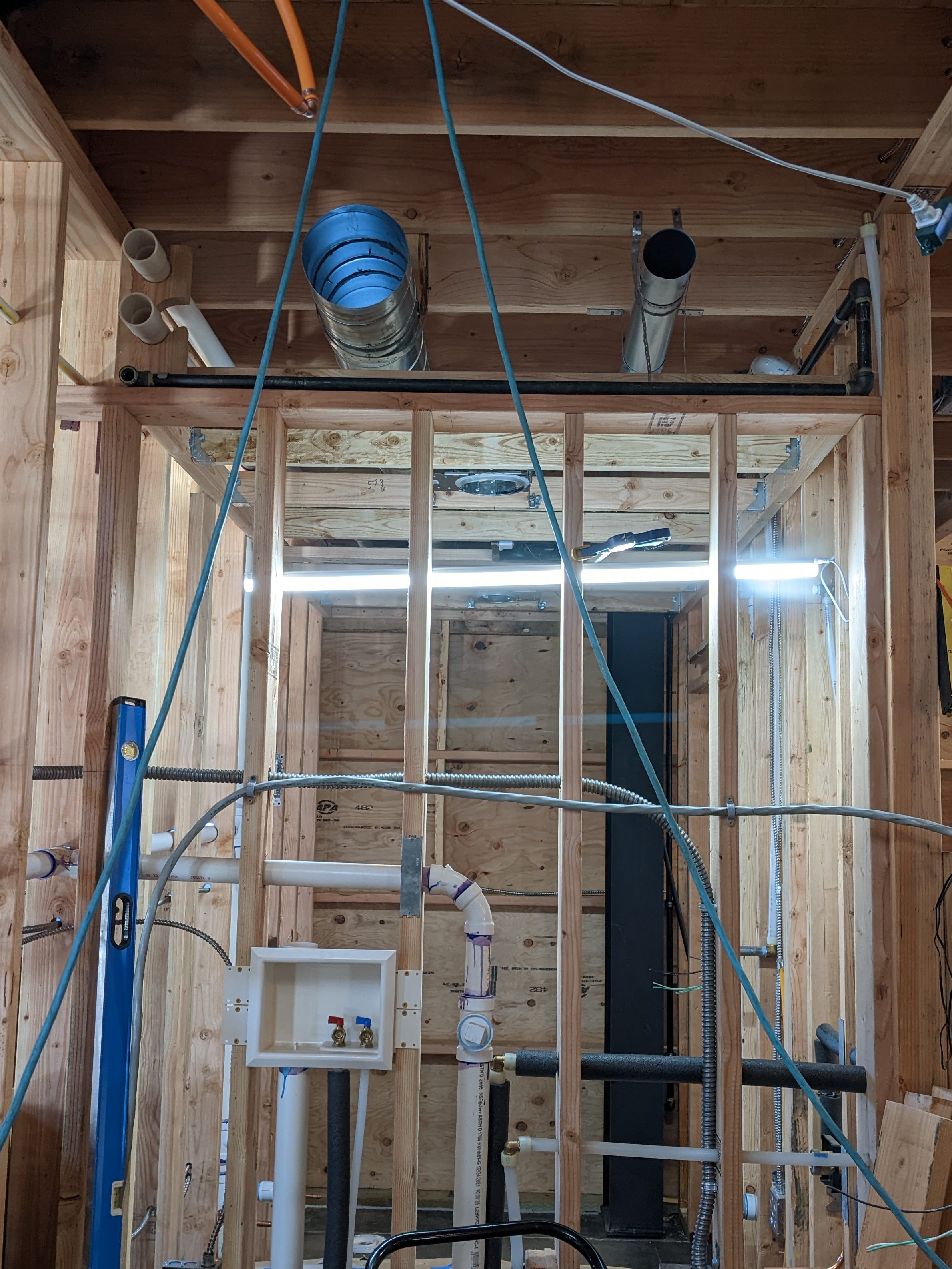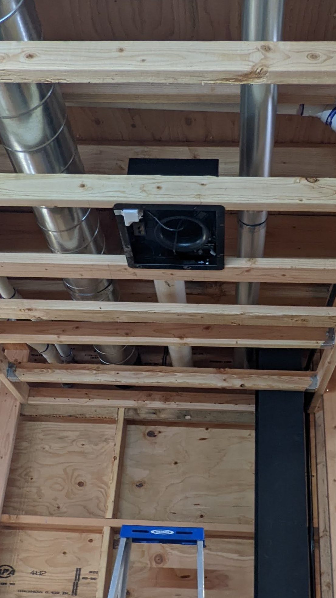 The fun doesn’t end there. Many of you probably aren’t familiar with the new building code requirements for intake air and venting. I certainly wasn’t keeping up with that sort of news. When things like the kitchen or bathroom fans run, the lost air in the room needs to be replaced to maintain the indoor air pressure. In the good old days, outside air made its way in through little leaks around doors, windows, vents, etc, and no additional action was required. The new code requires doors and windows to be 100% sealed (for energy efficieny), making it necessary to install a fancy air intake system.