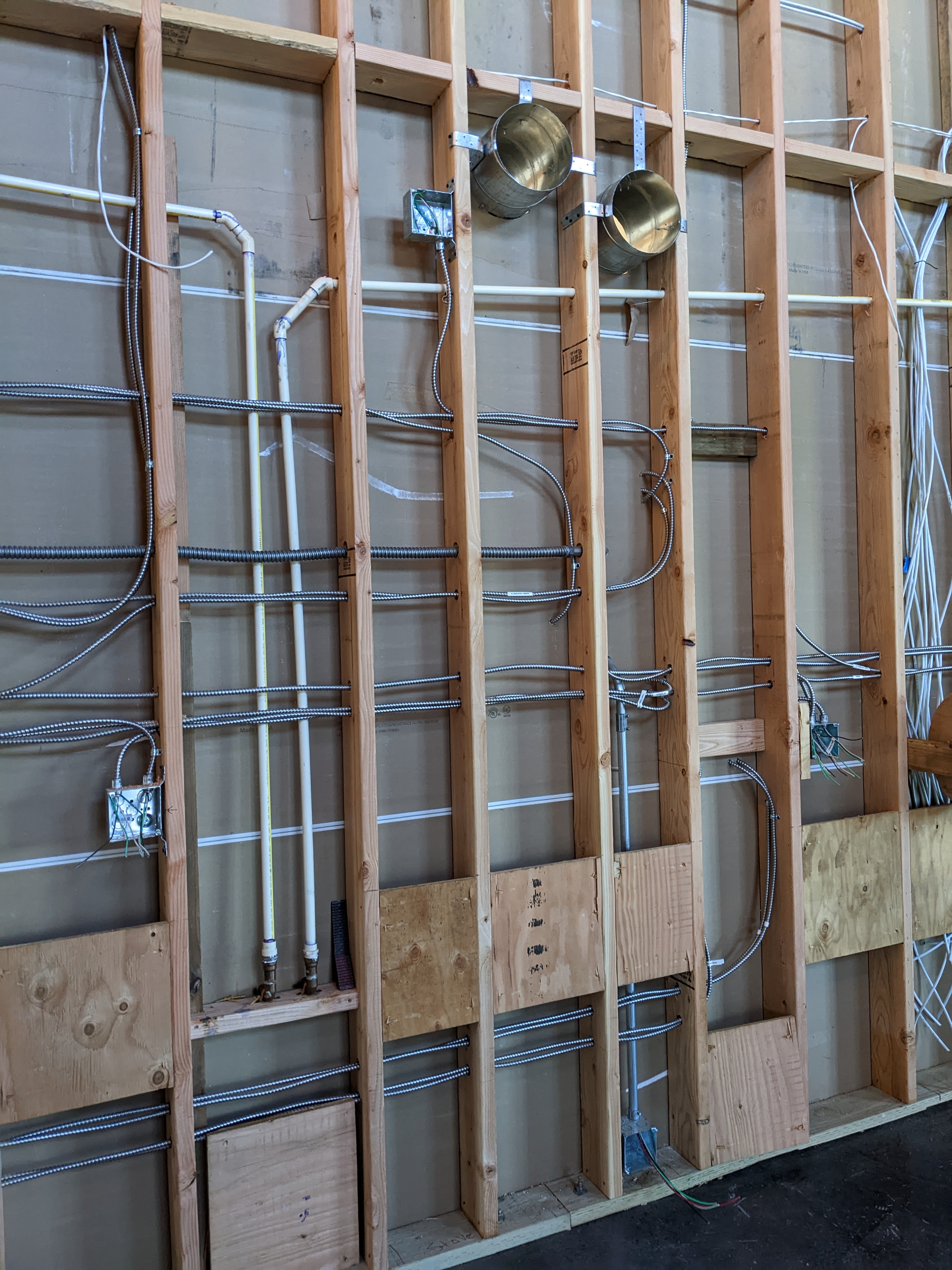 The county leaves it up to the homeowner to design their air intake system. Sam racked his brain trying to come up with a simple design and control system. In our case, there will be another large hole in the exterior wall (with a vent/screen cover of course). A motorized damper will open when the kitchen exhaust fan runs, letting outside air in, but will otherwise remain closed.