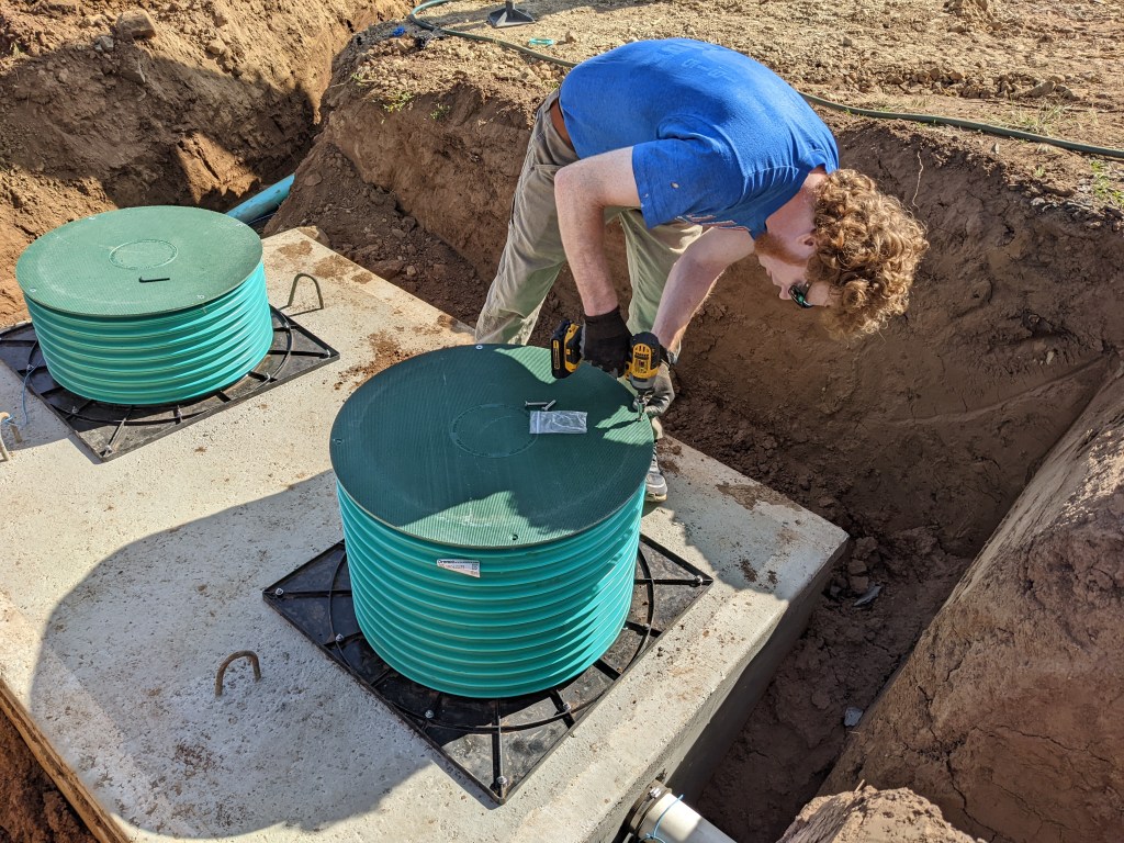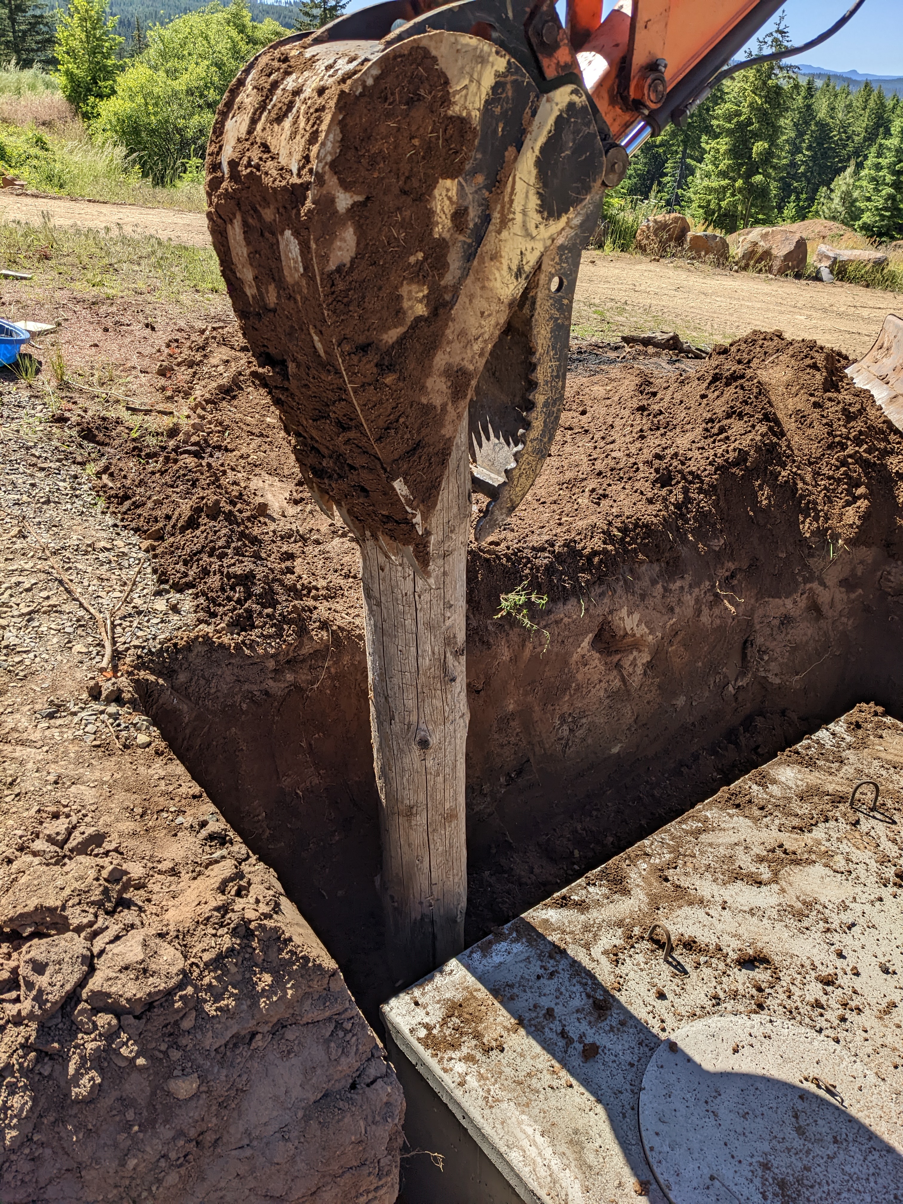 The process began over a year ago when the county approved the location of our drain field. They inspected test holes that Sam dug, evaluating the rock and soil composition for drainage. Then the county health department provided the requirements and helped design our septic system.