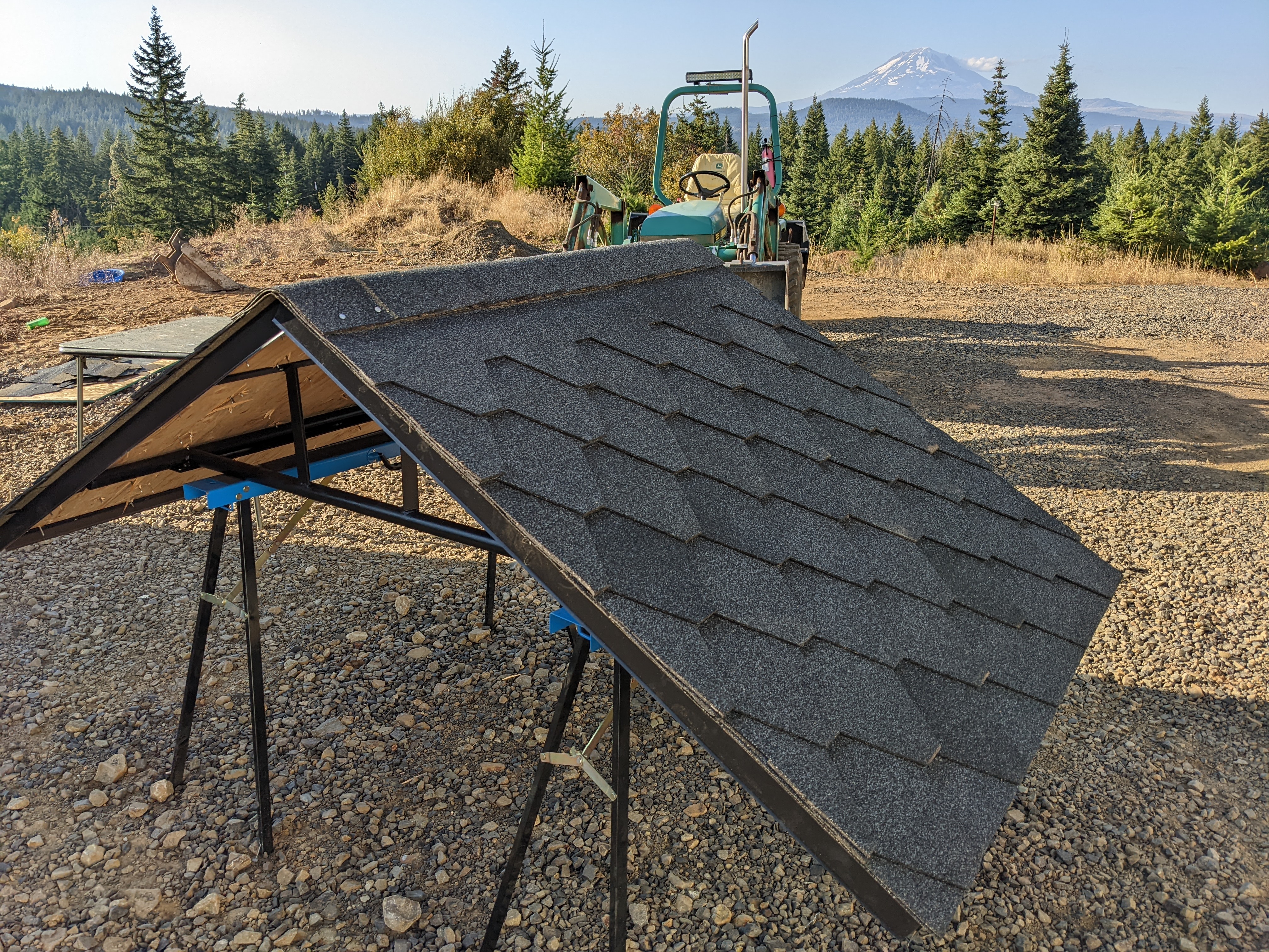 We already put more work into this project than anticipated, so why stop there? We put a roof on it for extra protection. We covered it with some leftover shingles. No one has ever installed shingles before, but it looked professional!