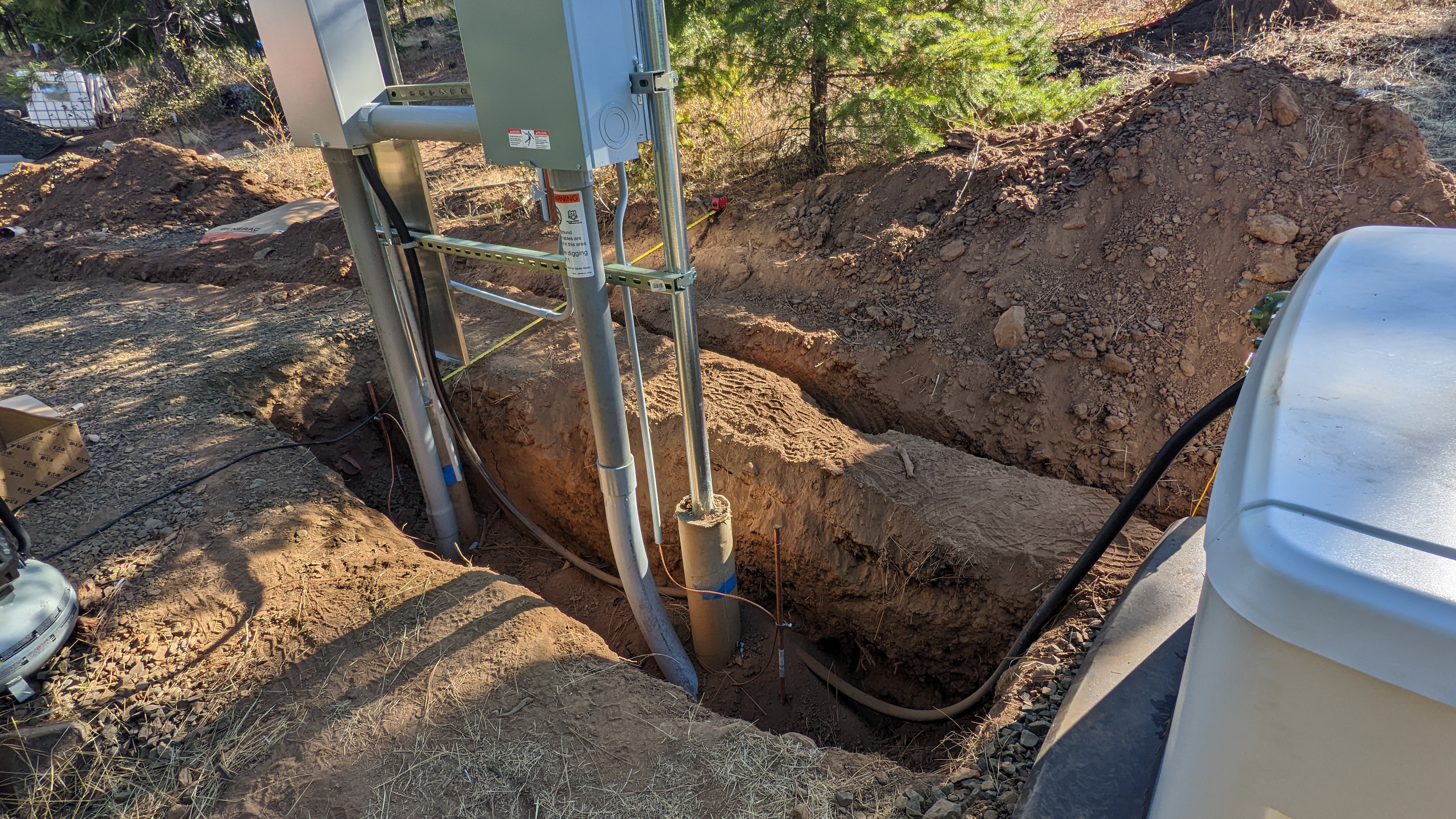 The work on our side was all done! All panels were complete. We passed our final electrical inspection (after getting a second extension on our permit) and called the power company. Lastly, the power company ran power from the transformer to our new meter and disconnected the temporary meter.