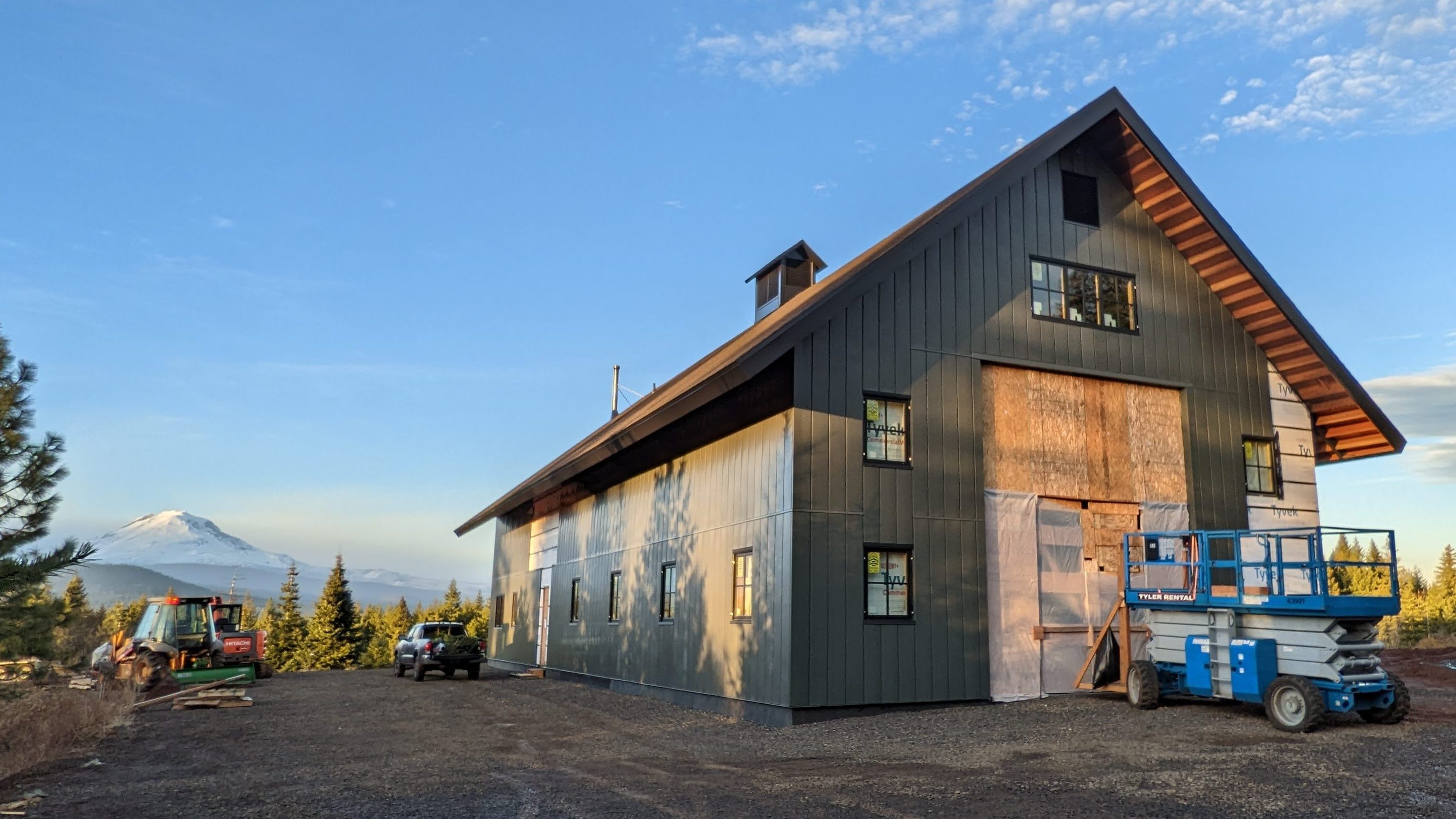 We couldn’t slow down though. In addition to peeling, Steve and I punched the panels at the appropriate fastener locations and delivered the prepped panels to Sam and Carlos, our new helper. Sam and Carlos spent all day outside on the scissor lift. They installed panels so quickly that Steve and I could barely keep up. Even with layout measurements and window trims to slow them down, we couldn’t strip panels fast enough. The bottom row was complete in no time!