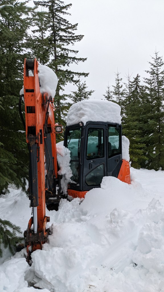 Is heat! We thought we had a few more weeks to finish the remaining utility work, but the snow arrived early.