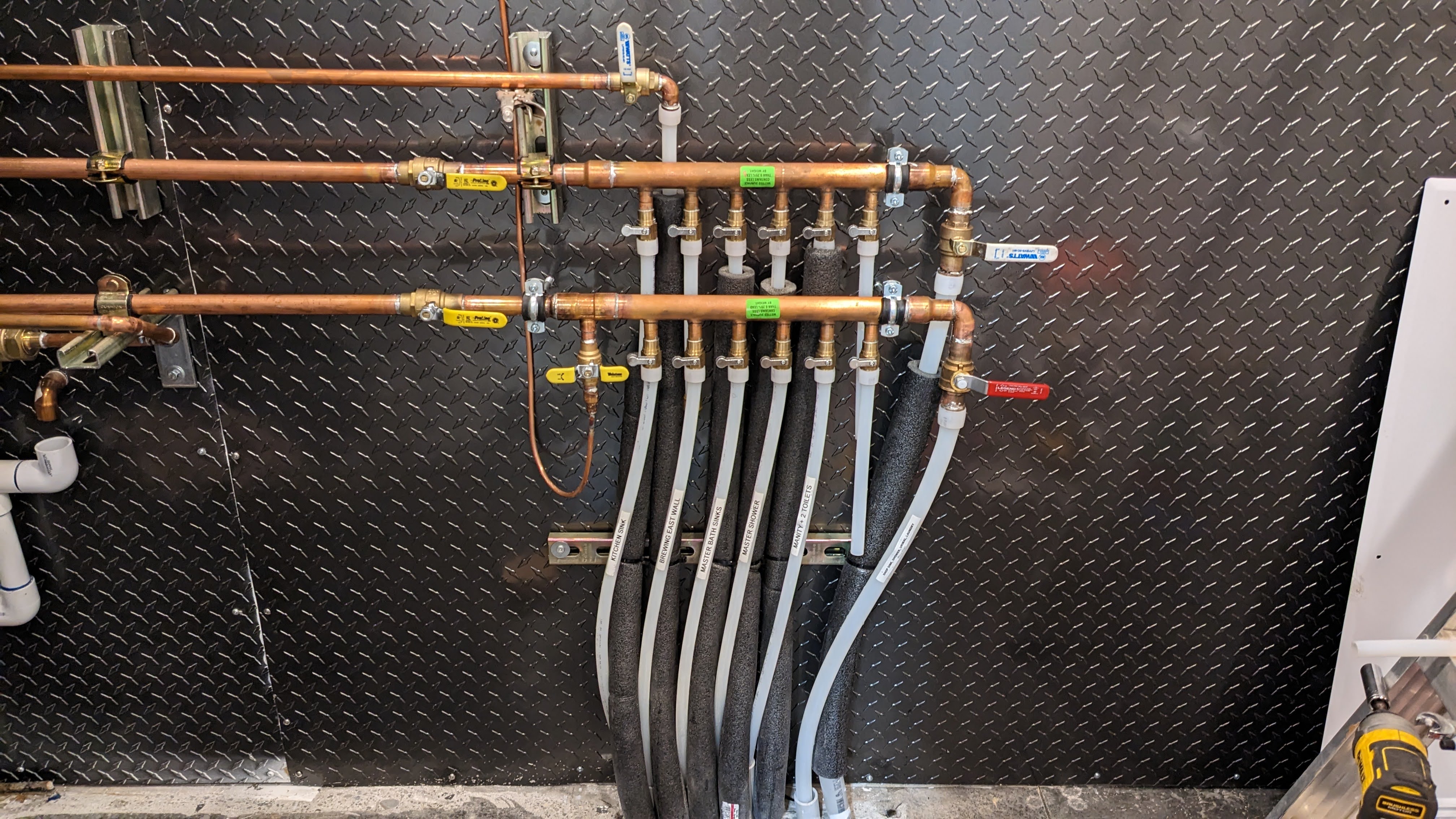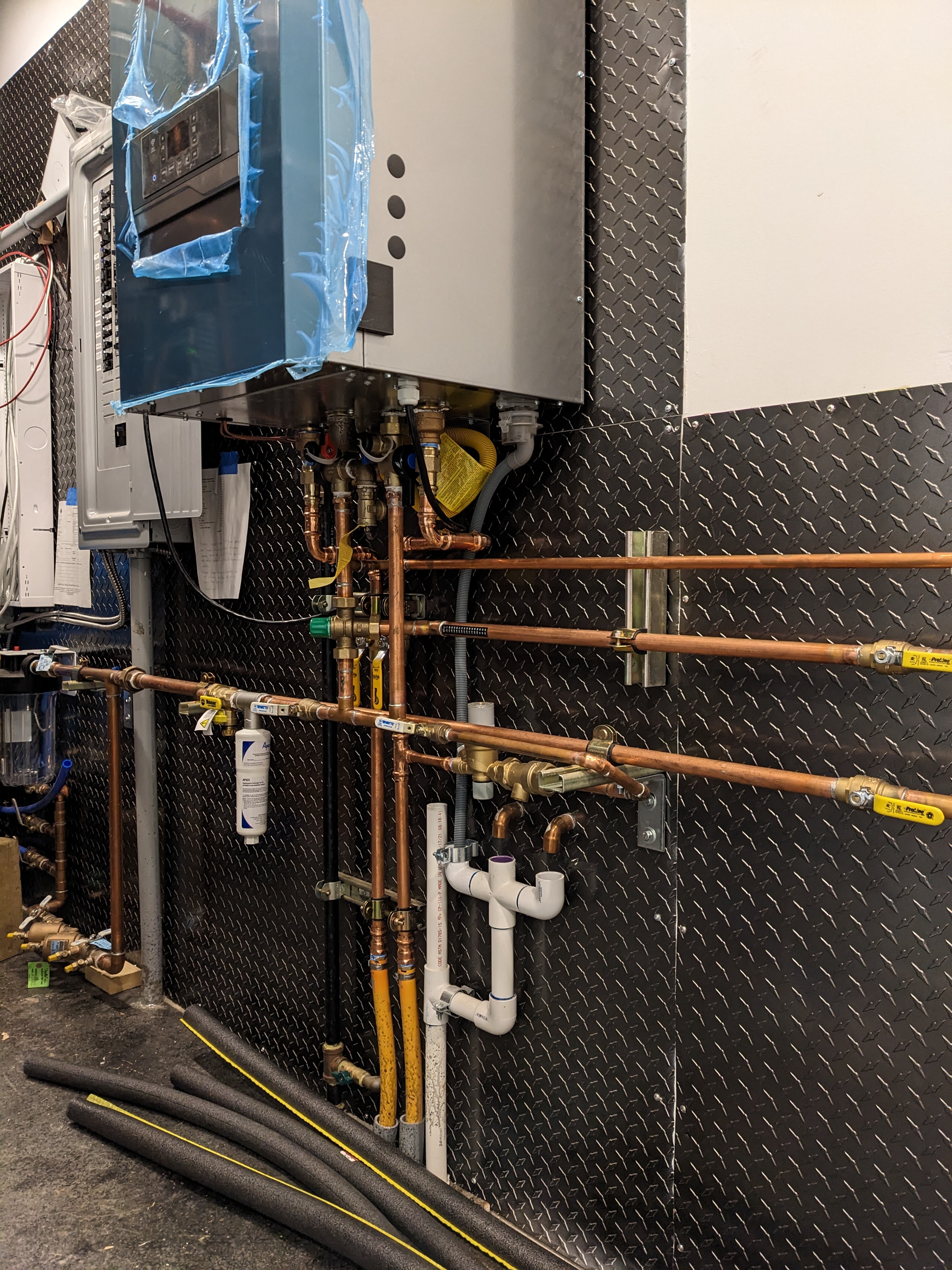 Sam and had already done a lot of plumbing work in the mechanical room. He spent days designing the plumbing system. After a dozen online orders from Supply House, and many trips to the Gorge Rebuild-It Center (where you can fill a small bag with an assortment of copper fittings for $15!), Sam had all of the parts.
