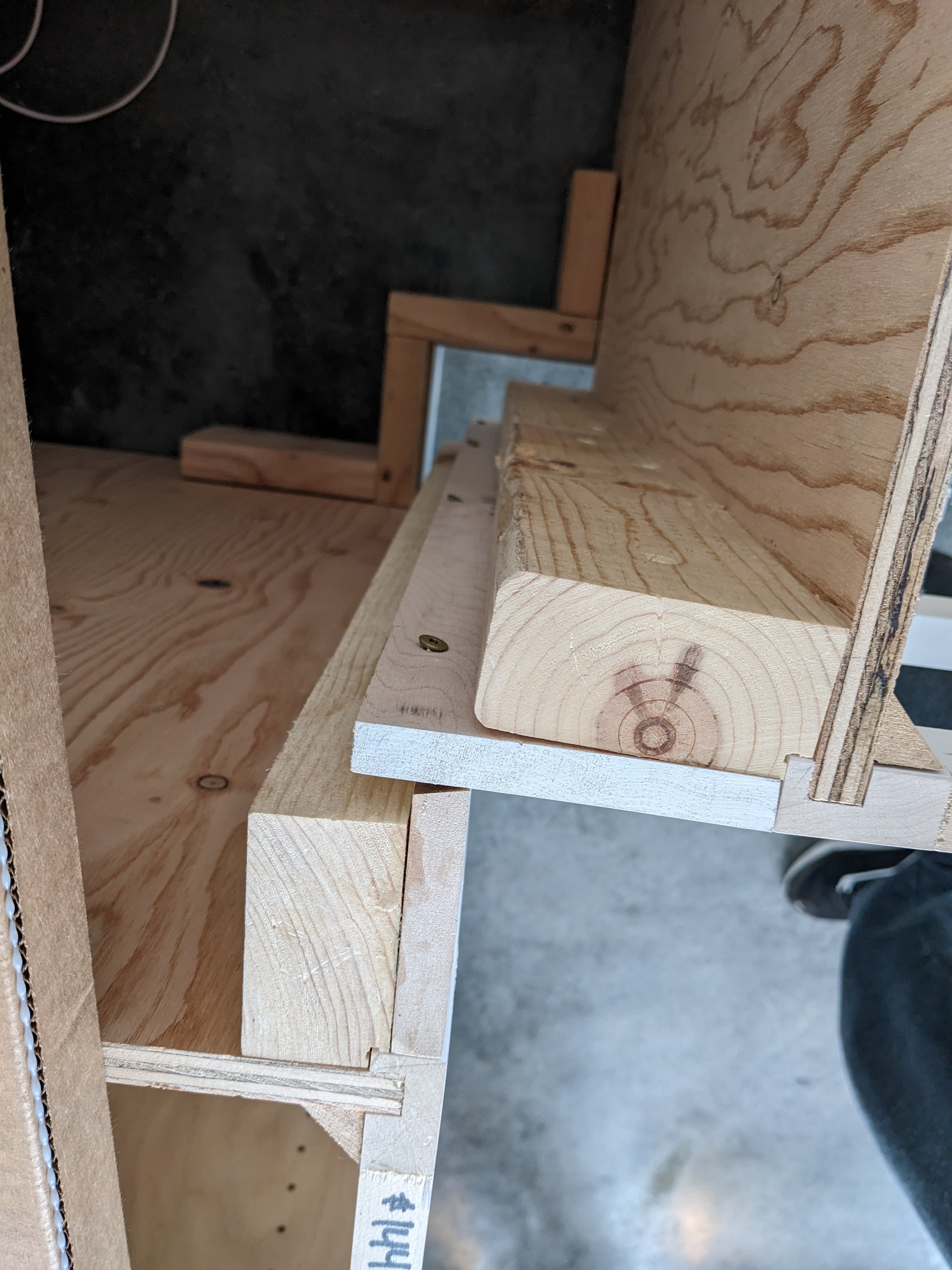 The cabinets could then be screwed into the blocks. But first, more shimming.