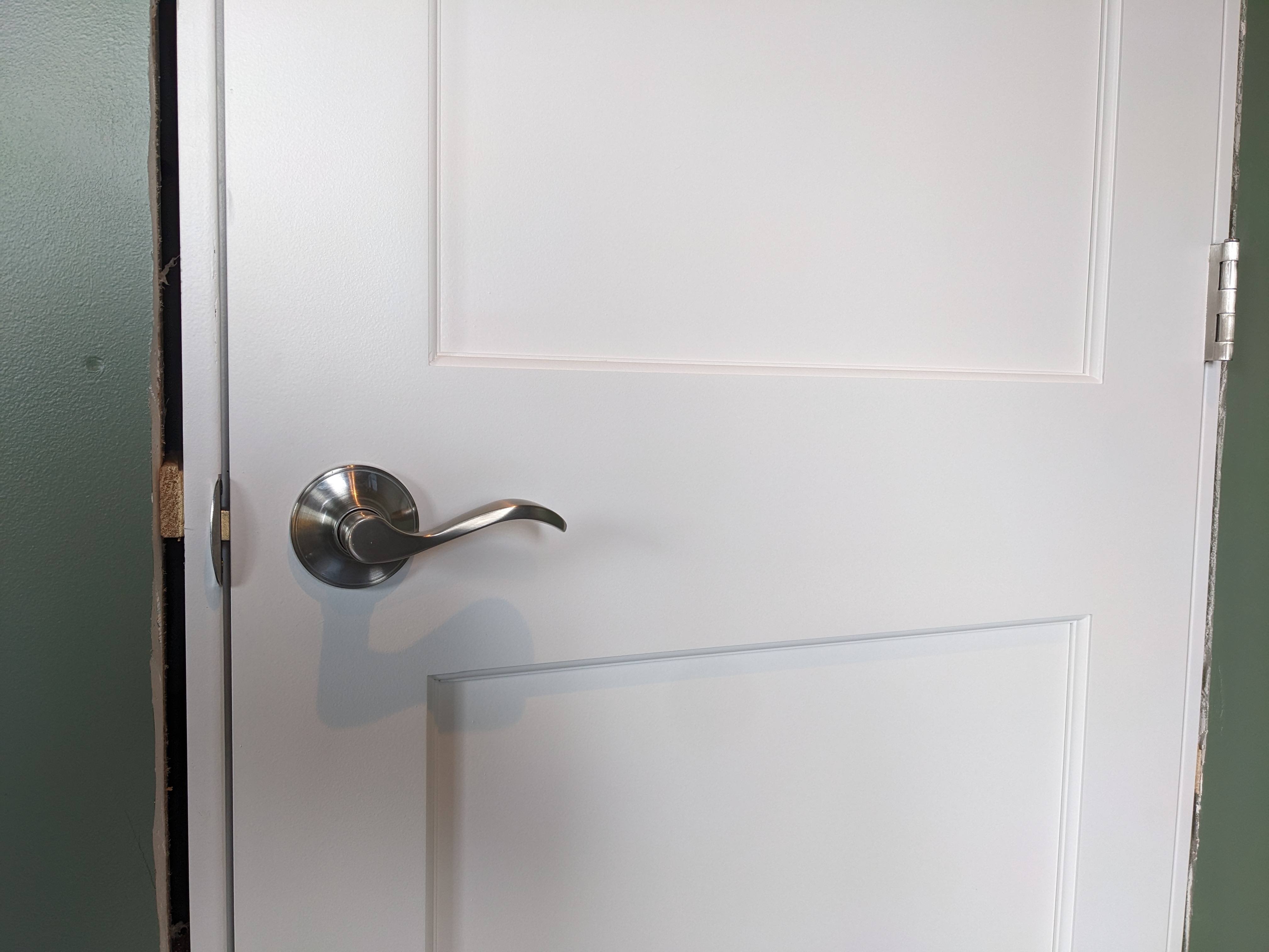 Plus, we needed the handles to be cat-proof. We try to keep the cats out of the living room when we’re not in there. Buster often breaks on through to the other side, so we have to keep the door locked all the time.