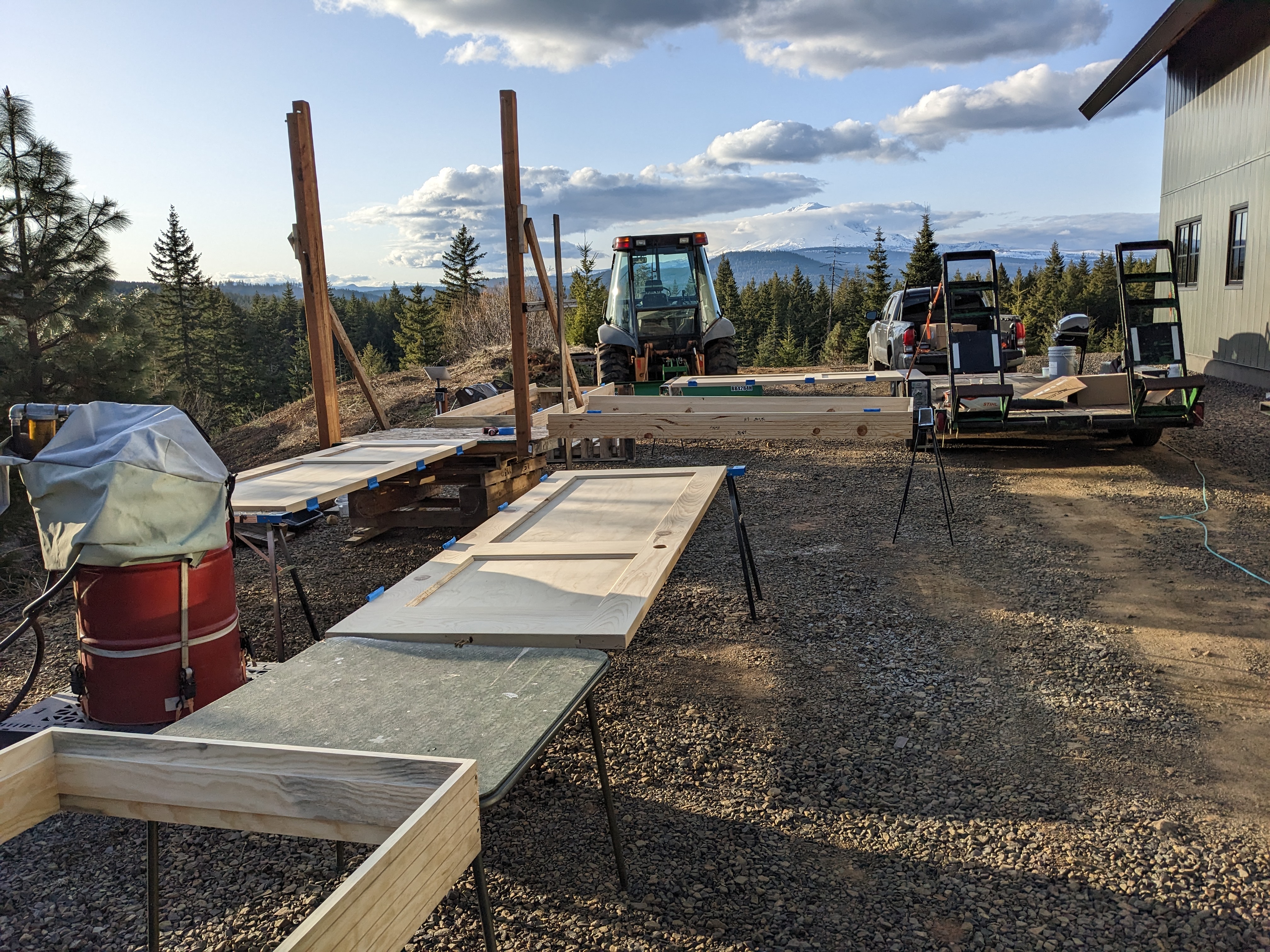 Just two weeks later, Bob finished the doors! We were waiting for the sun to pick them up. It was either snowing near us or raining in Portland every single day. Alas, a break in the weather! We got our doors! We even caught a glimpse of spring in the city.