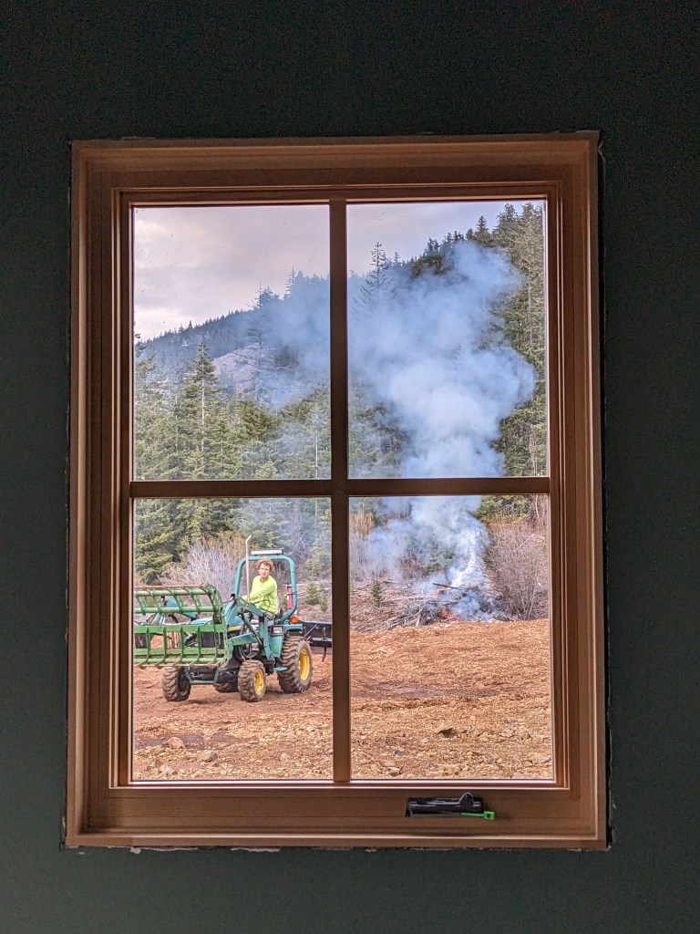 I think winter might be over. Things dried out more over the week, and Sam lit our first big burn pile of the season.