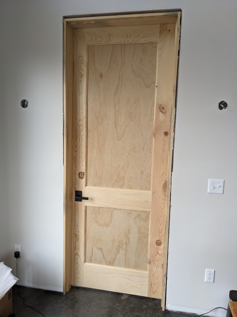 The door looks great though. We can’t install the other exterior doors until we work on the siding.