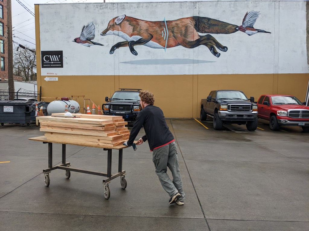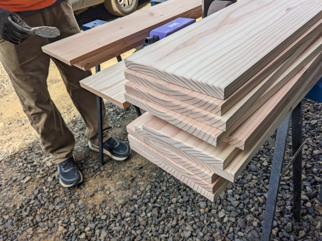 First of all, we saved a lot of prep work by taking our rough cut fir boards to “Creative Woodworking” in Portland.