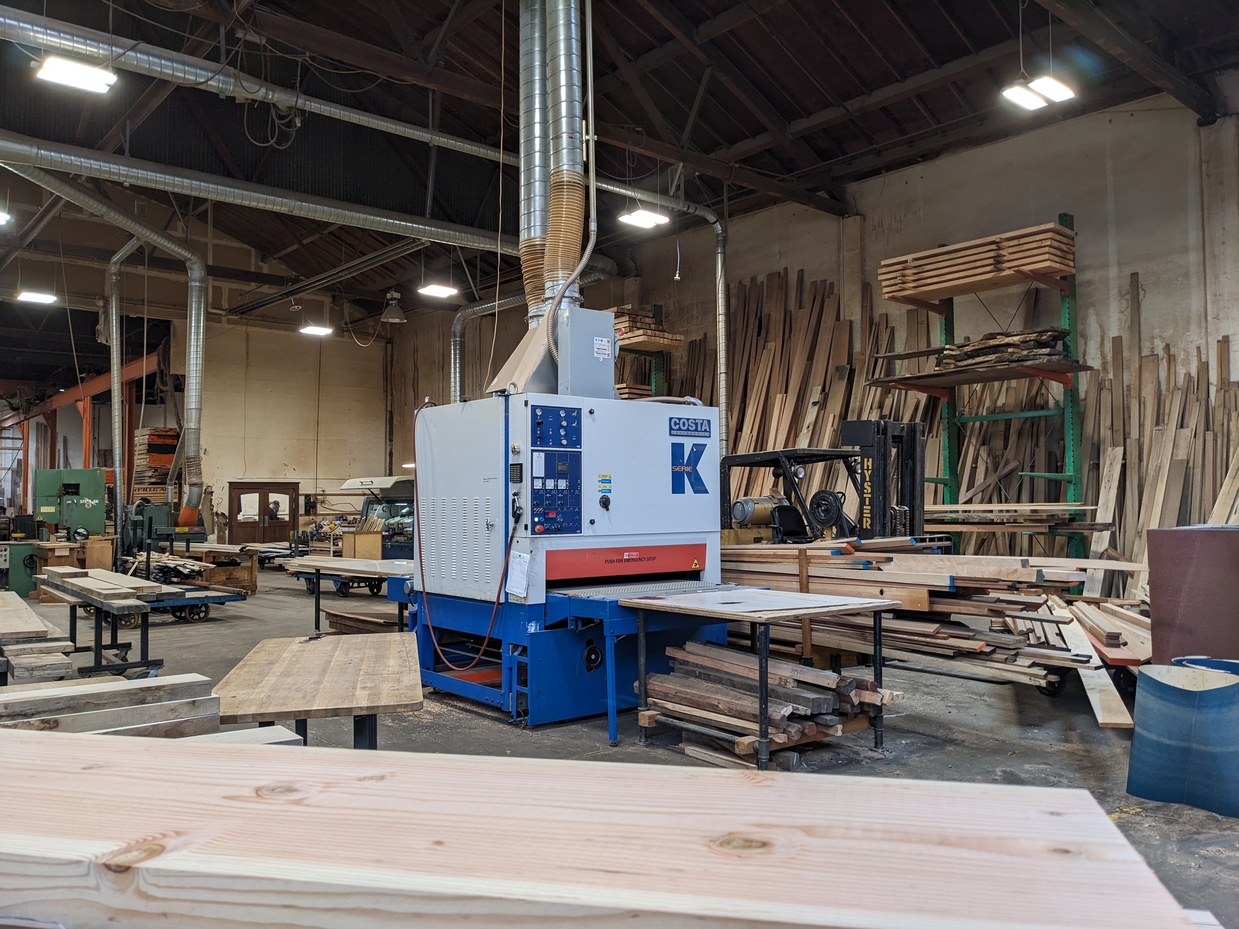 They have a 16″ wide jointer, whereas we only have a 6″ one. They also have a very fast and experienced employee operating the jointer. He processed all of our boards in minutes.