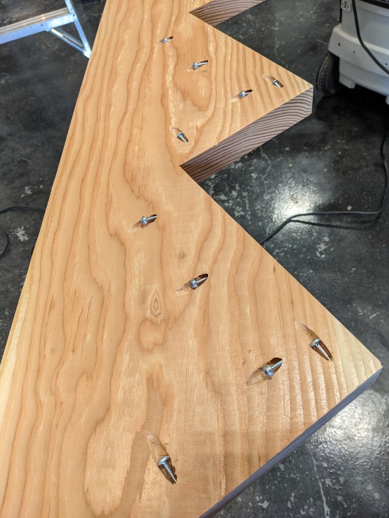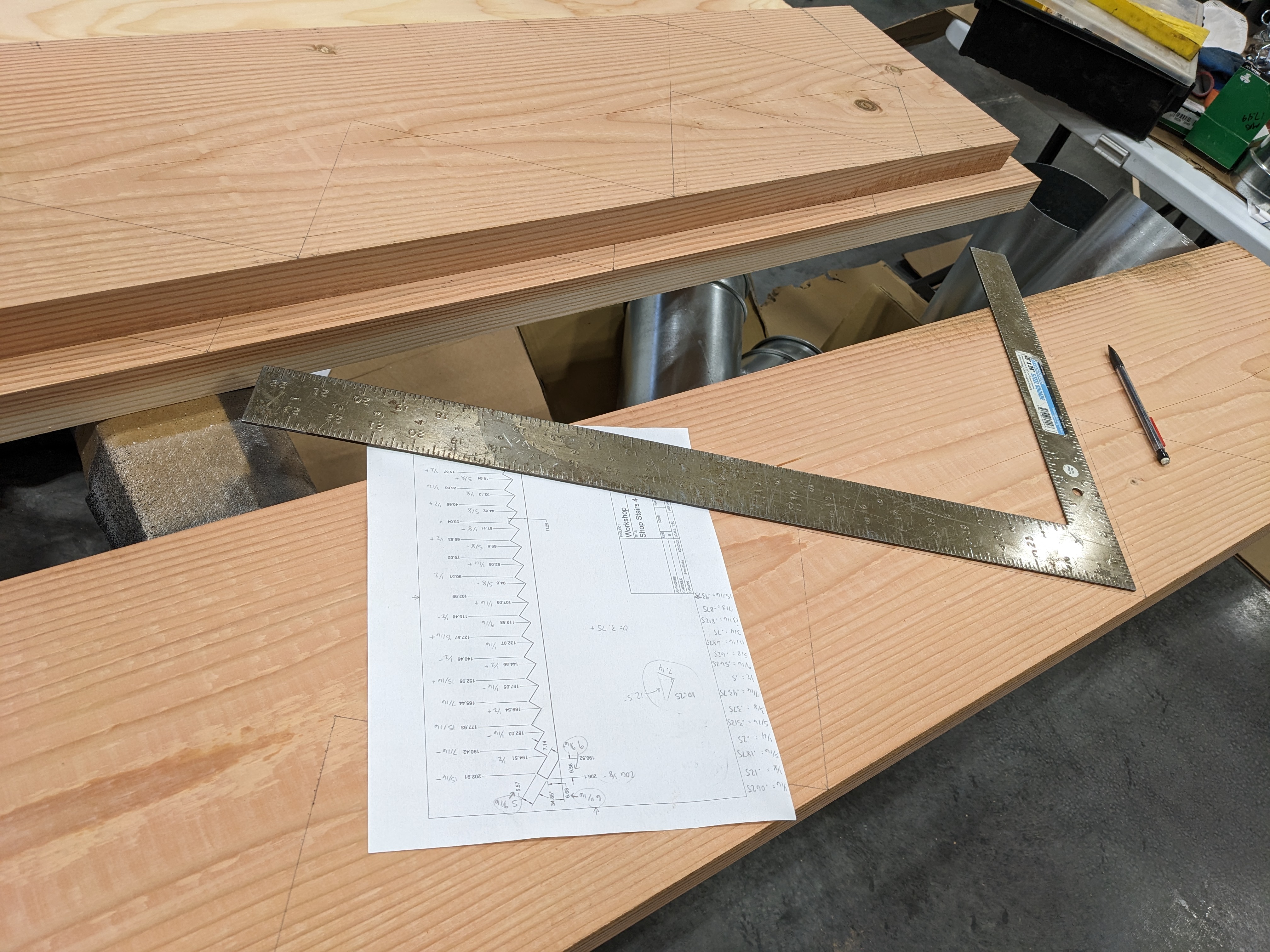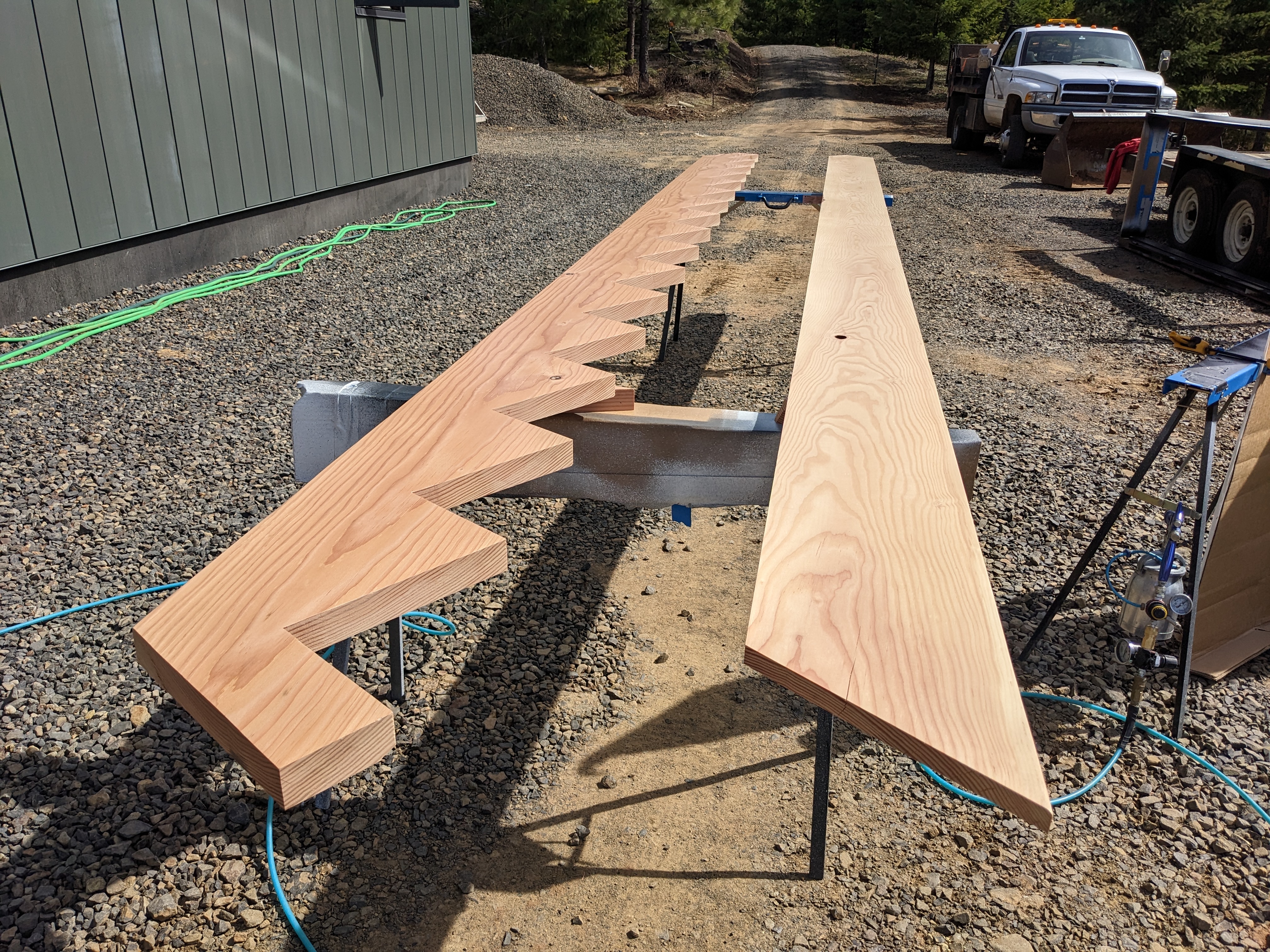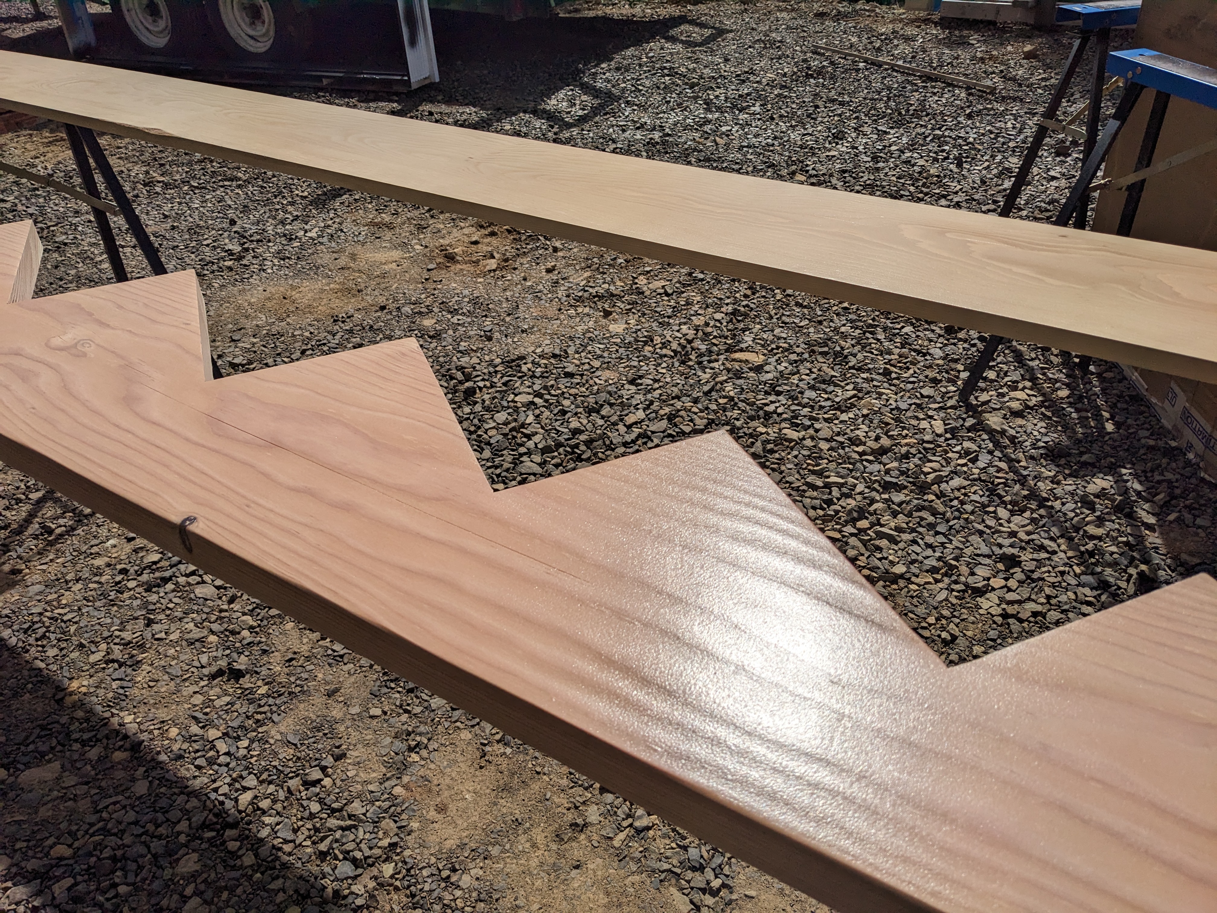 In addition to process improvements, we improved upon cutting accuracy. I measured and drew the zig zag pattern on each stringer rather than tracing the pattern. This led to a nicely matched set for the treads to lay across.