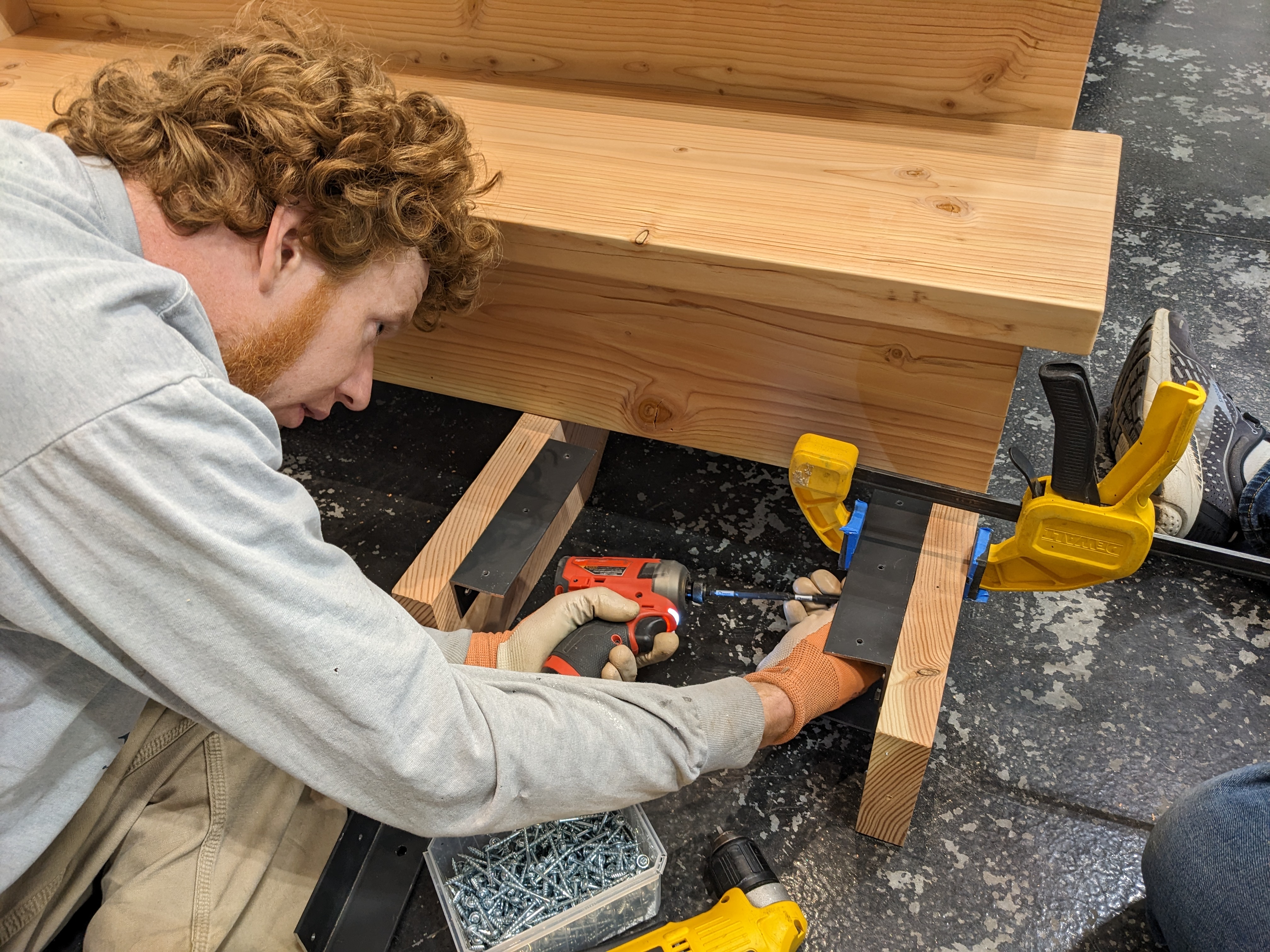 Steve and Sam applied a thick batter of glue before clamping and screwing the parts together.