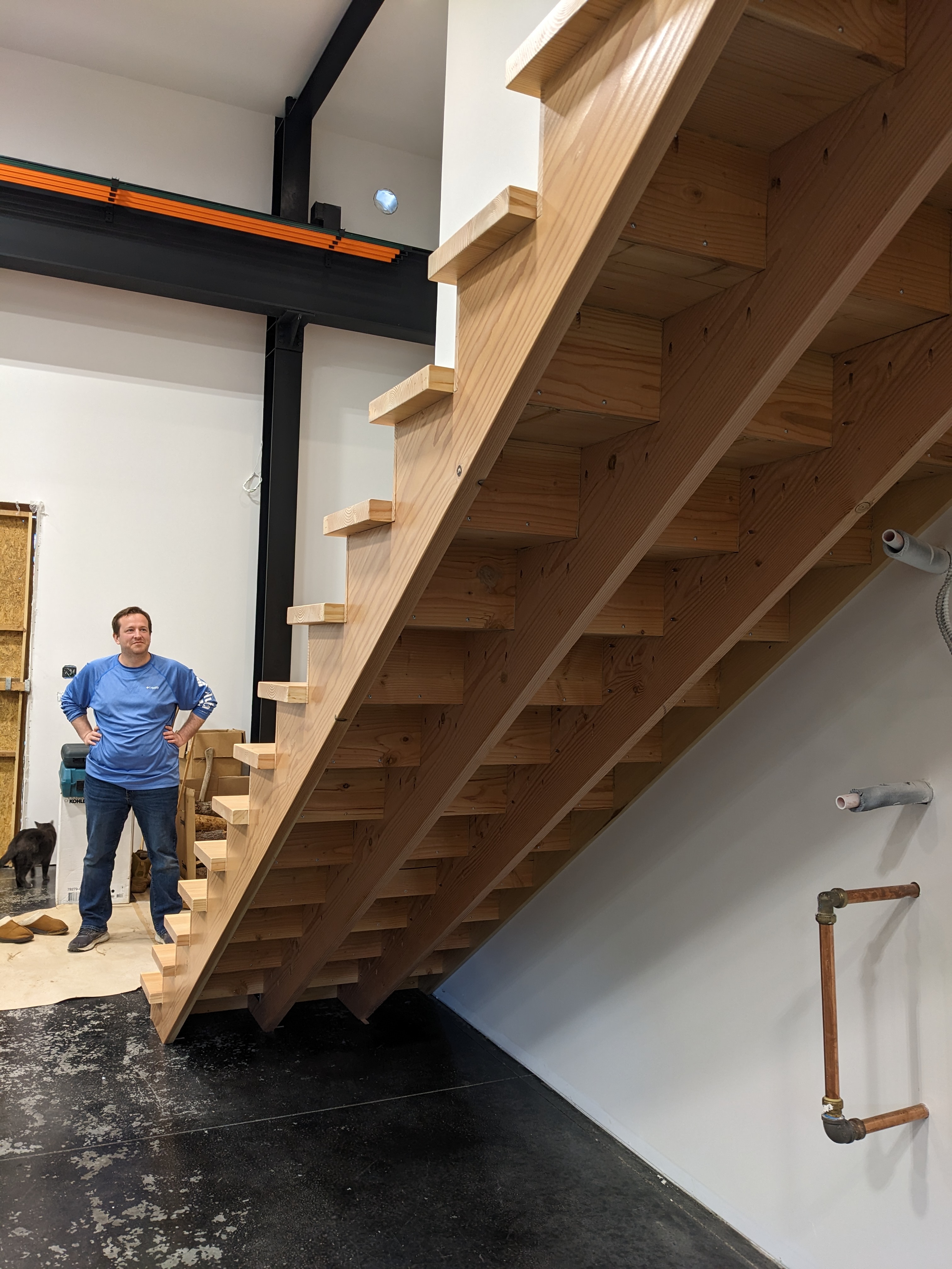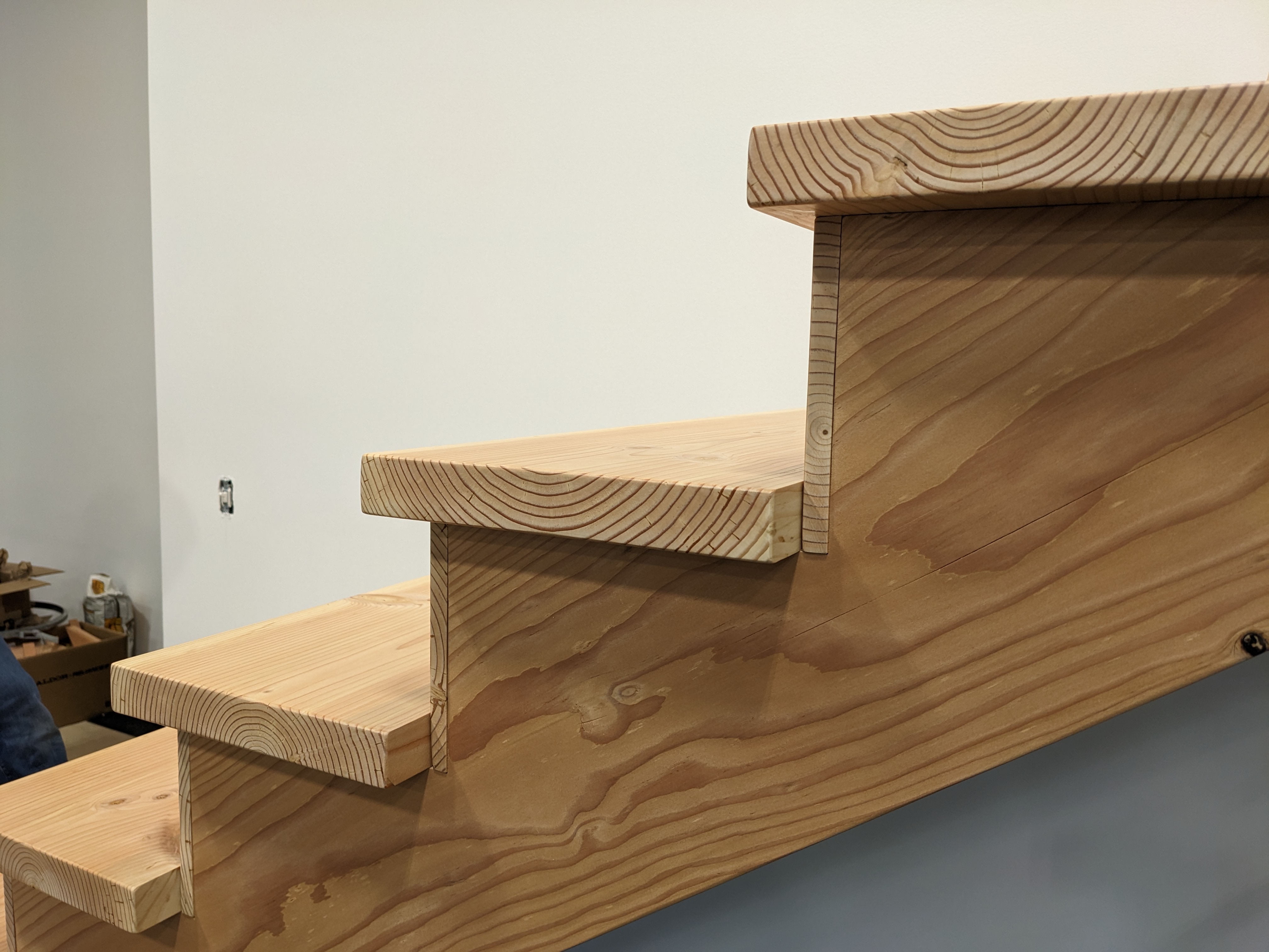Actually, the biggest improvements were due to lessons learned from our first attempt at building stairs. Although a bit inconvenient, I’m glad we started with the attic stairs. The build quality is much better on the main staircase. One might say it is a step above the attic staircase.