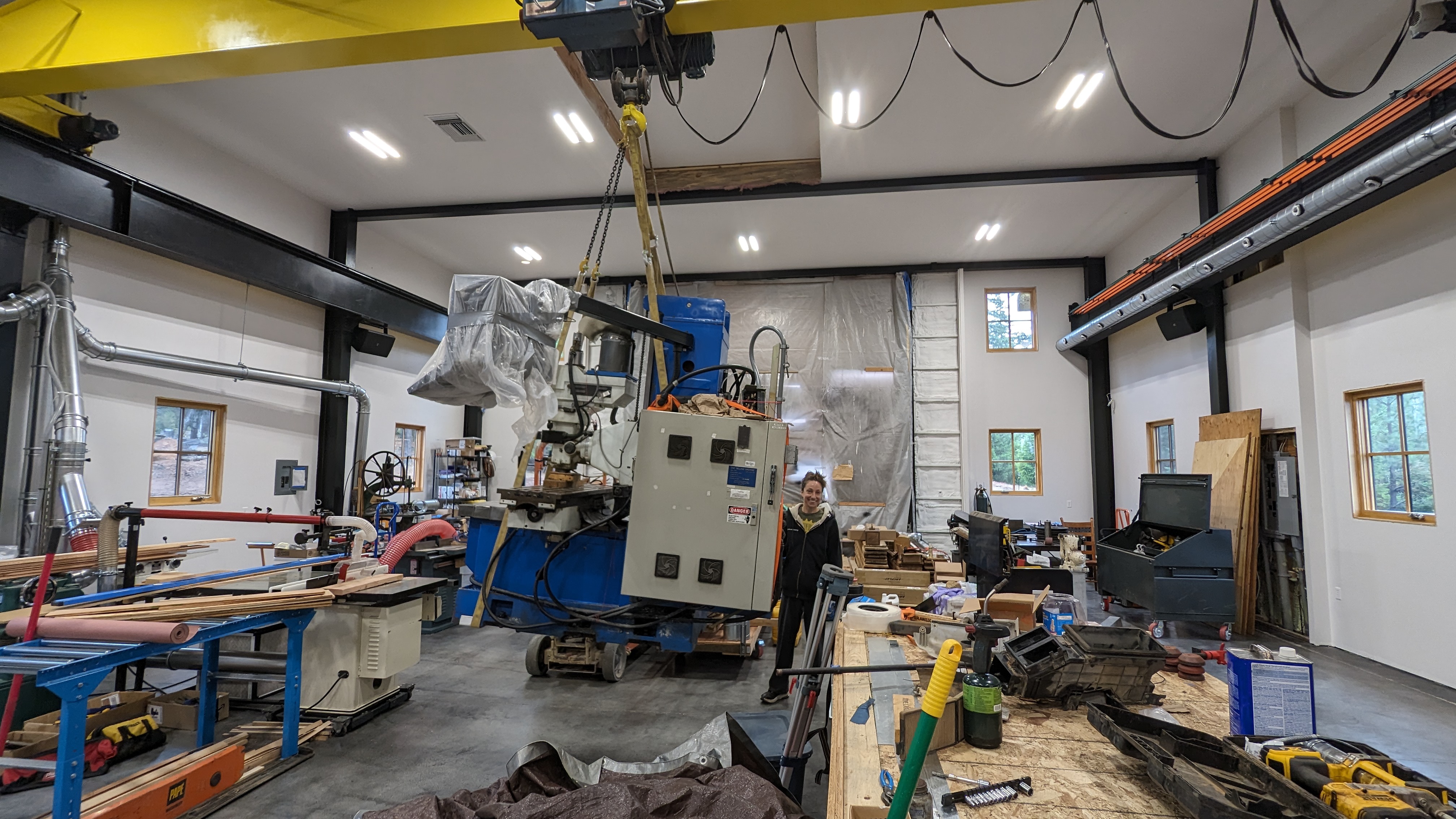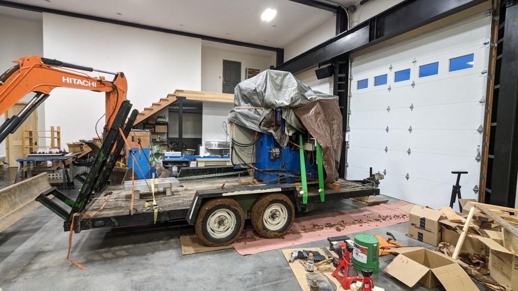 We had to wait another day for someone to bring a big forklift to load the CNC onto our trailer. Weighing in around 6000 lbs, the CNC was too heavy for the little forklift that was on-site. The whole move went very well considering how sketchy it seemed, and we made it back safely to our shop.