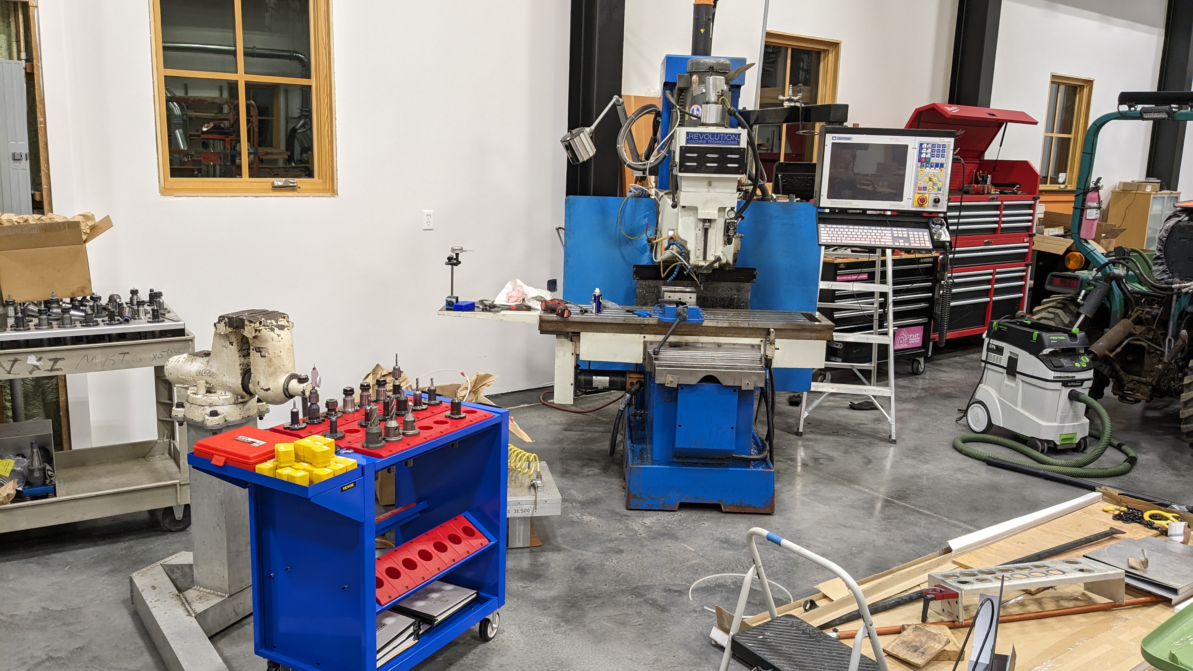 Sam grew bored of pachinko and needed a bigger toy. He found a used CNC mill at a Portland tech company that was closing. Before we went to look at the $9K relic, Sam got some negotiation advice from a friend- “if they aren’t offended by your offer, then you didn’t go low enough.” We drove to Portland with that in mind and left with the CNC and a cart load of tools for $3K! (Sadly, they weren’t offended.)