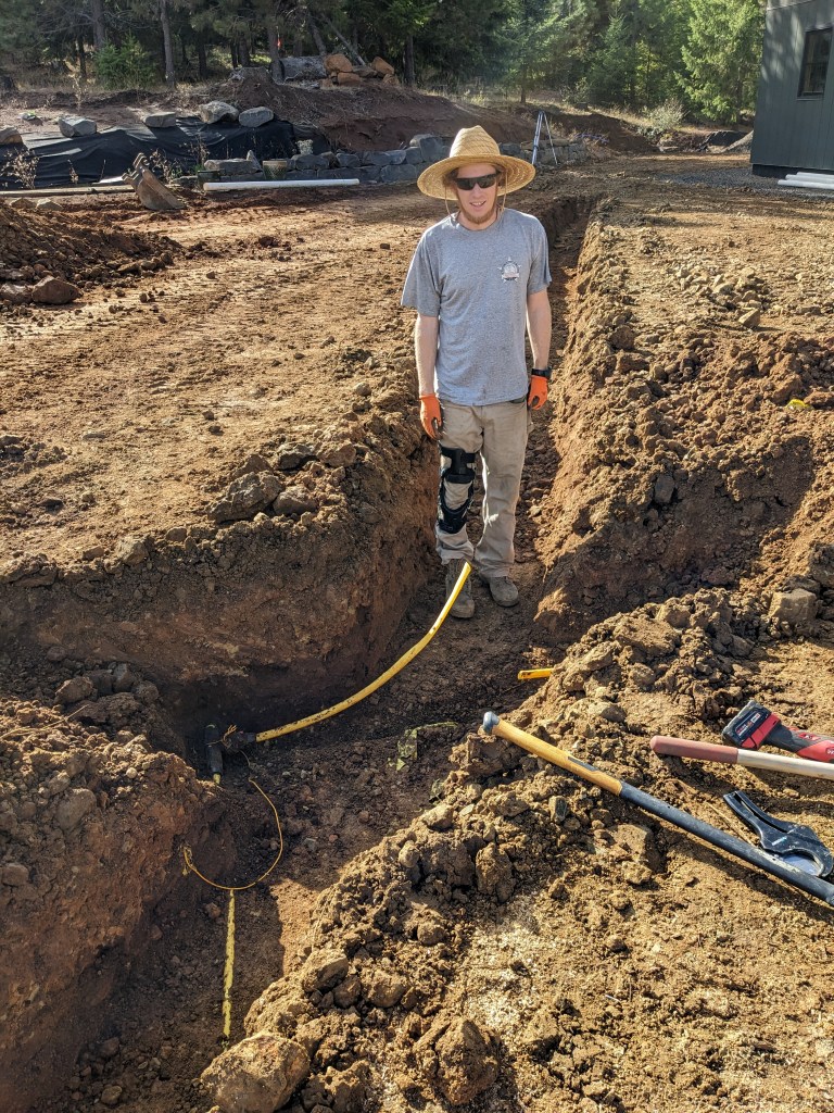 Unfortunately, work came to a halt when a propane line was hit. I was in the kitchen preparing lunch when Sam casually walked in to inform me that there would be no hot water for the day. No one thought to look through the photo album of buried pipe before digging…