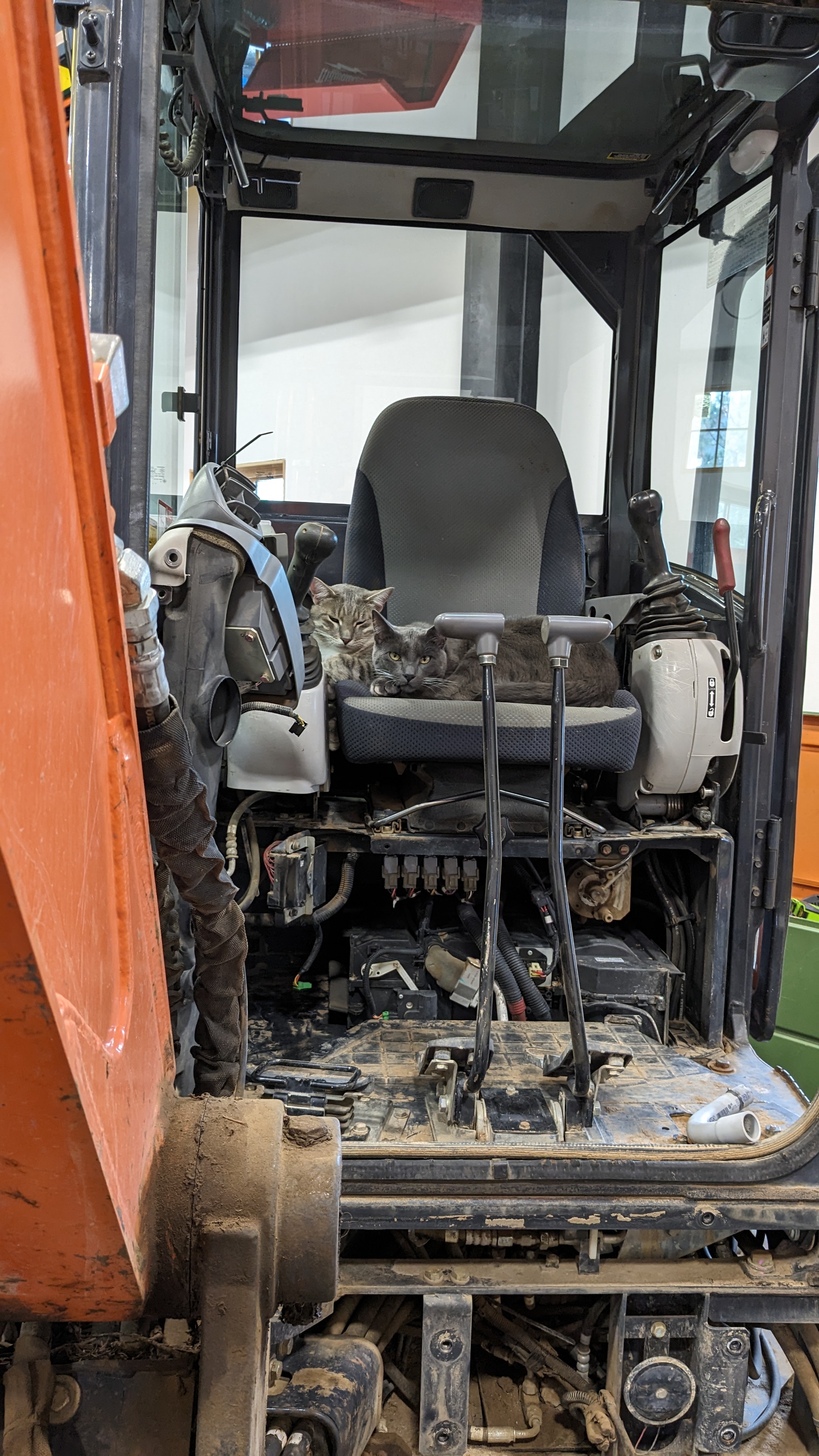 Before starting, Sam did some machine maintenance, including a full track replacement on the excavator. The rubber tracks were finally shot, so he ordered some new steel ones. They both have their advantages, but the steel tracks seemed more durable and appropriate for our typical forestry applications. And unlike rubber tracks, steel tracks don’t have a reputation of popping off easily while steering through mud. Sam has some experience with this, as we only use the excavator during the wetter half of the year (due to fire danger).