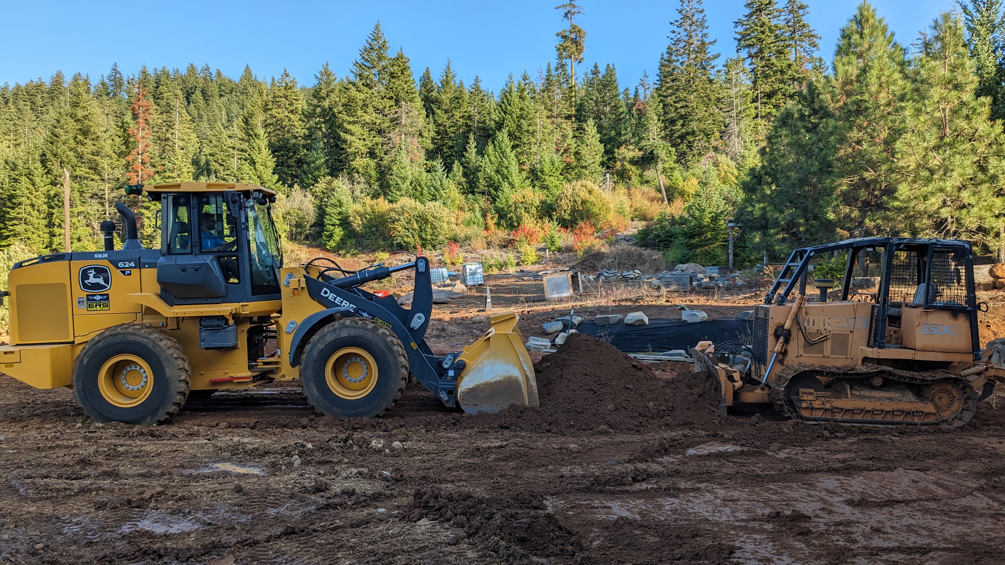 Normally, we could adjust our schedule around the weather if need be, but we had already reserved this John Deere 624P wheel loader for the week!