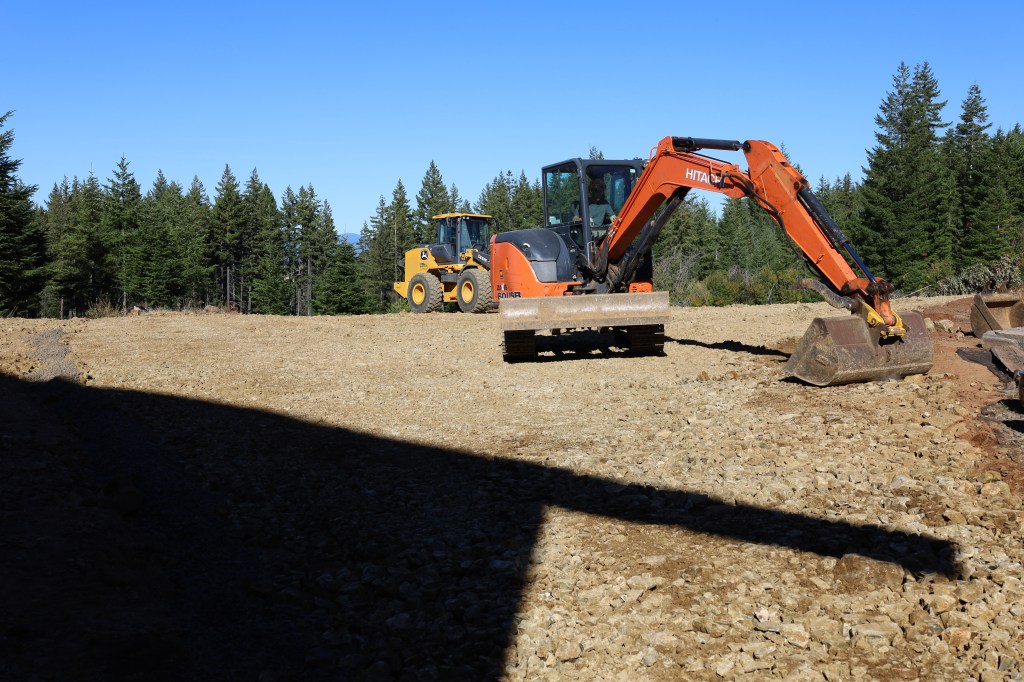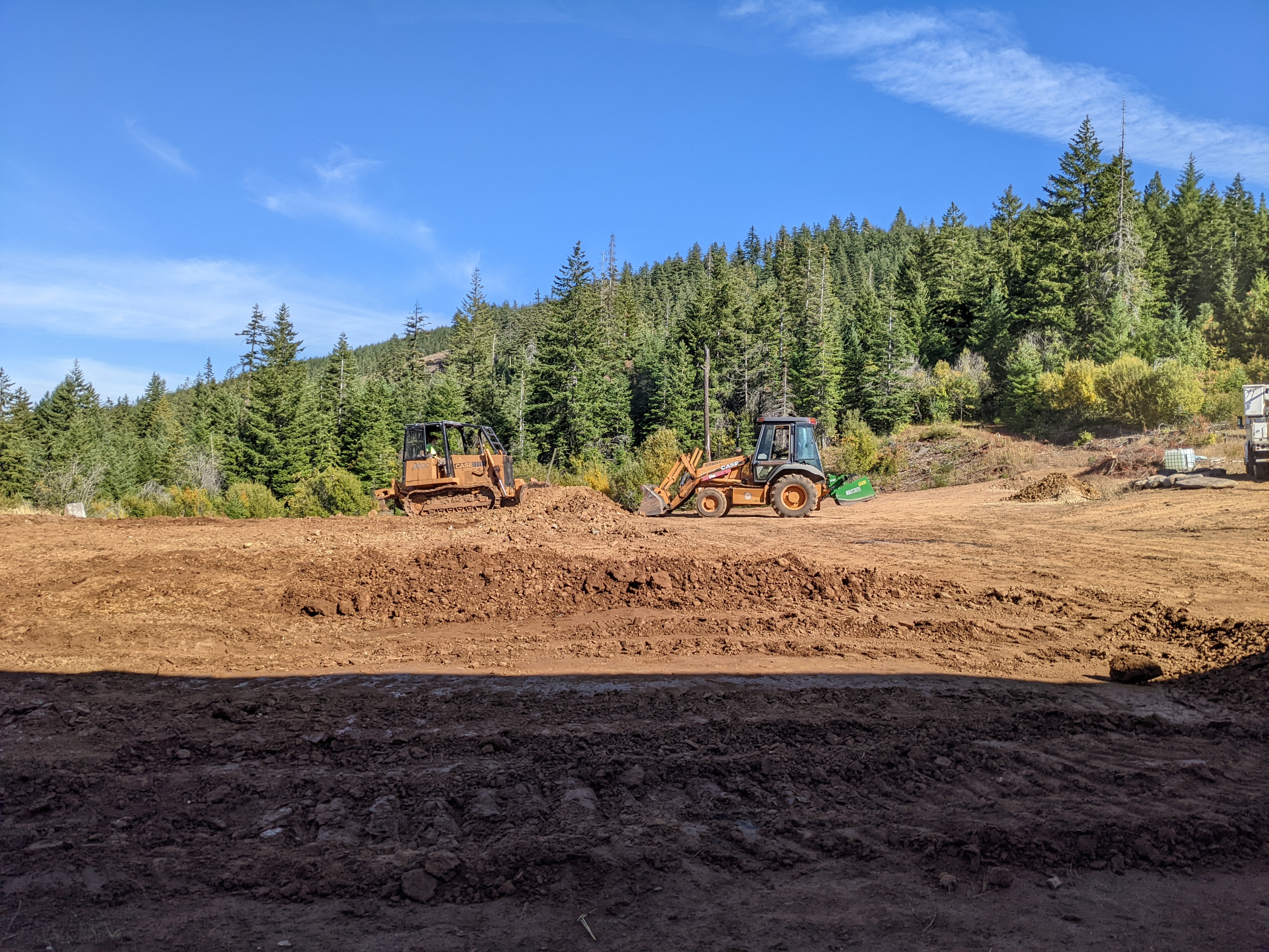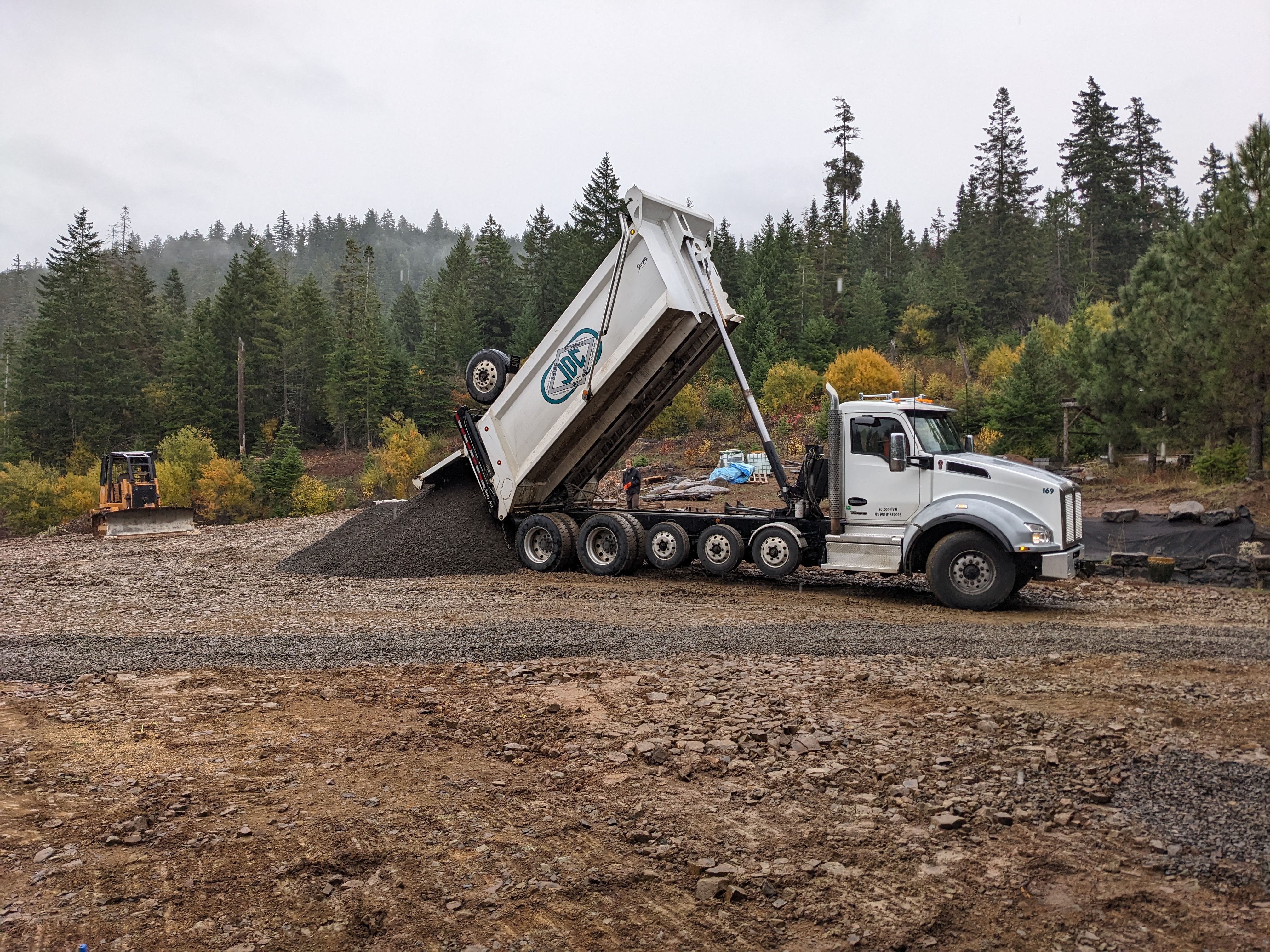 Steve quickly learned how to run the loader. He brought rock up from the pit via the new road and dumped it for Jackson to spread.