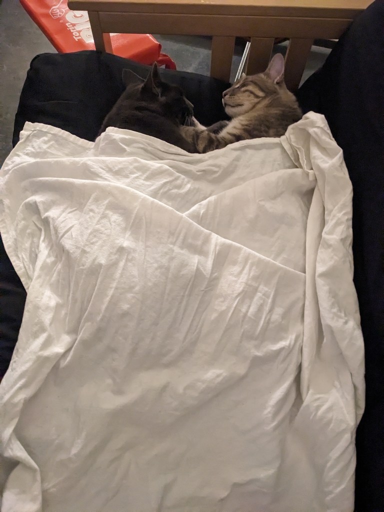 Everyone left after the weekend’s festivities, much to the cats’ relief.
