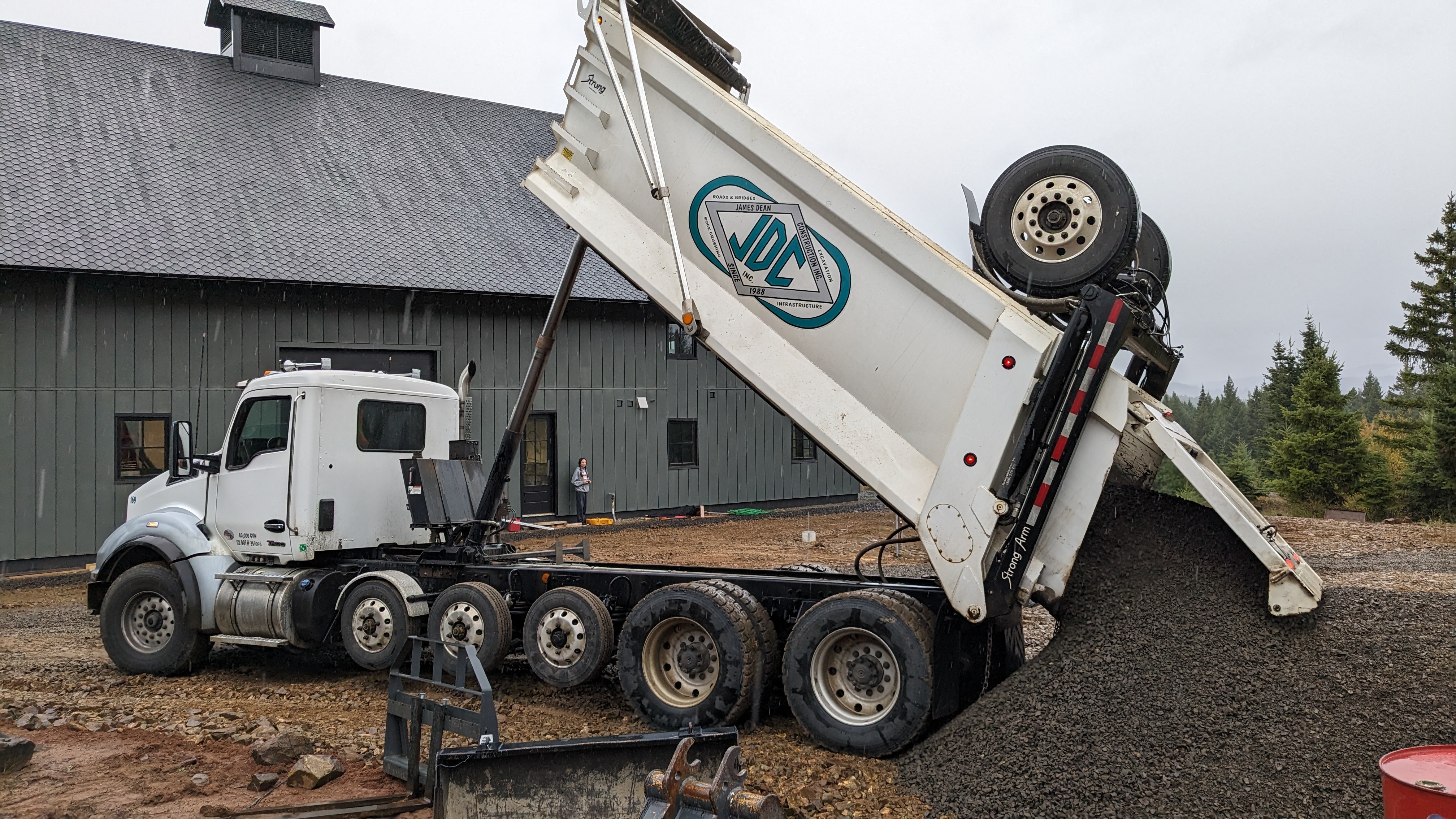 We were sad to see our friends leave, but there was more work to do. We got a few loads of gravel delivered. (How cute, Sam and I are in each other’s photos.)