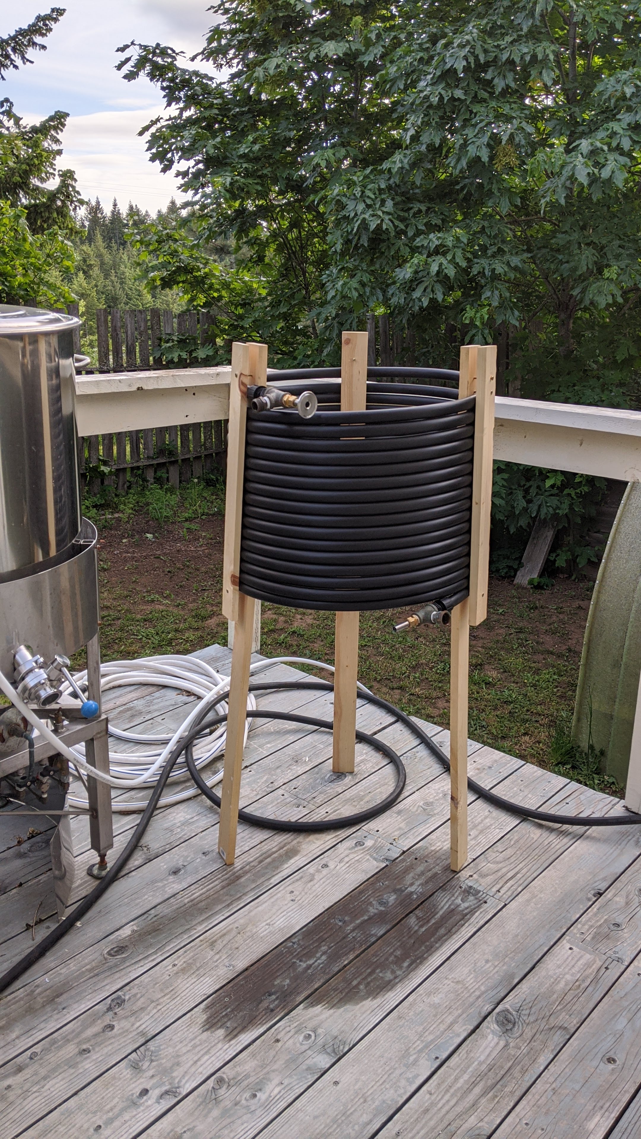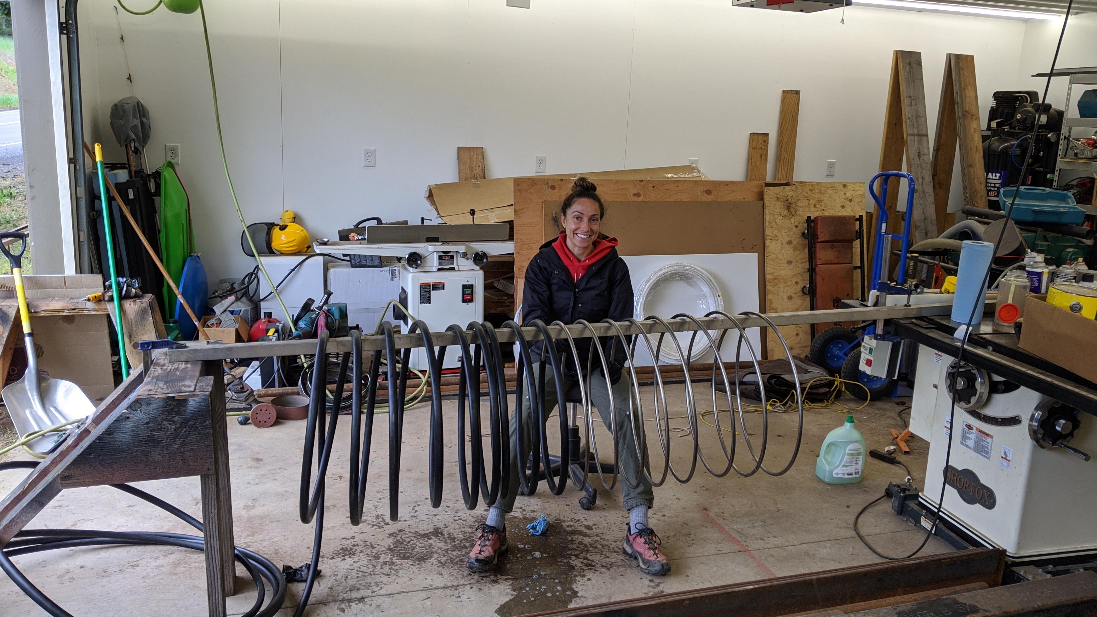We upgraded the stand for our heat exchanger. It not only looks nice, but we won’t have to carry the 50lb slinky around or worry about it freezing outside (that happened once).