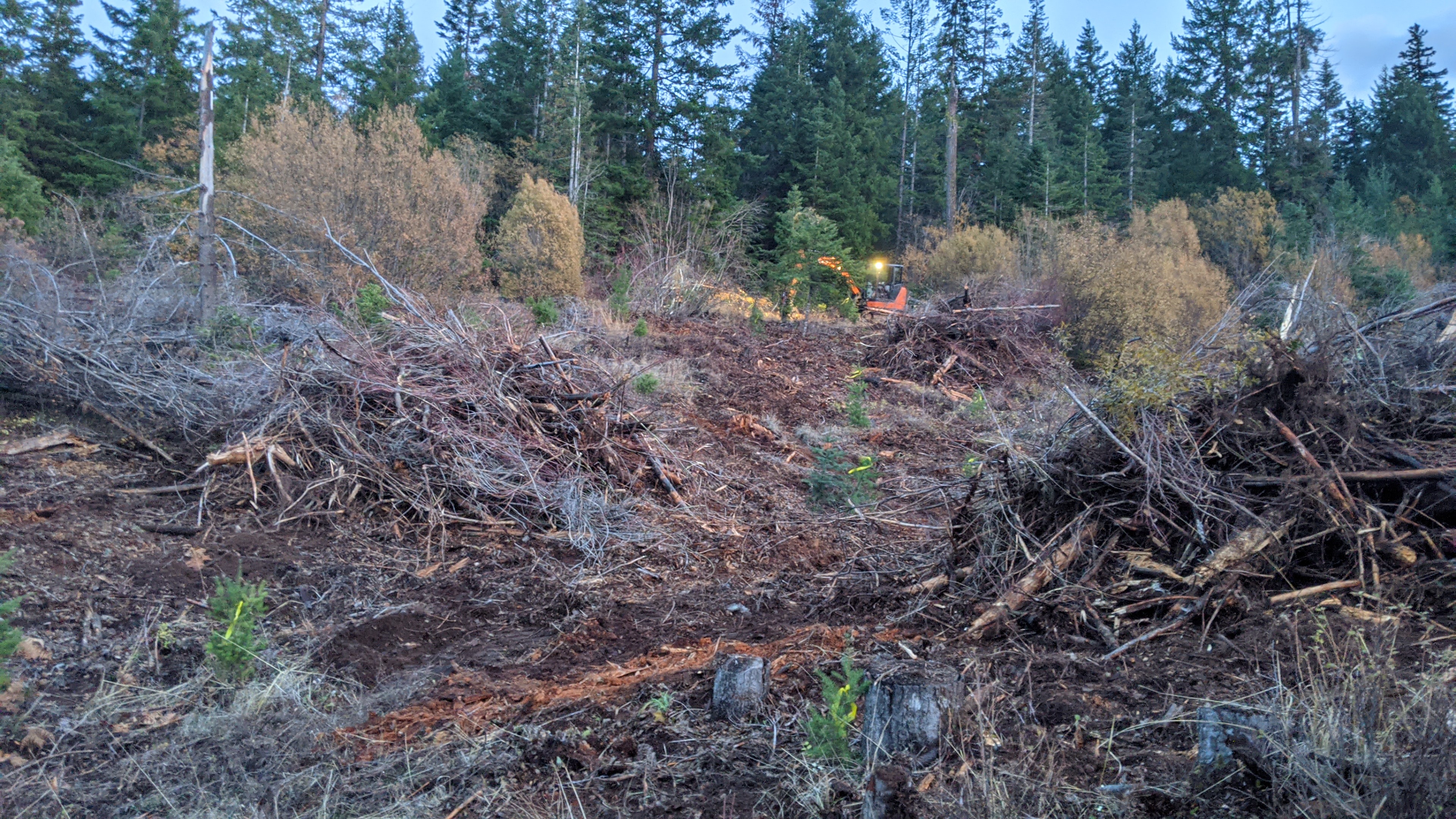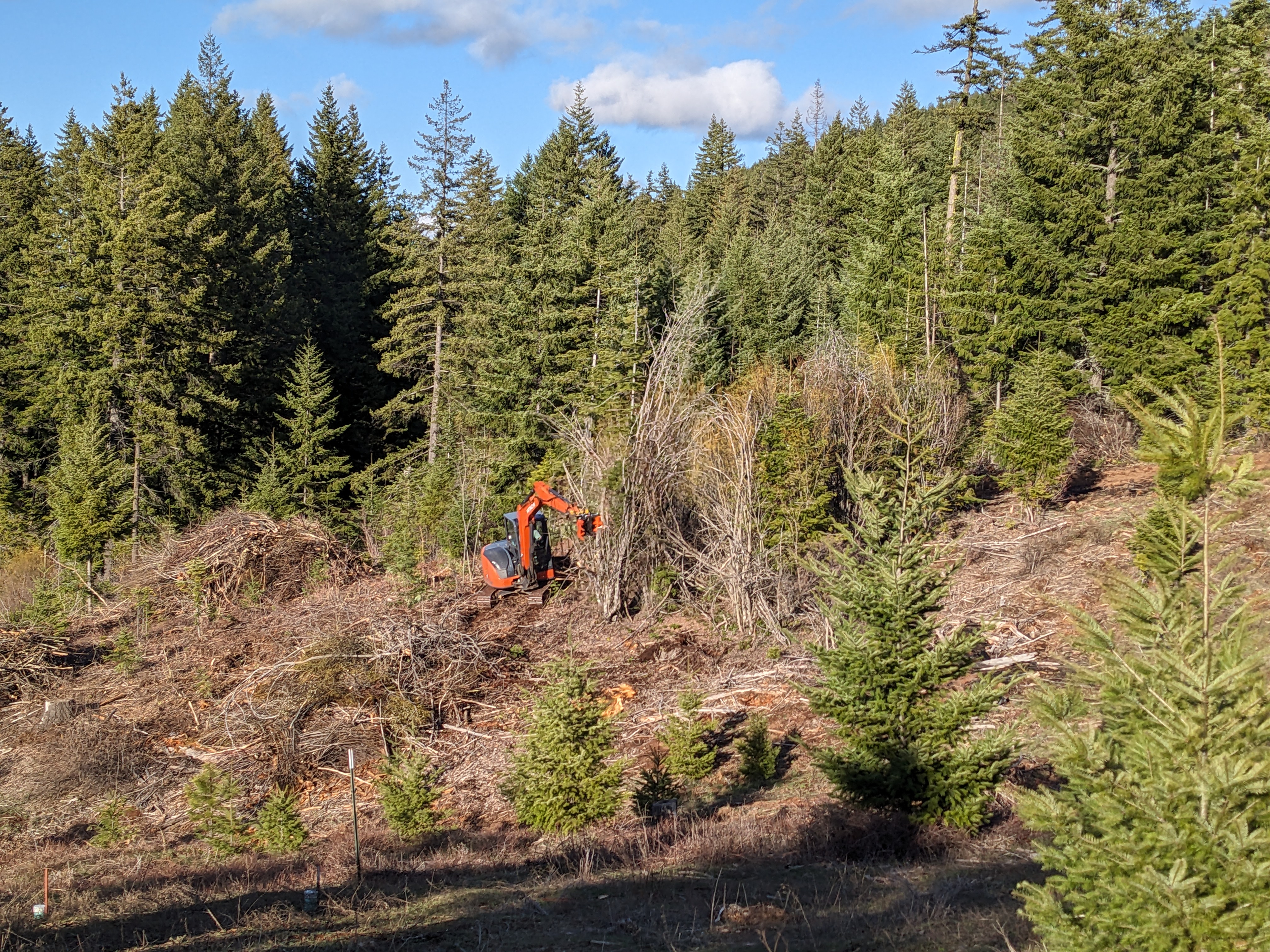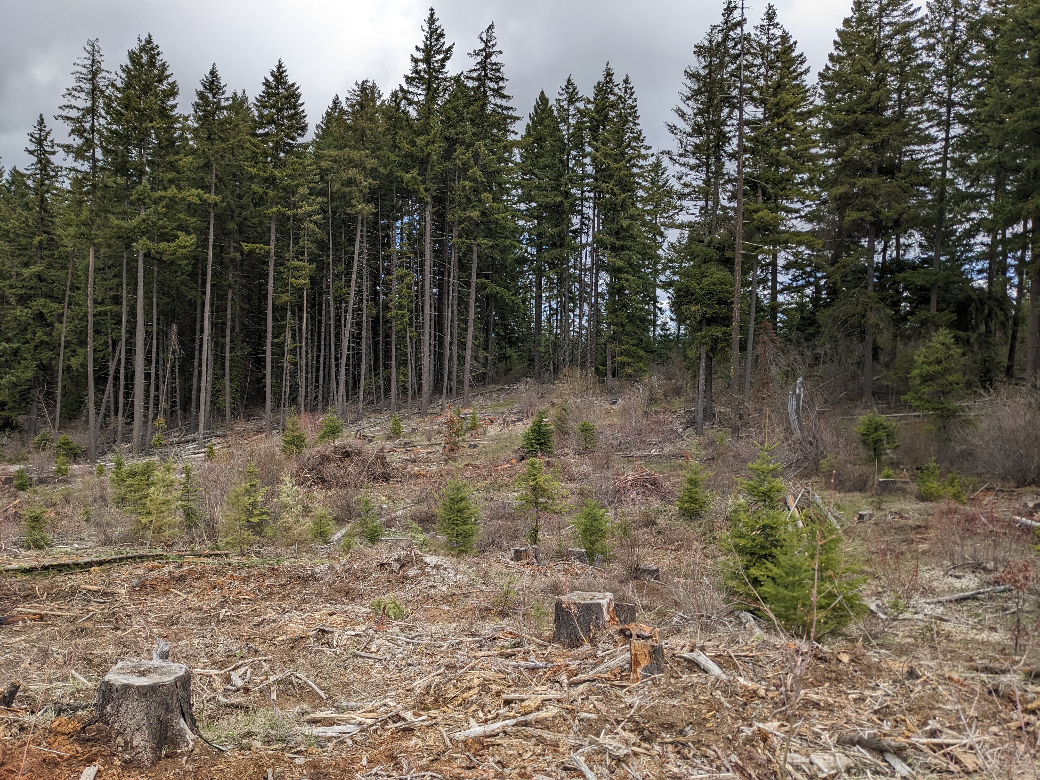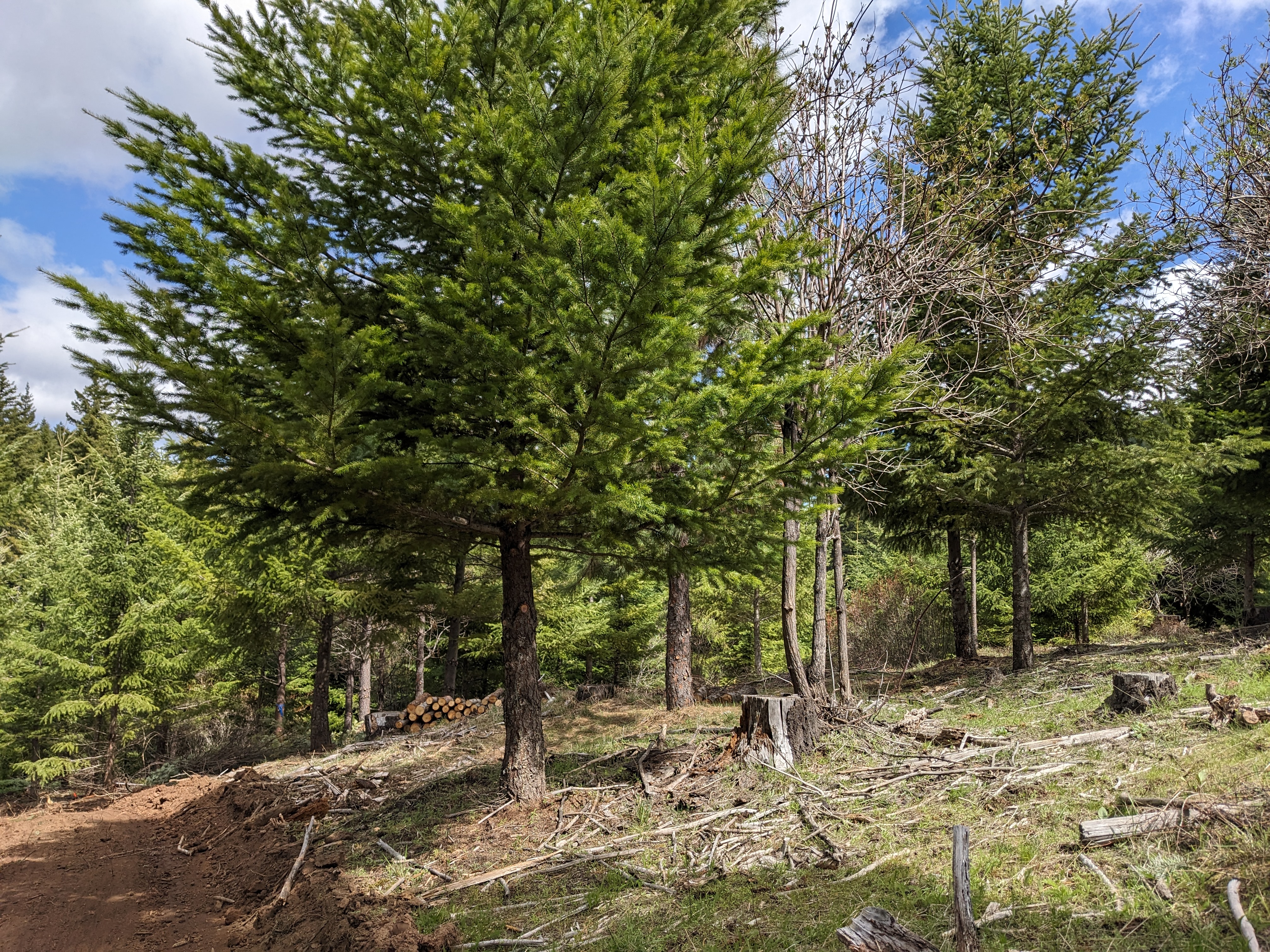 Pruning. The trees we leave standing need to be pruned. That involves removing the lower limbs with a chainsaw. This is mainly for wildfire risk reduction. If there is a ground fire, the flames shouldn’t reach the foliage. This also makes it nice for walking and prohibits bears from hiding and jumping out at you.