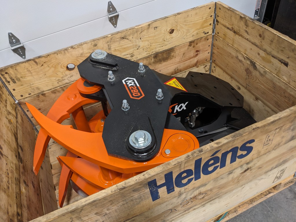I was thankful to have the help and didn’t participate in much of the work this year. Sam was relieved of chainsawing, but he put in just as many hours in the excavator. And, he got this awesome tree shear attachment! After a 9 month journey from Finland via Canada, it finally arrived! (We didn’t get scammed!)