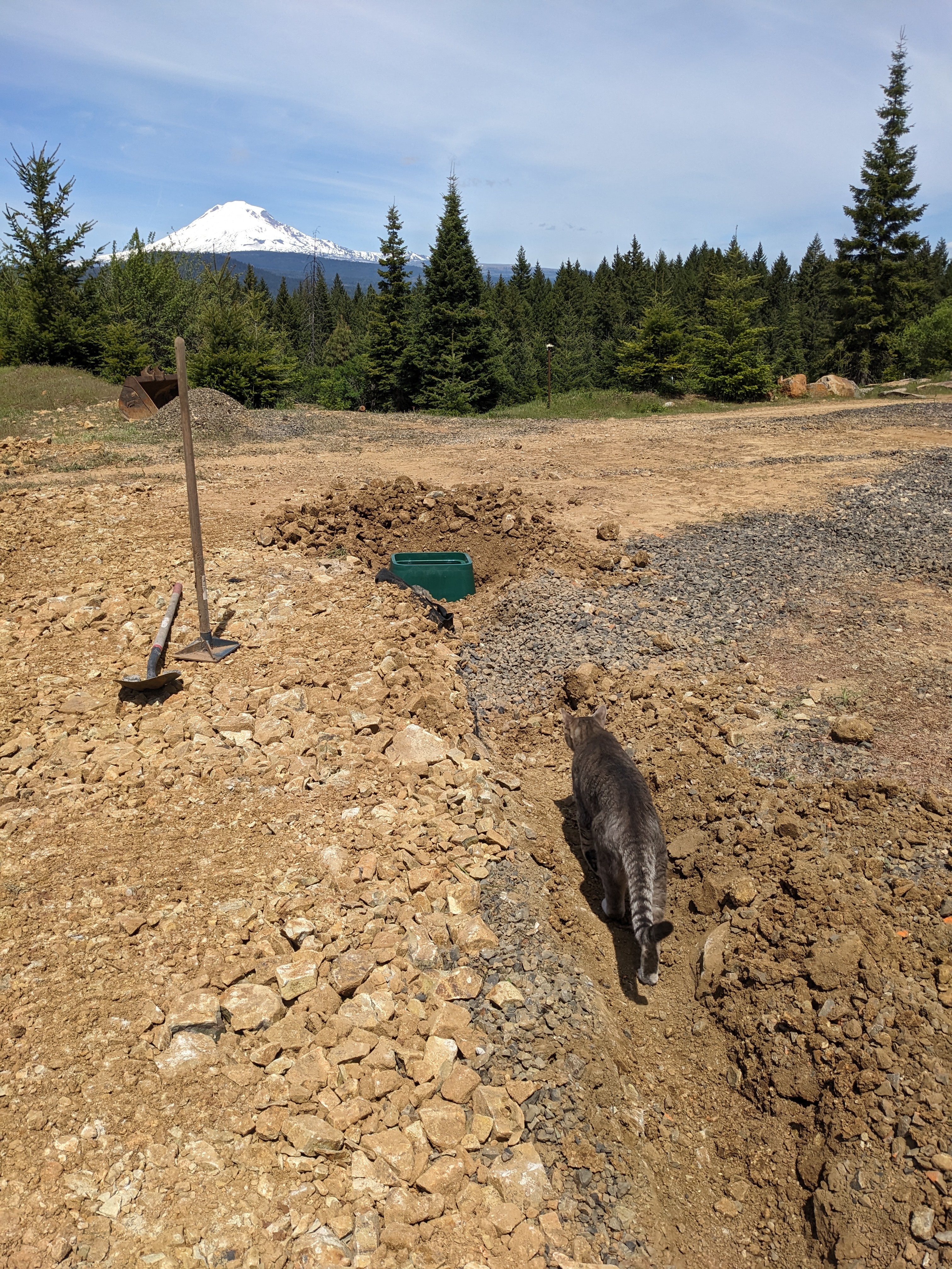 But before working on the driveway, we buried some irrigation lines. Jackson came over to help dig the trenches.