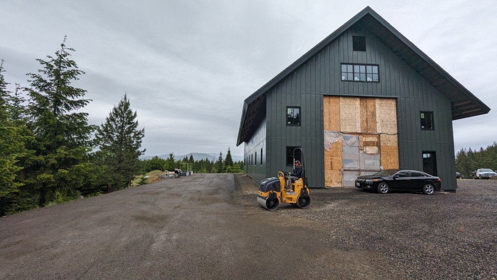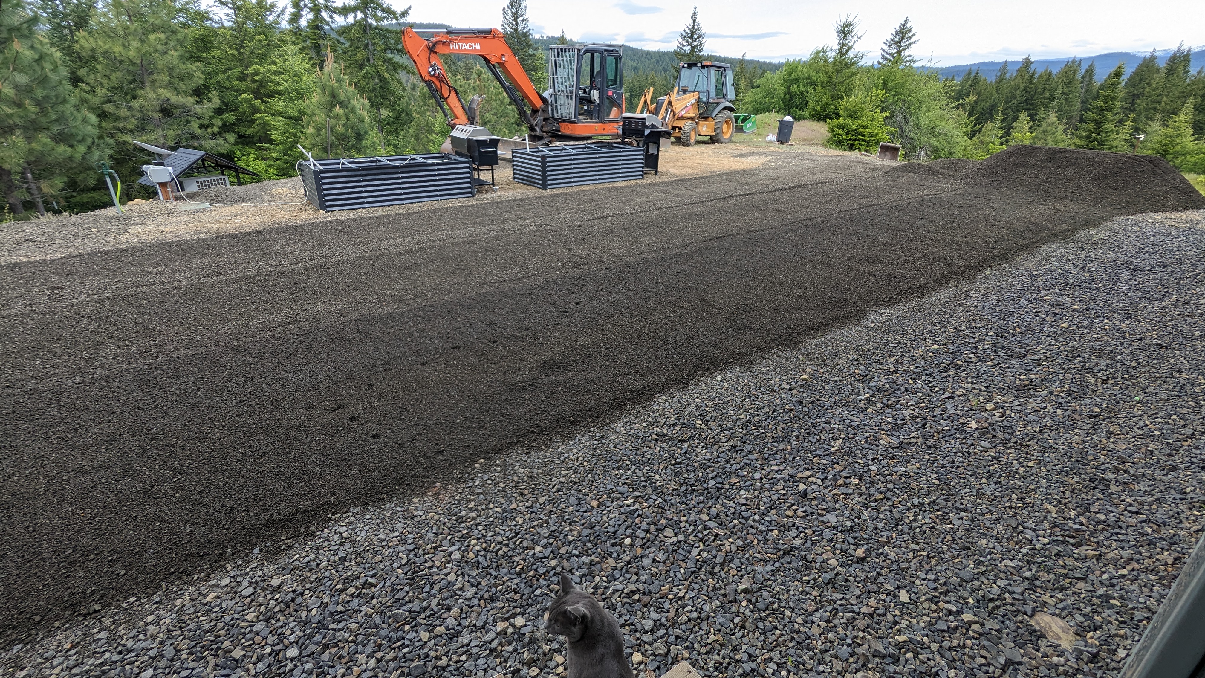Next, we had some gravel delivered. The truck did most of the work for us, as they dumped and spread at the same time.
