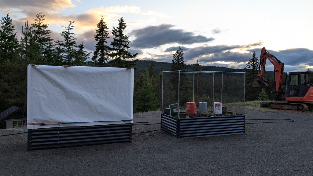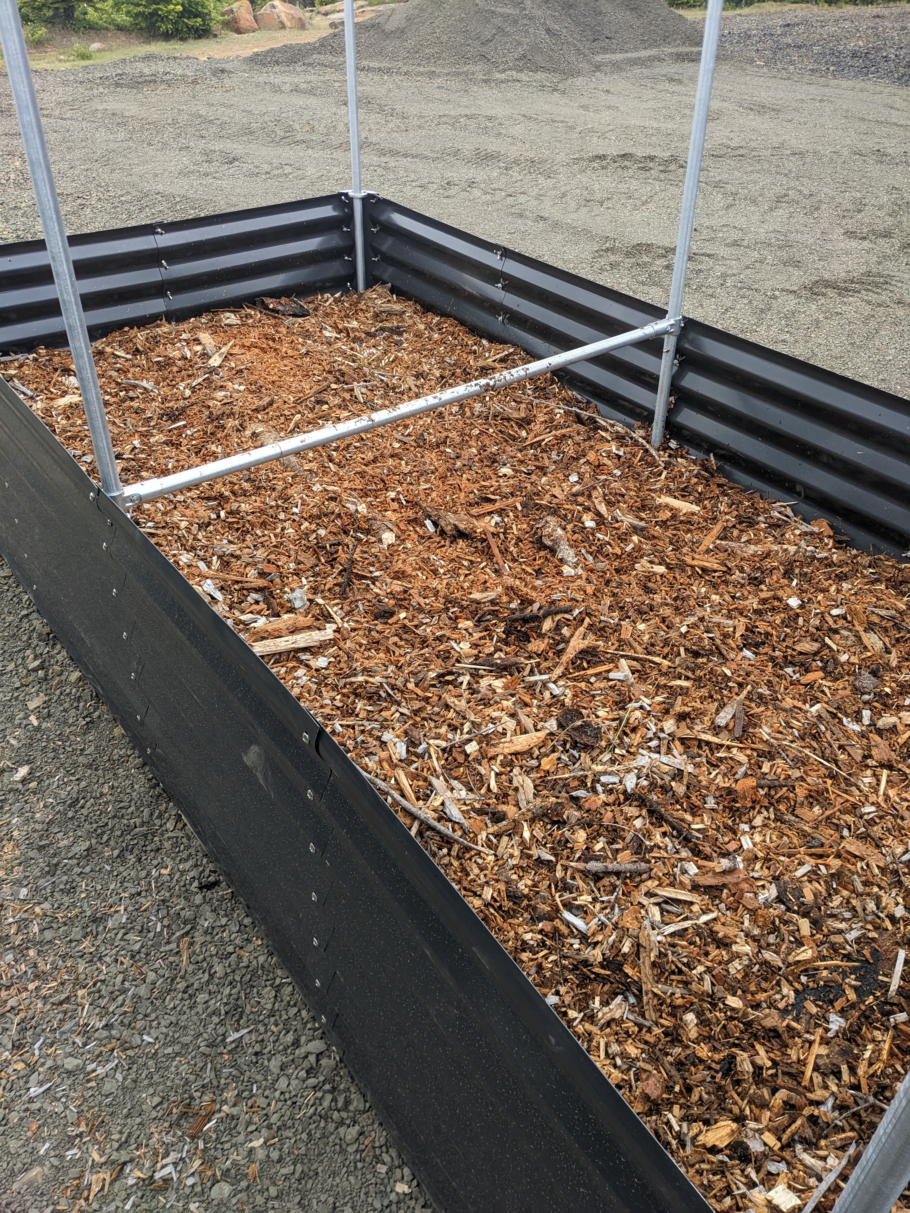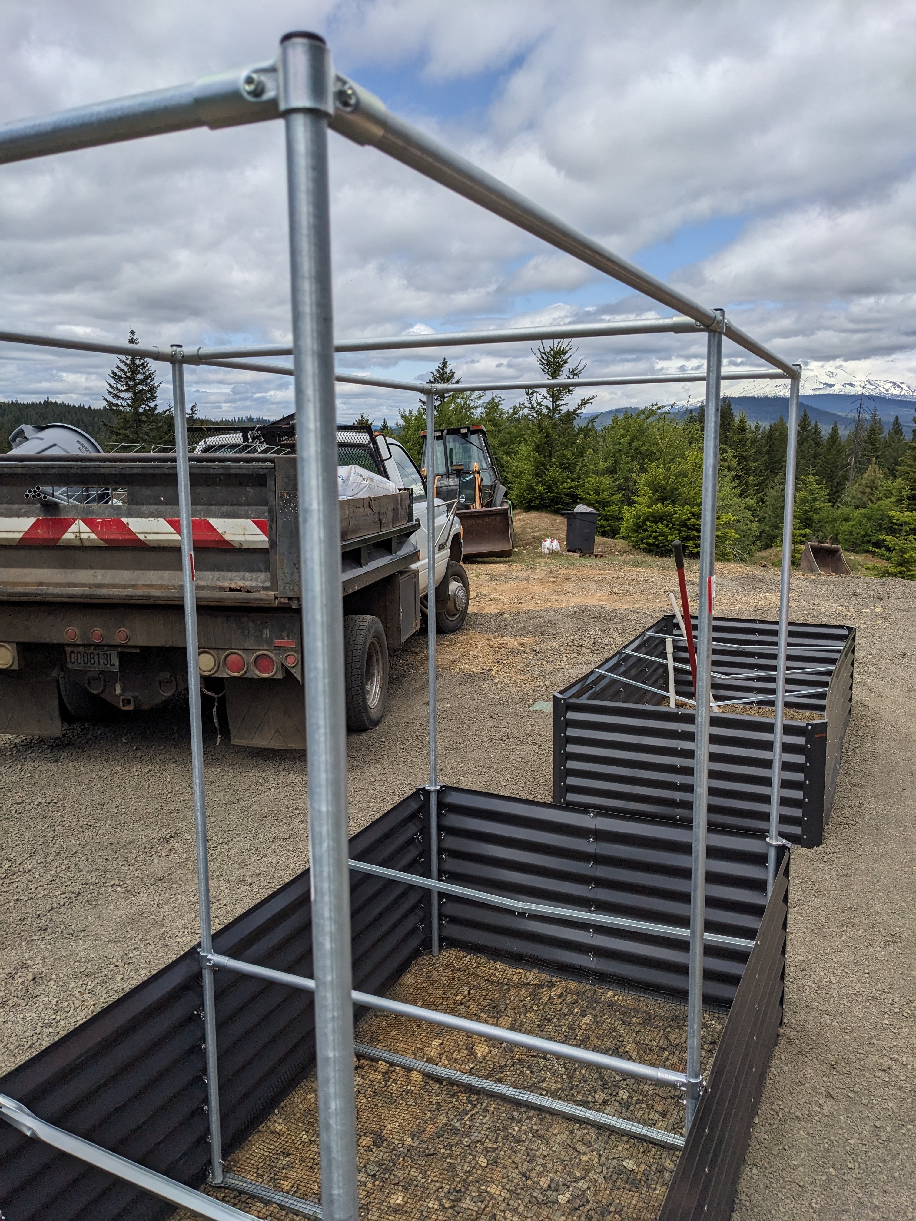Since we already have about 20 unfinished projects (and another 20 in the queue), our goal was to set up only two of the planters this year. We ordered cheap metal planters online as a fast and inexpensive solution. My fingers hurt after tightening 1000 wing nuts (per planter!), but alas the assembly was complete! The planters are more flimsy than heavy duty aluminum foil but they look nice.