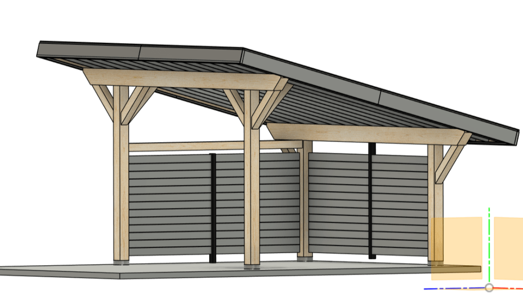 A roof would be a dream in the winter and a great source of shade in the summer. Currently, we don’t have a shady spot to sit in, or any seats outside for that matter. It will be nice to have a patio with shade, a dining area, and a comfortable place to sit. With those objectives in mind, we designed a small pavilion right outside the shop.