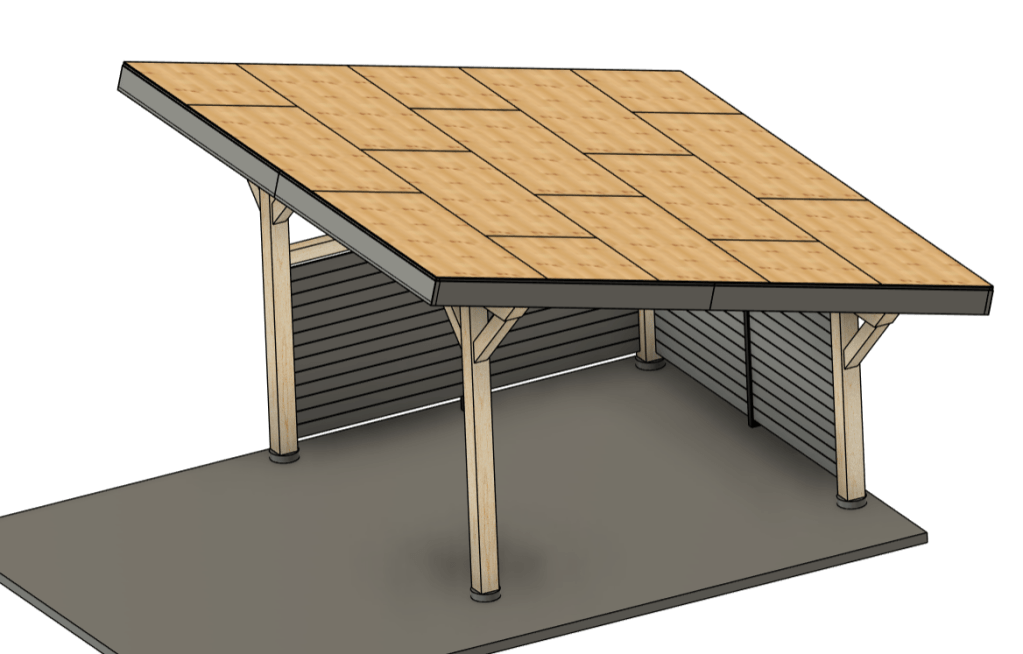 The pavilion is 14 ft x 14 ft. It has a single-pitched roof with 3 ft overhangs on all sides. The structure is open, but we’re going to put up a wall/fence on two of the sides to act as a wind barrier. It can get pretty windy here, which lowers the performance of the grill, as well as my comfort.