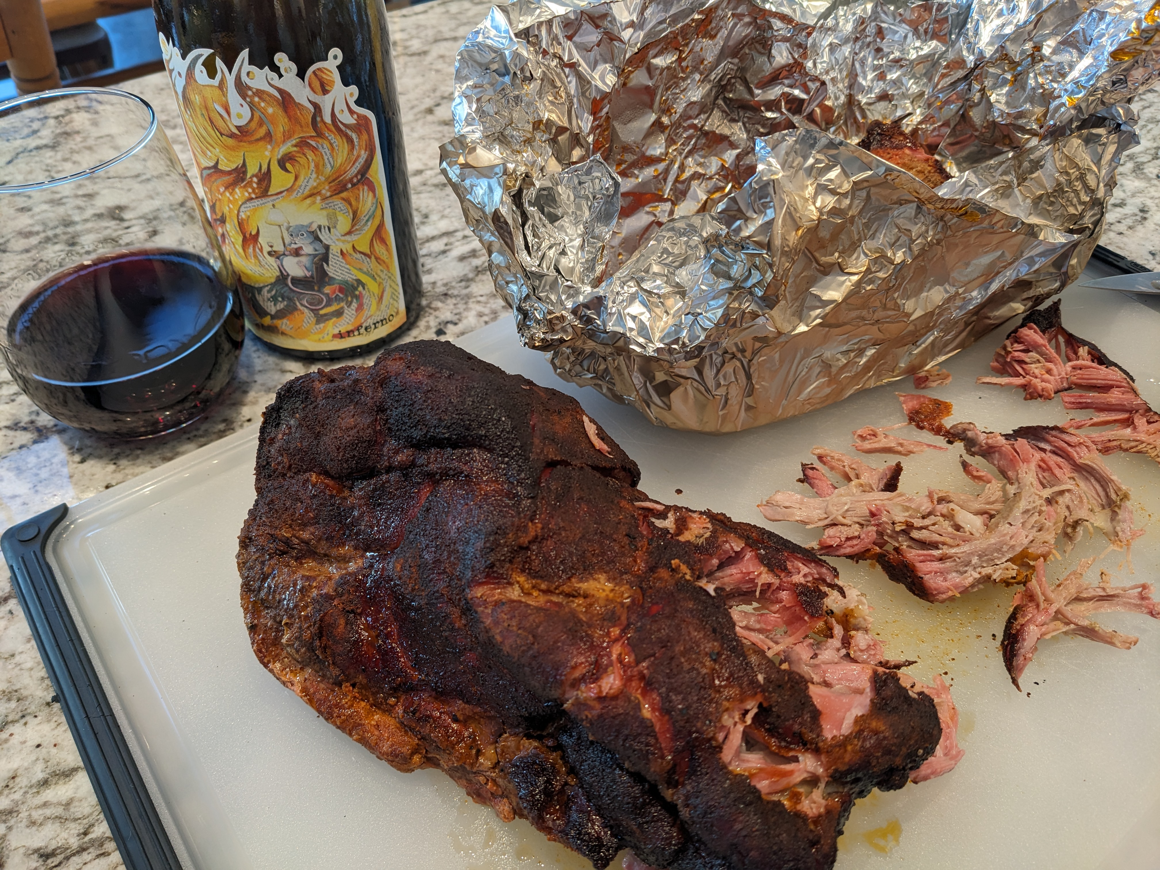 The mud has since cured, with no cow (or cat) footprints. It will be awhile until we have a structure, but I was excited to test out the new setup. We moved the grill and smoker to the patio. The food is coming out better than ever, and we don’t have to worry about setting dead grass on fire when the pork is smoking all day.